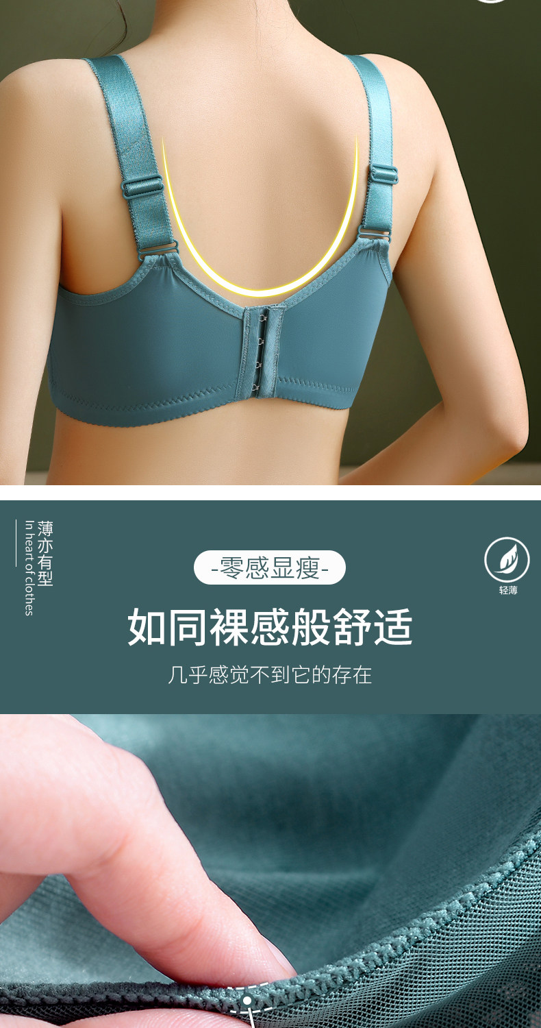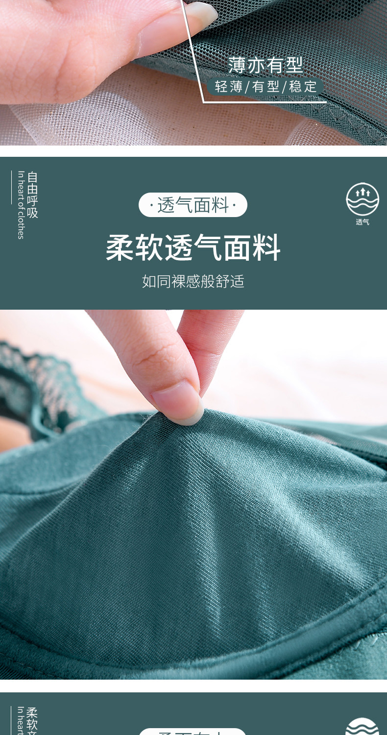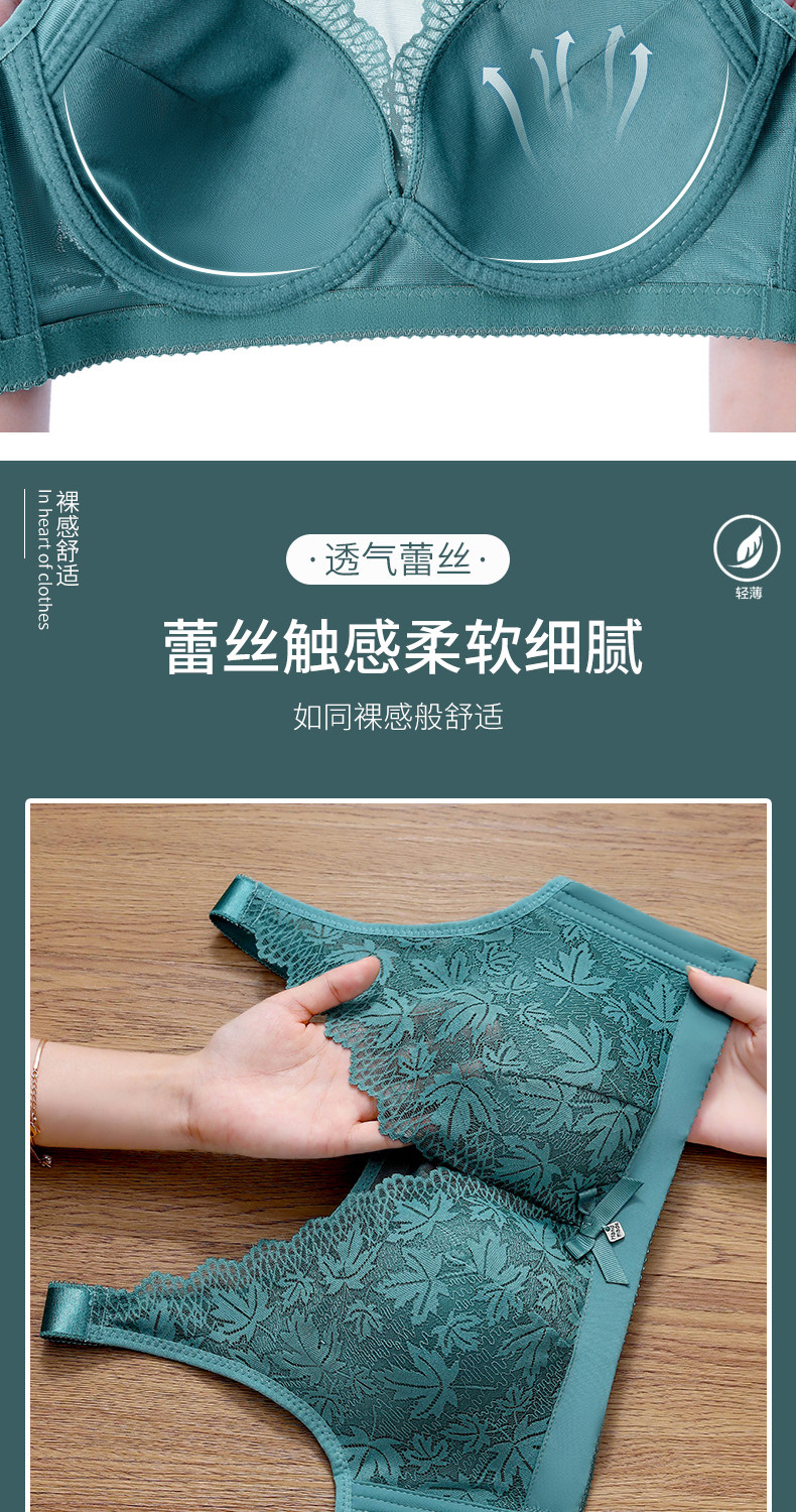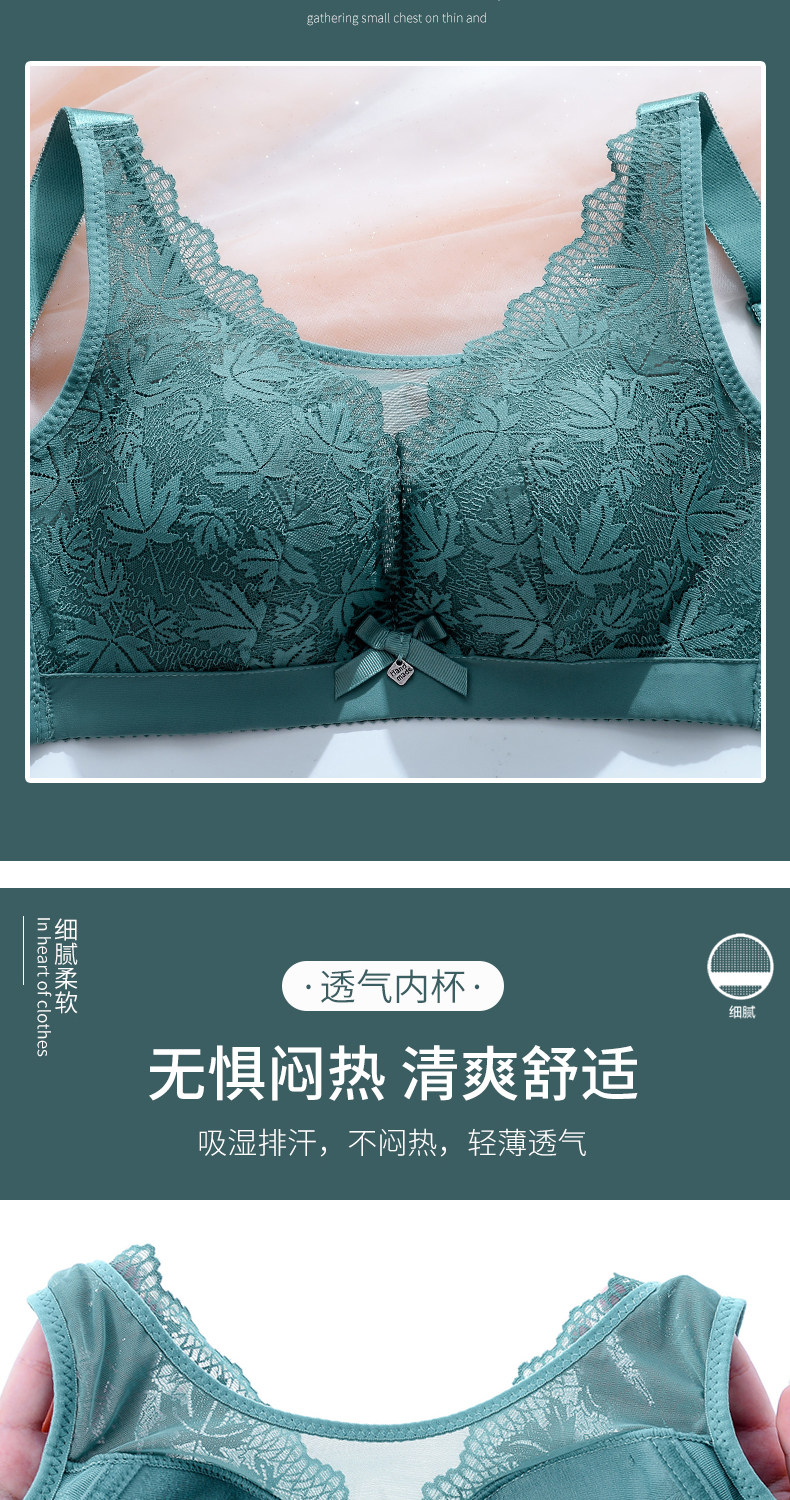 大碼薄款大胸顯小內衣女士無鋼圈聚攏收副乳防下垂抹胸蕾絲文胸罩