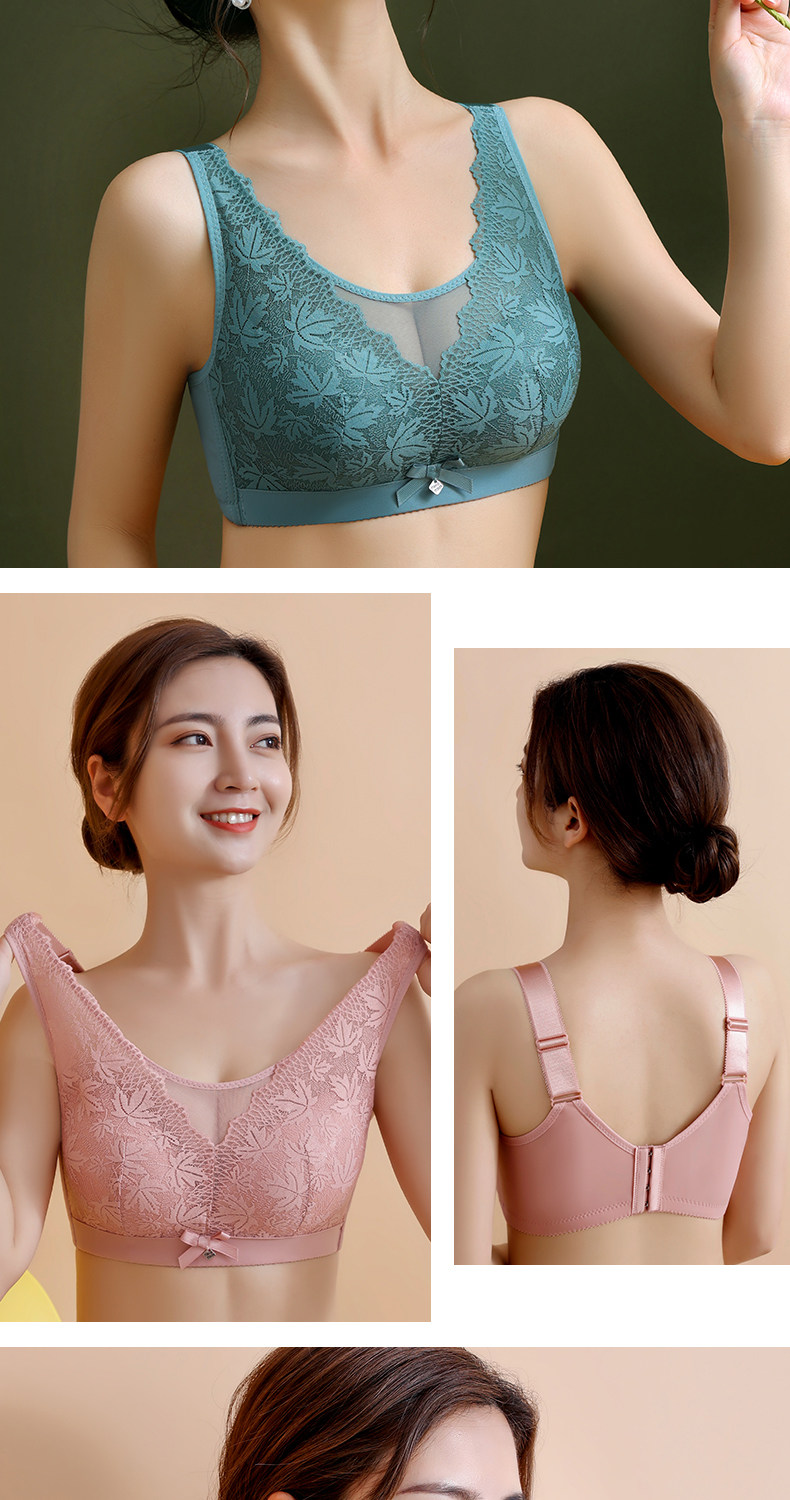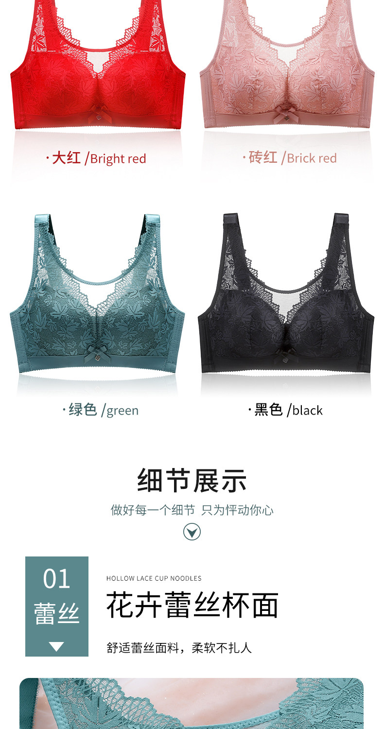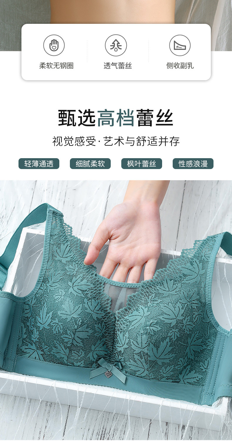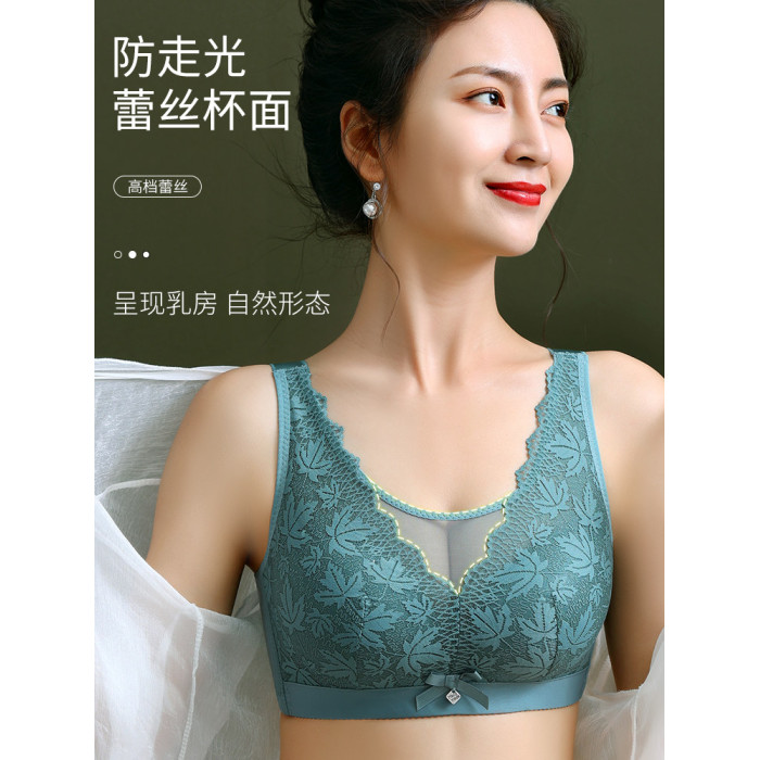 大碼薄款大胸顯小內衣女士無鋼圈聚攏收副乳防下垂抹胸蕾絲文胸罩