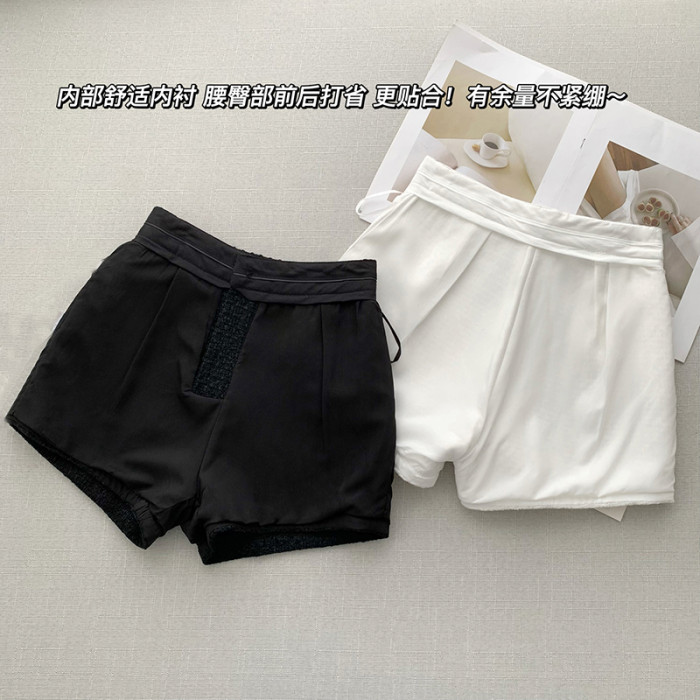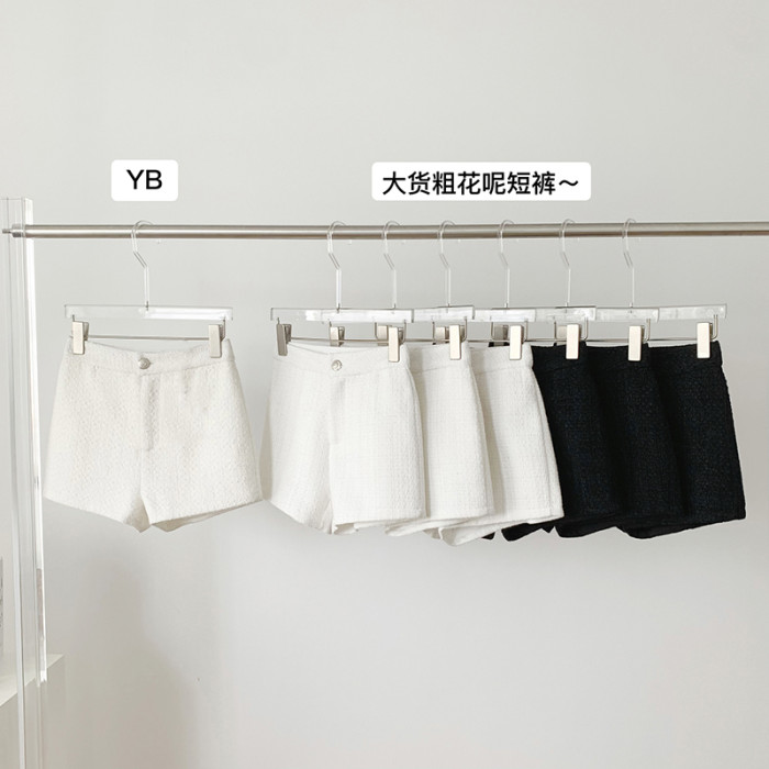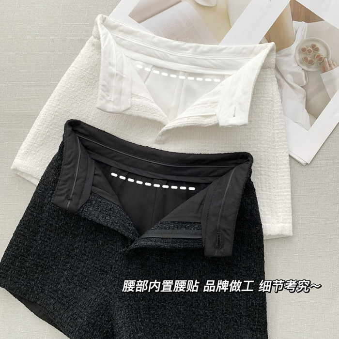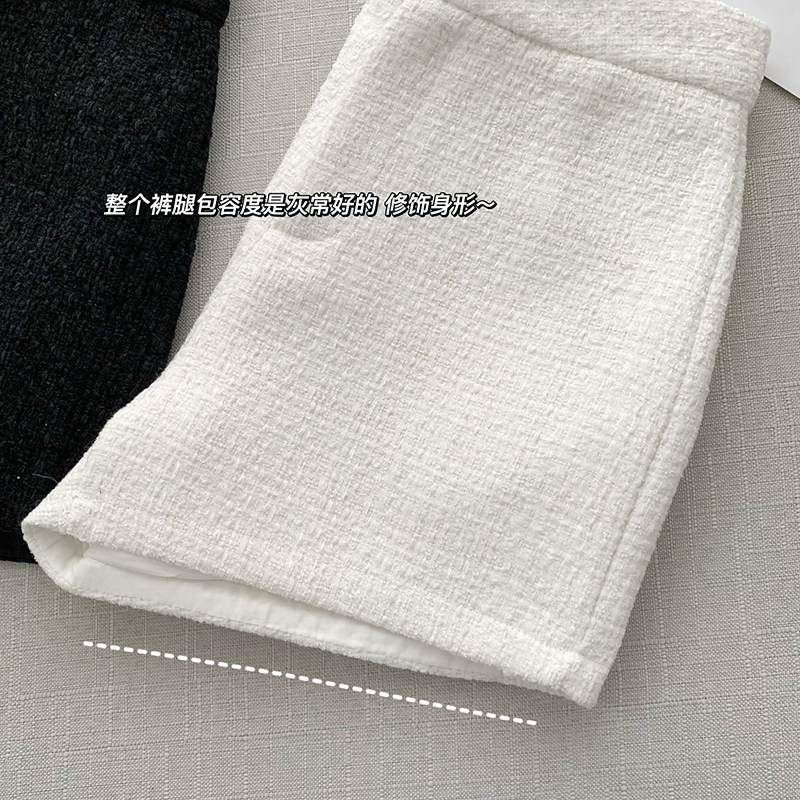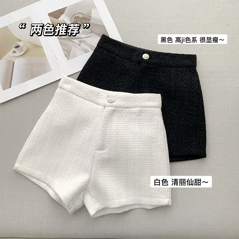 150小矮個子小香風粗花毛呢短褲女秋冬高腰休閒靴褲a字短褲xs顯高