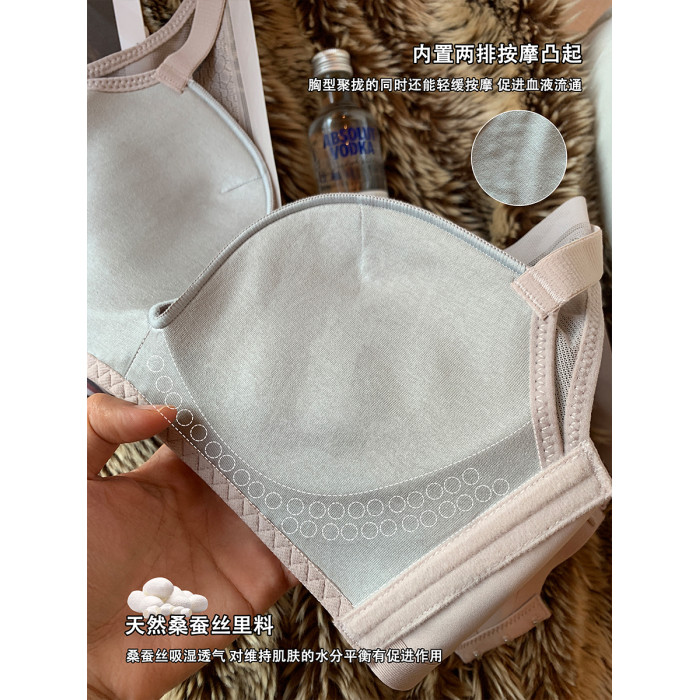 100%桑蠶絲內裡無痕內衣女小胸聚攏收副乳防下垂無鋼圈舒適文胸罩