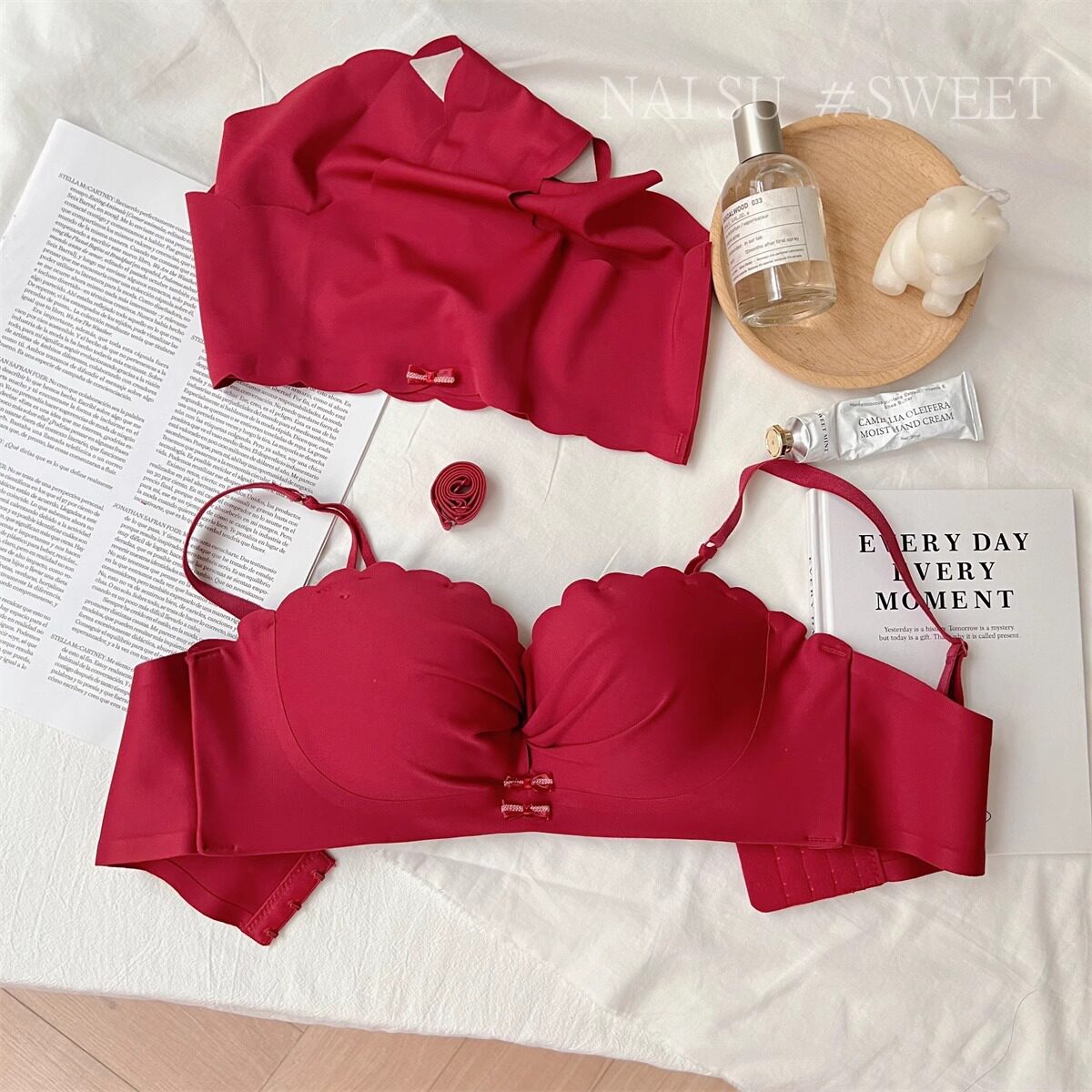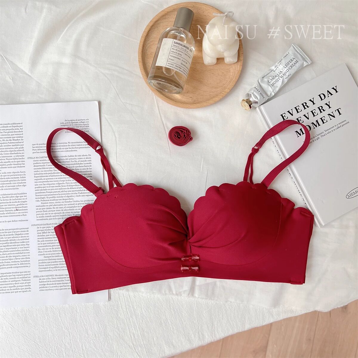 維多利亞2026新款無痕紅色內衣女小胸聚攏無鋼圈文胸套裝結婚新娘