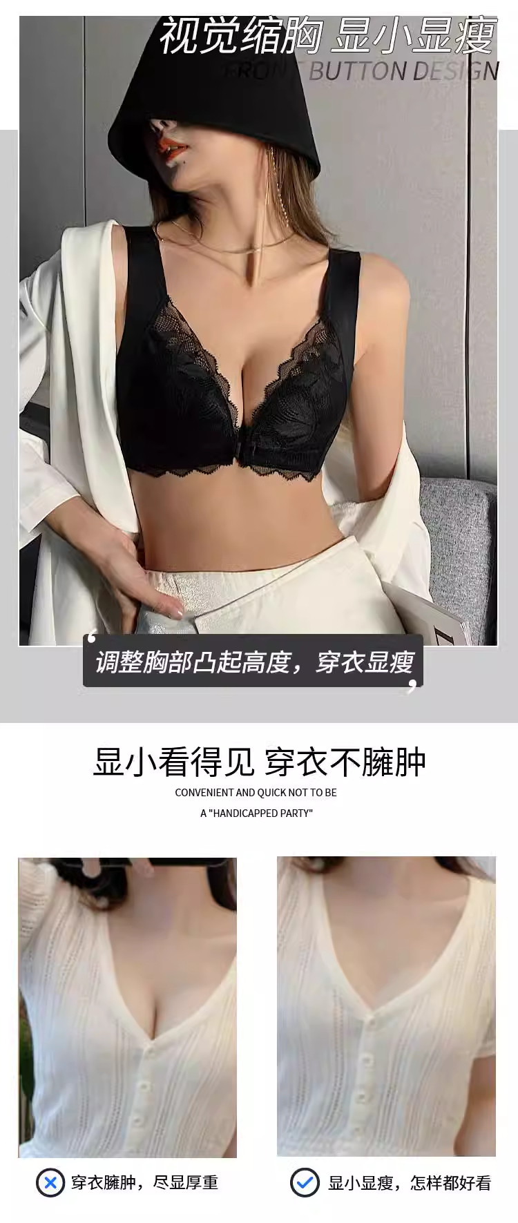 維多利亞2026新款薄款大胸顯小內衣女收副乳防下垂無痕前釦文胸罩