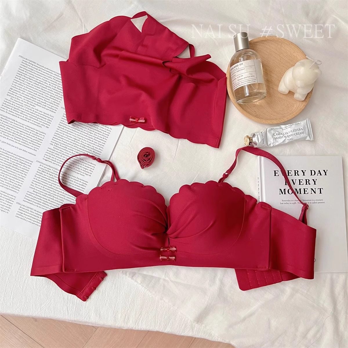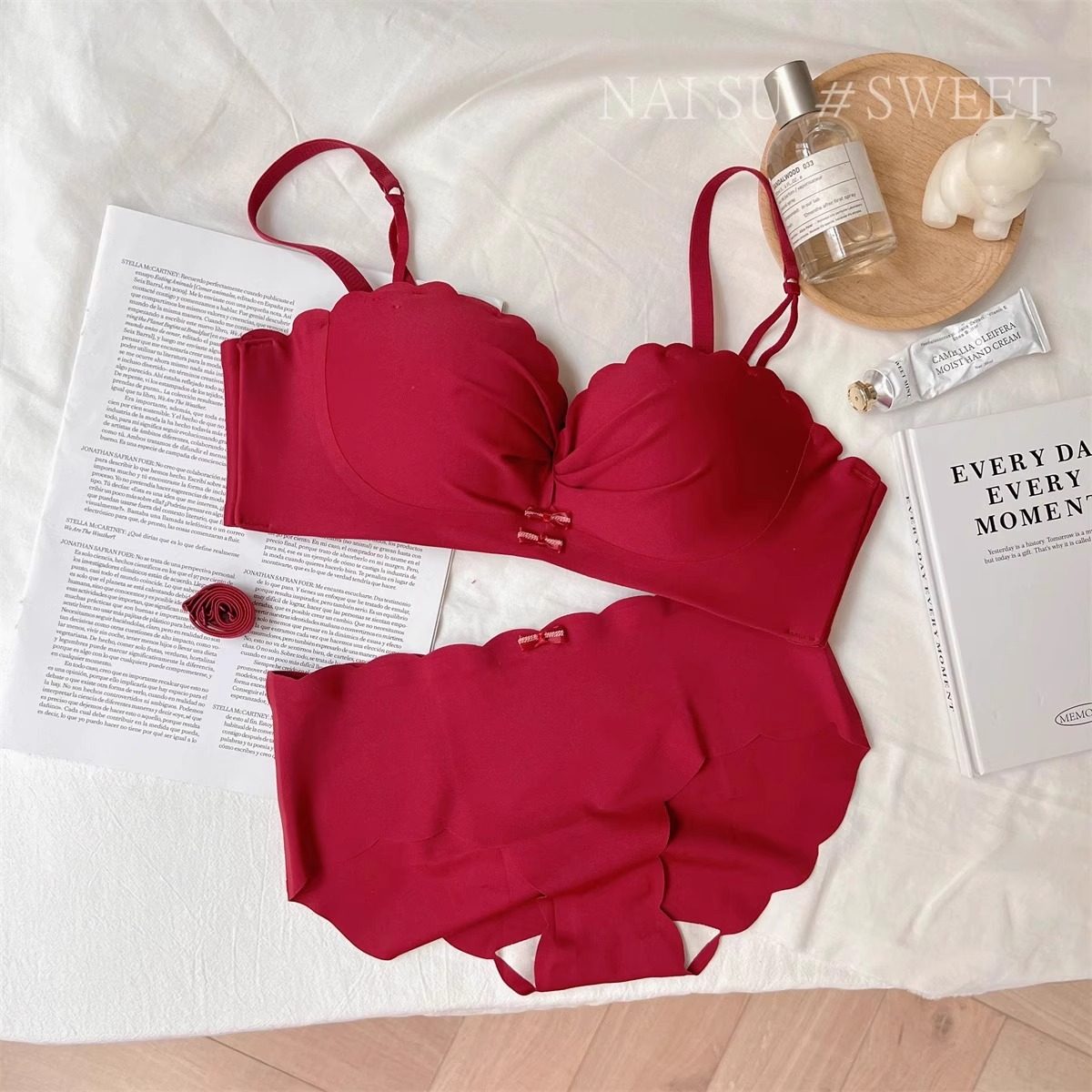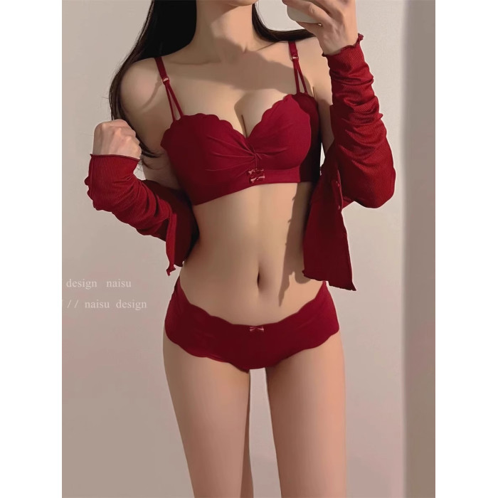 維多利亞本命年紅色內衣女小胸聚攏上托無鋼圈文胸罩套裝結婚新娘