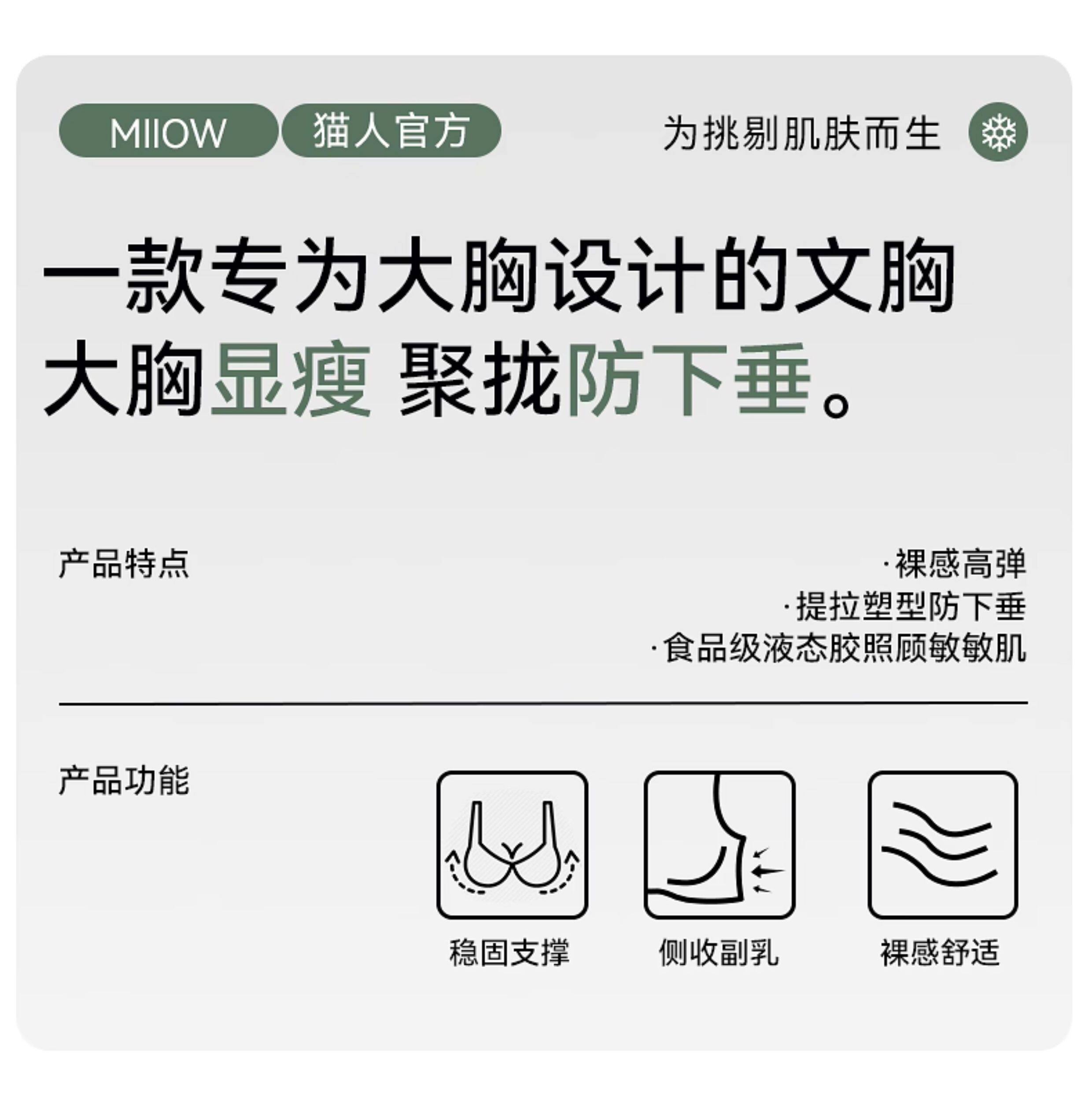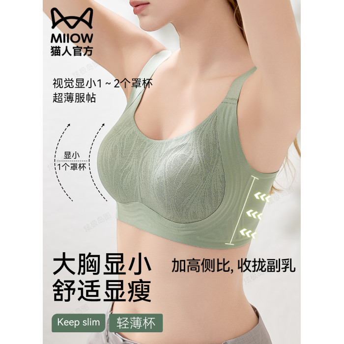 貓人內衣女大胸顯小全罩杯防下垂收副乳2026新款無鋼圈大胸文胸