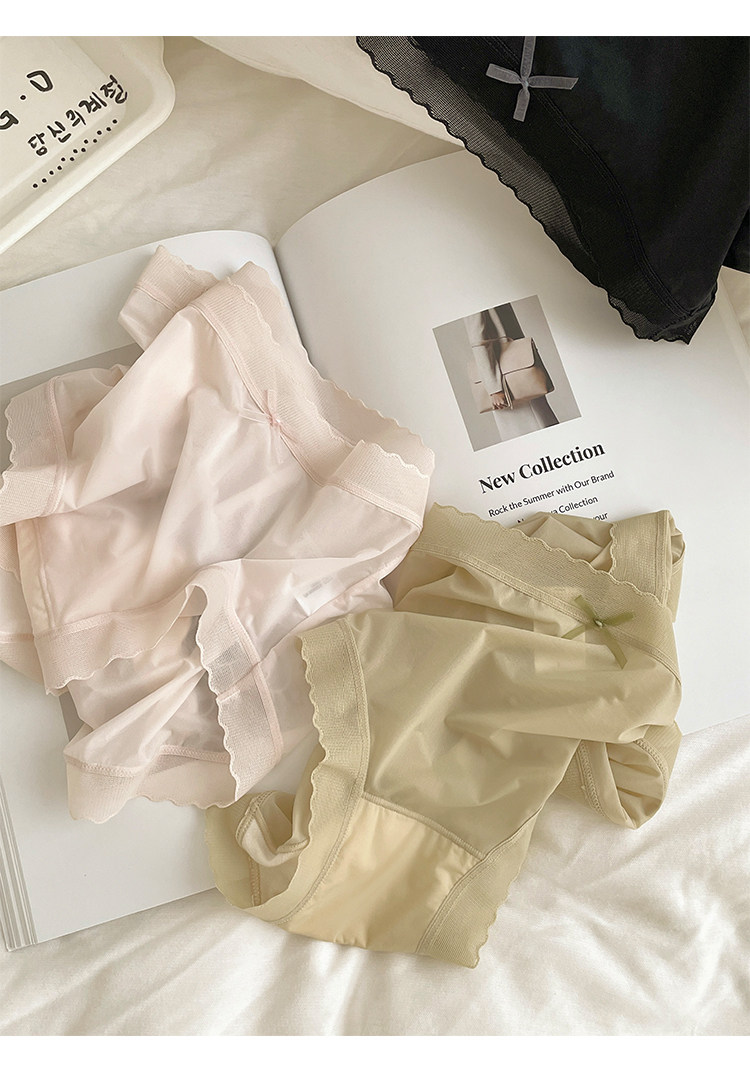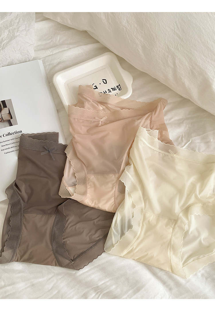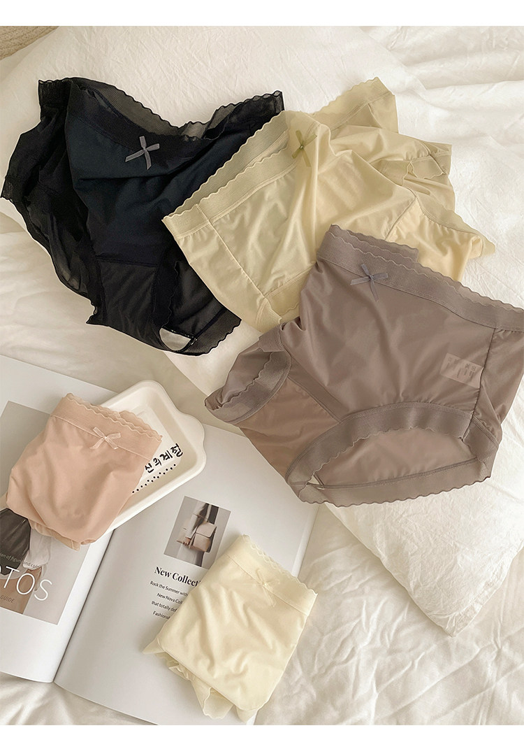 法式高級感桑蠶絲!超薄裸感高彈中腰內褲女2025年新款抗菌面膜褲