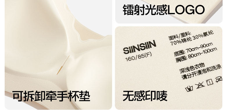 SIINSIIN無尺碼內衣女秋新款無痕美背上托聚攏透氣運動粉底液文胸