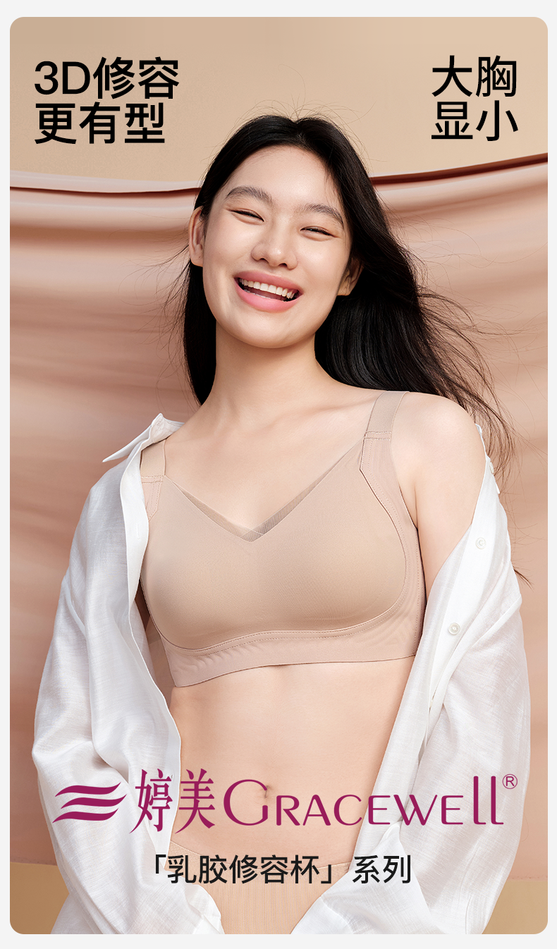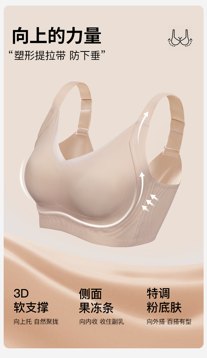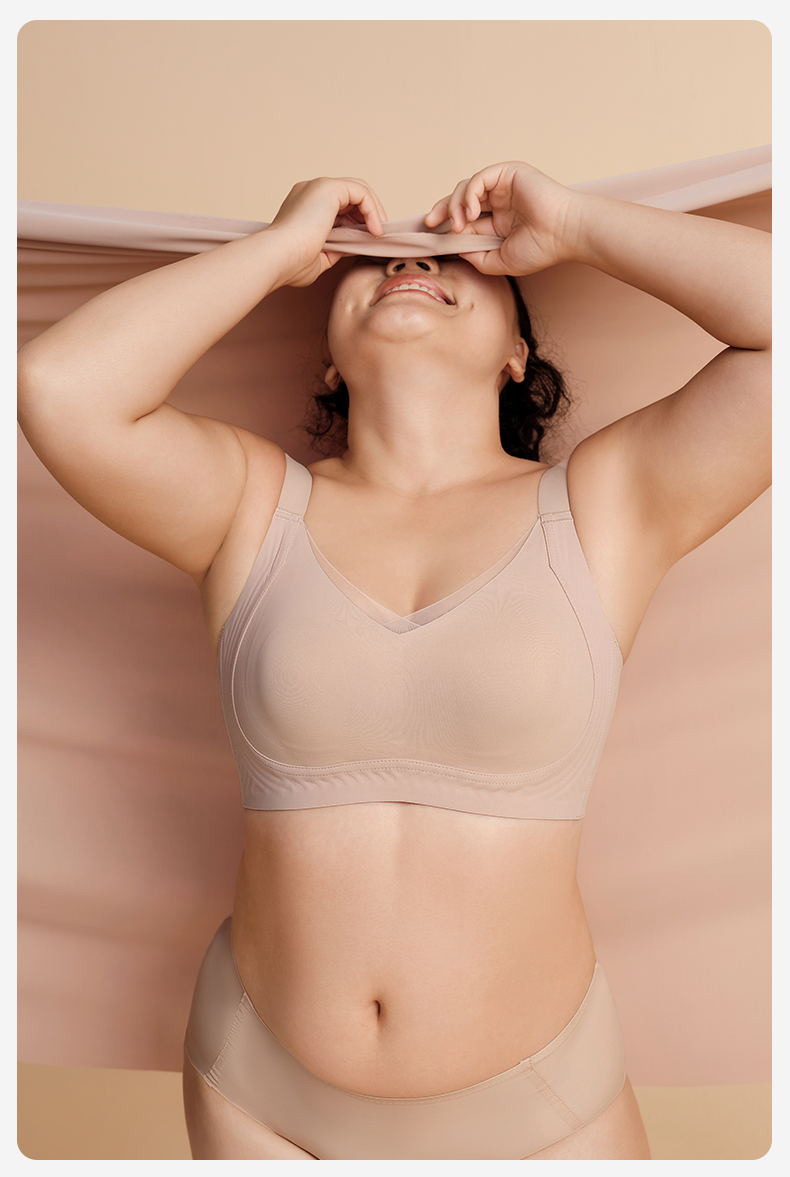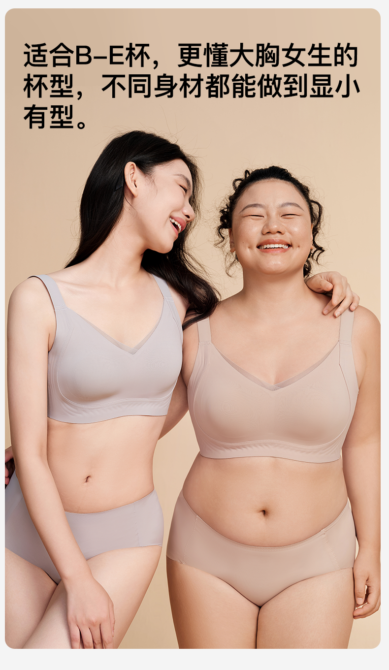 婷美大胸顯小內衣女無痕全罩杯薄款收副乳防下垂隱形粉底液文胸罩