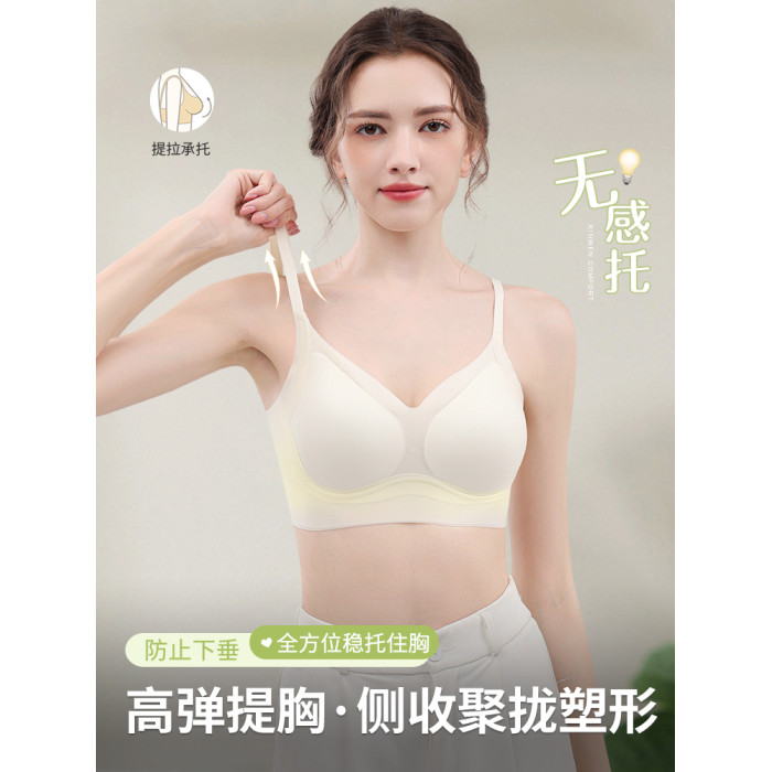 無痕內衣女小胸聚攏塑形收副乳防下垂舒適薄款無鋼圈背心式文胸罩