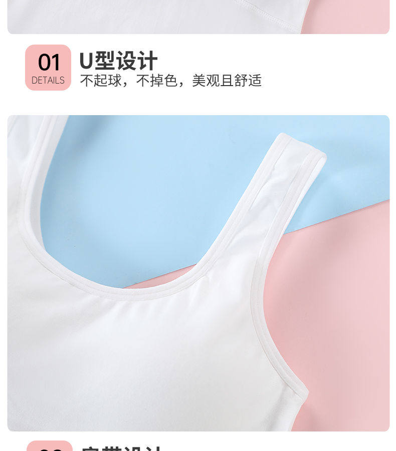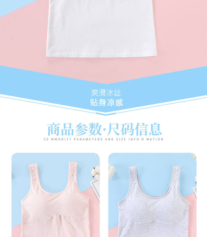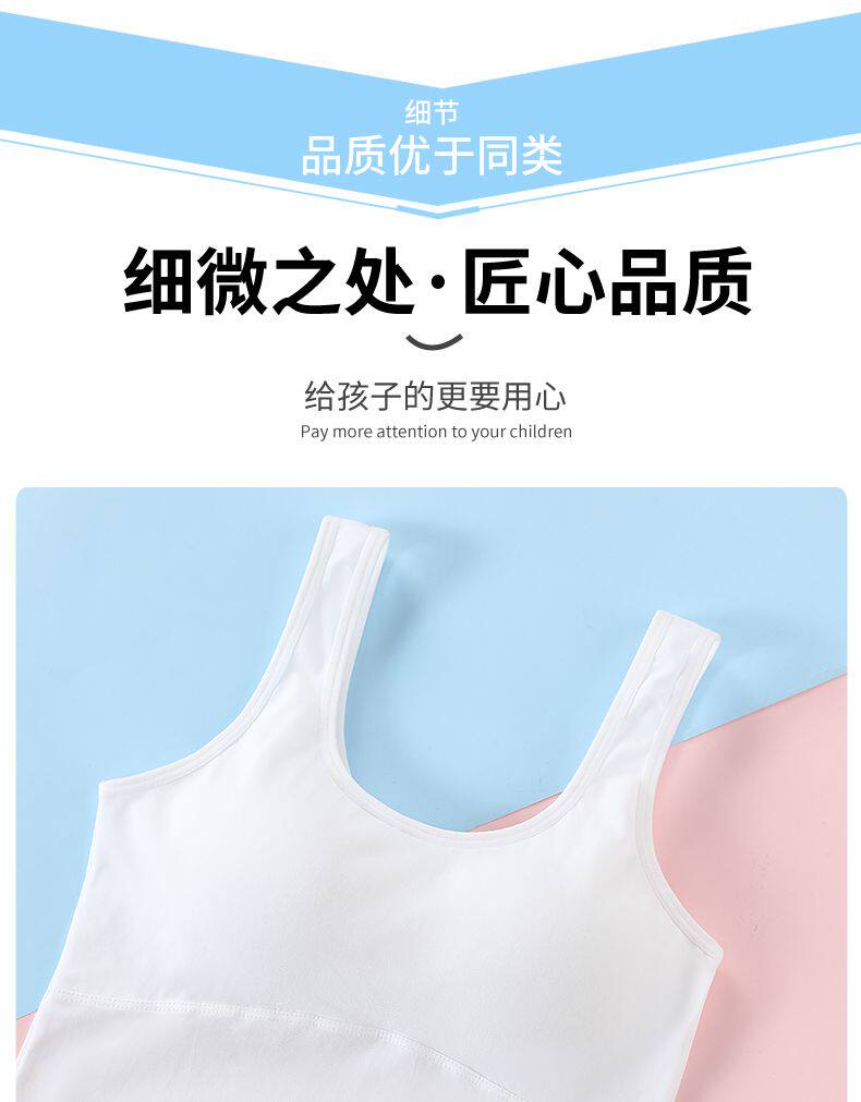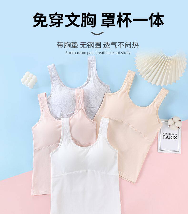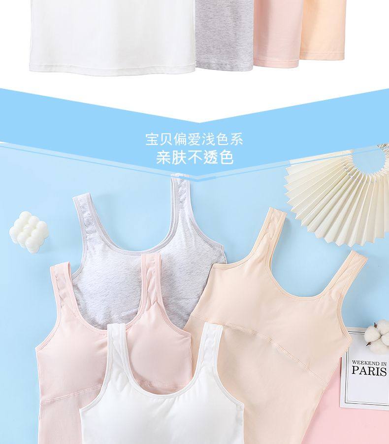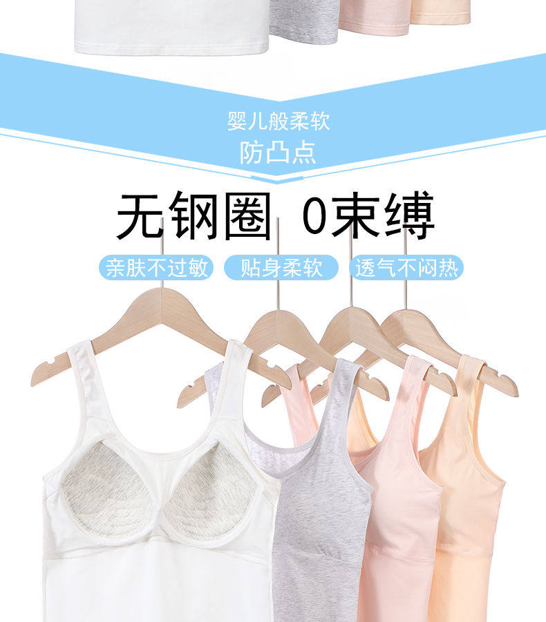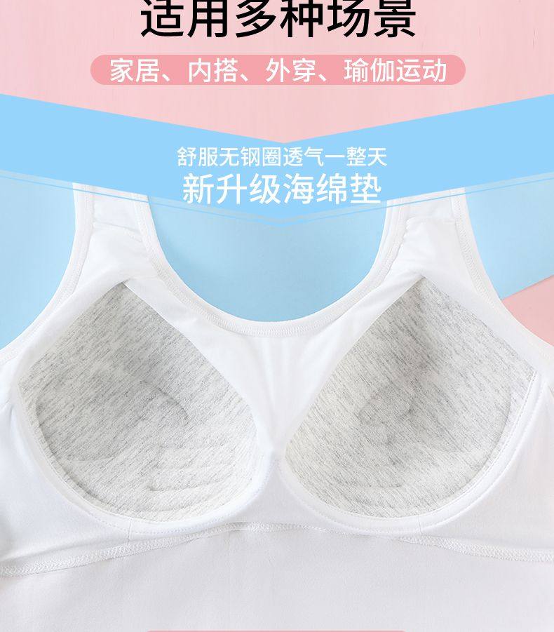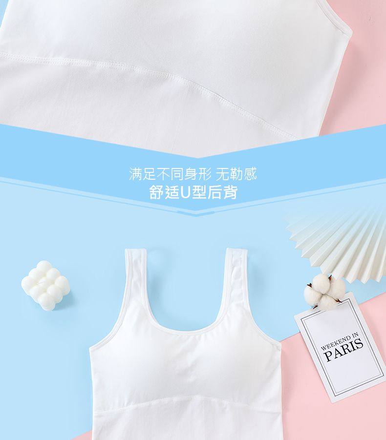 少女內衣發育期學生運動背心吊帶女孩純棉文胸一體式固定胸墊薄款