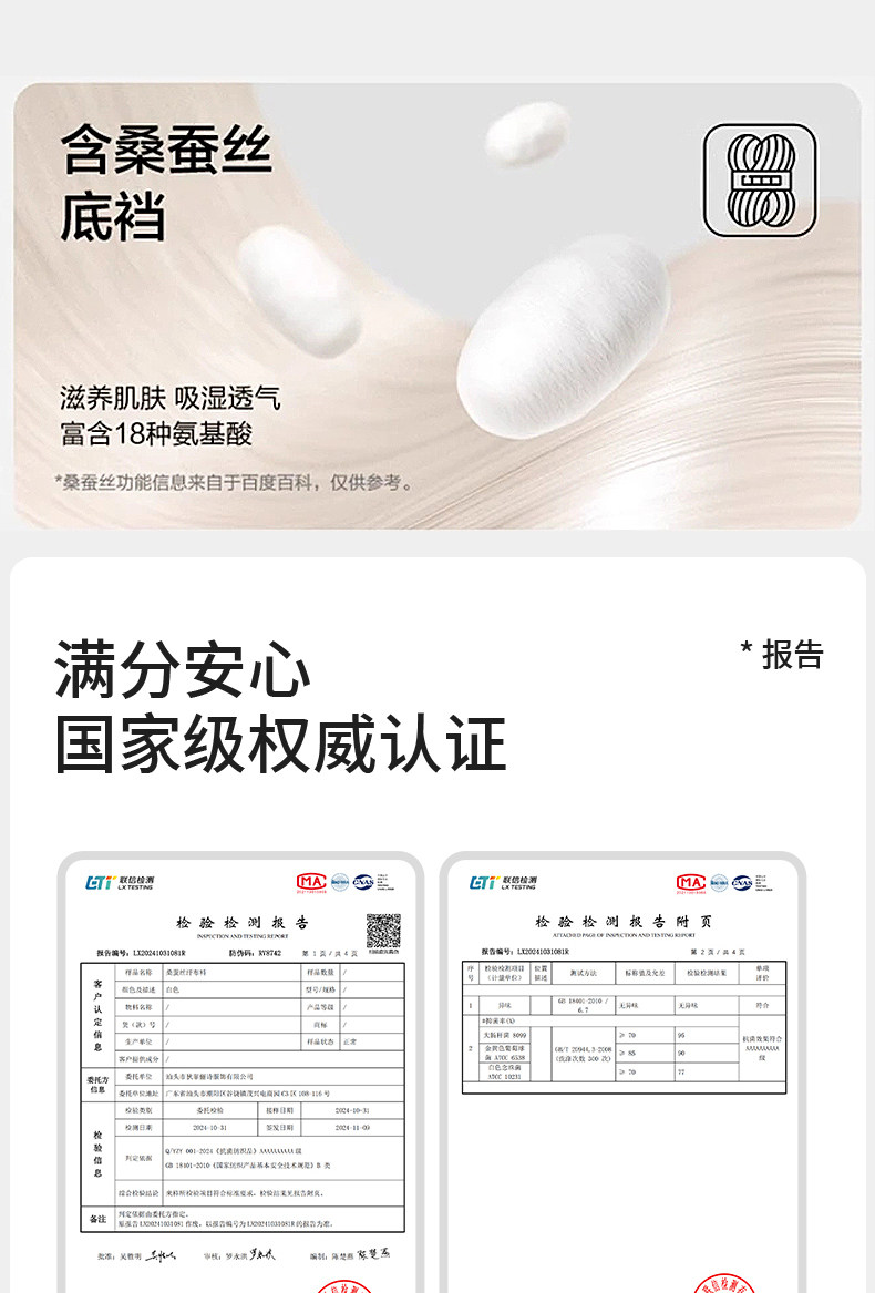 | 襠部材質成分 | 粘膠纖維(粘纖)88.9% 桑蠶絲4.6% 聚氨酯彈性纖維(氨綸)4% 聚醯胺纖維(錦綸)2.5% |