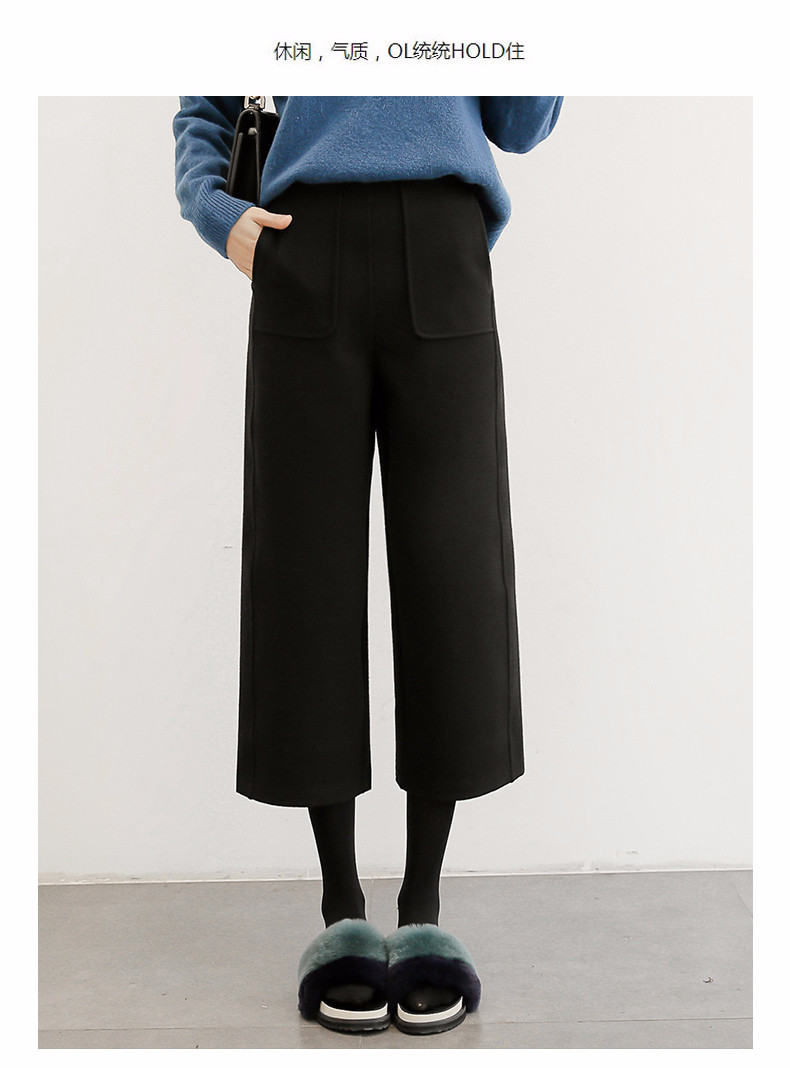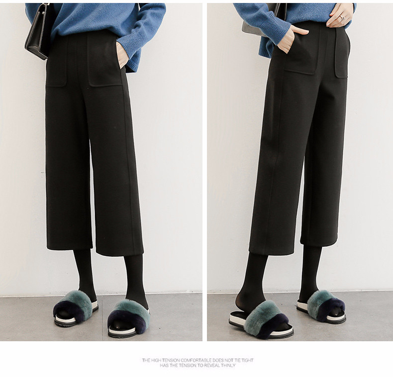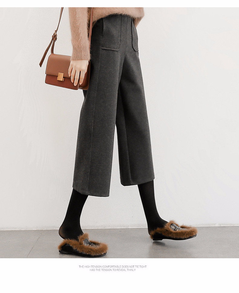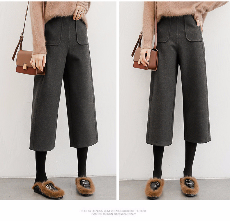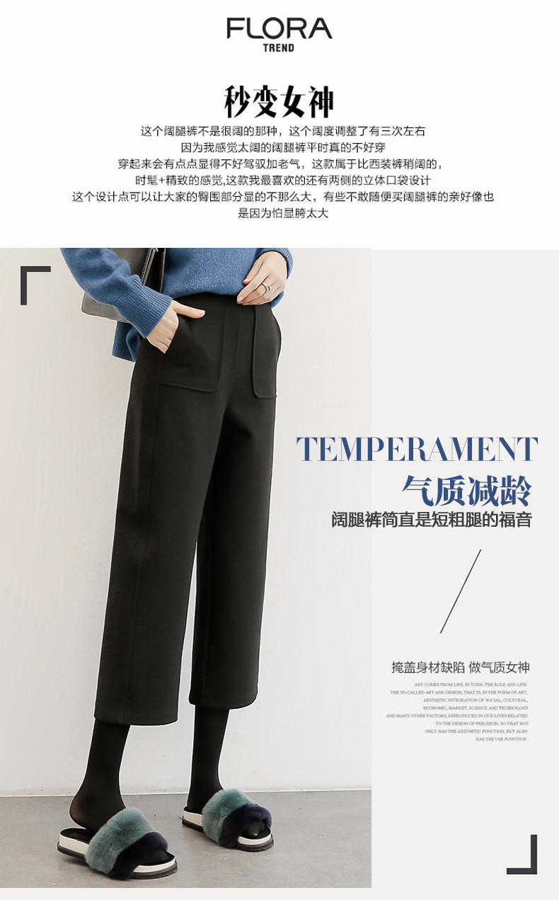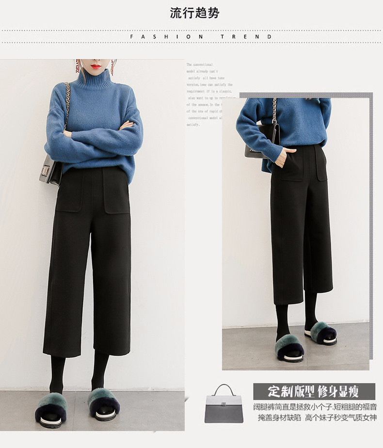 垂感毛呢濶腿褲女秋冬九分小個子直筒褲七分高腰新款學生顯高八分