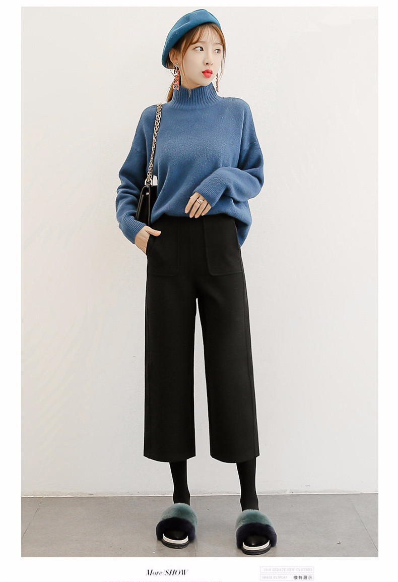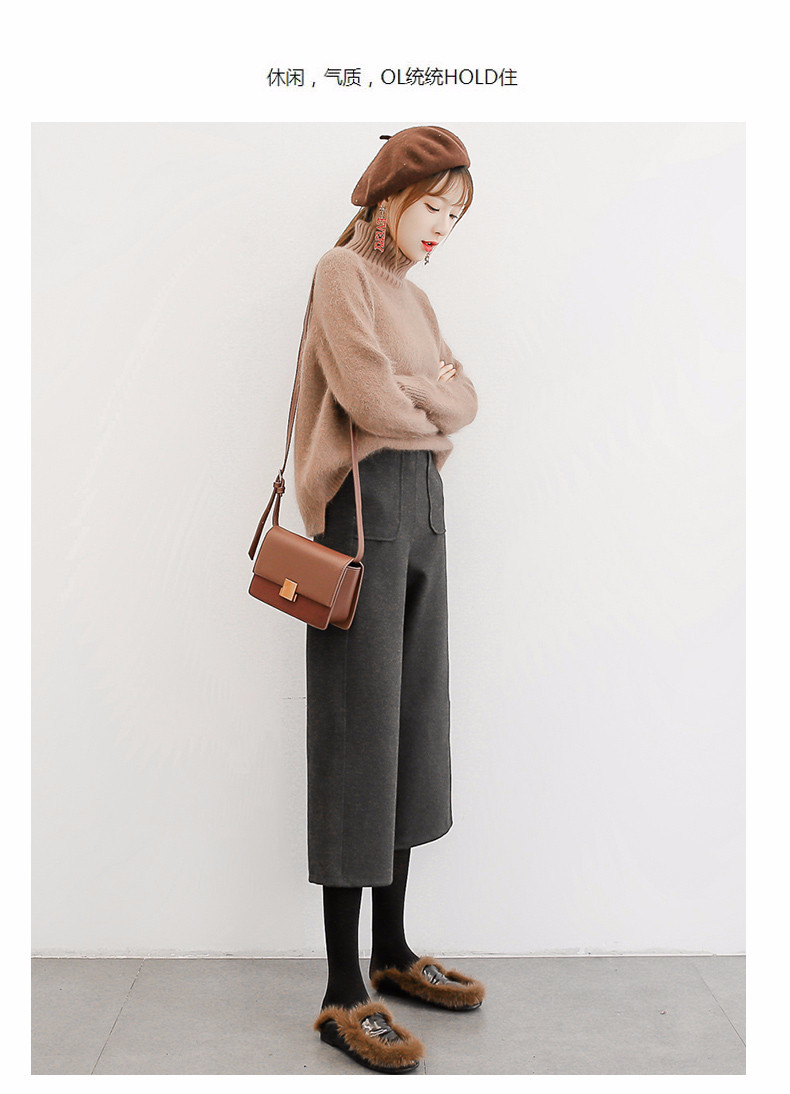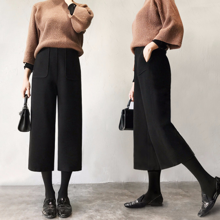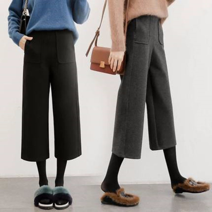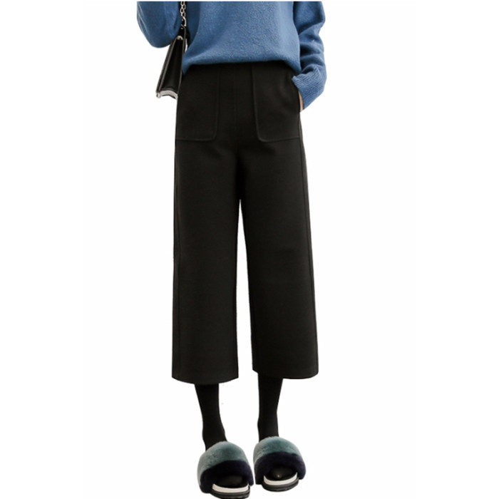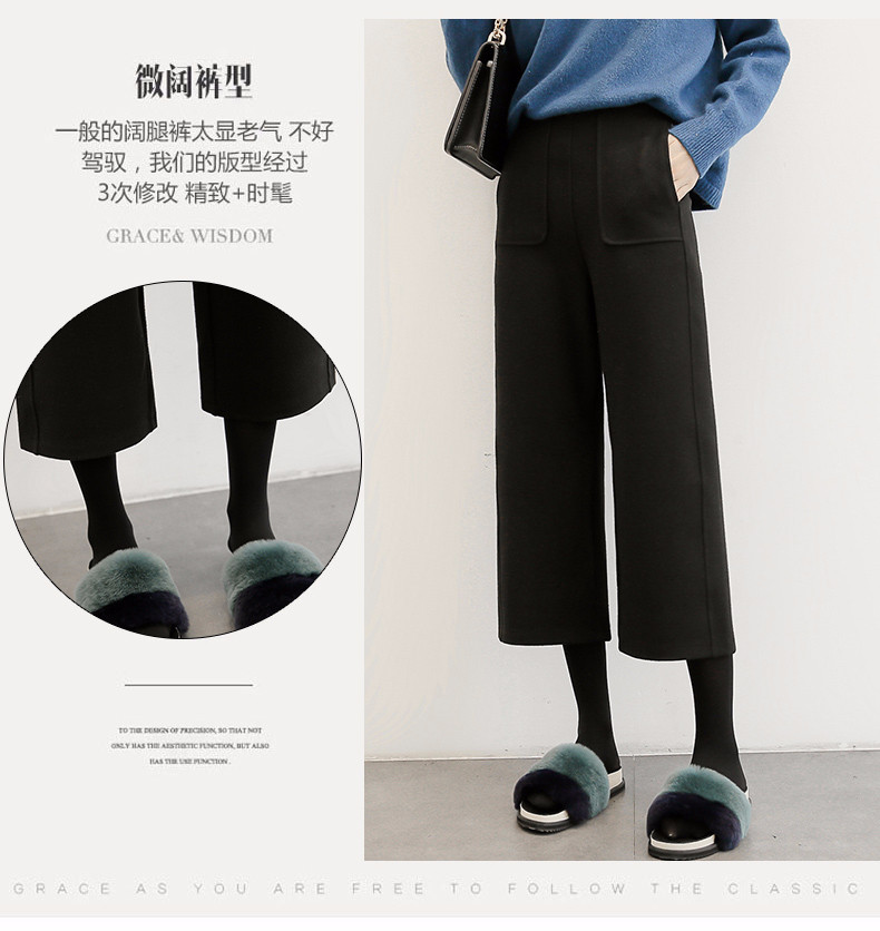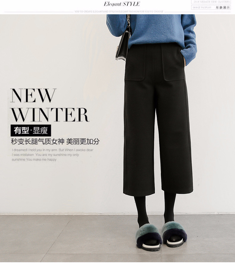 垂感毛呢濶腿褲女秋冬九分小個子直筒褲七分高腰新款學生顯高八分
