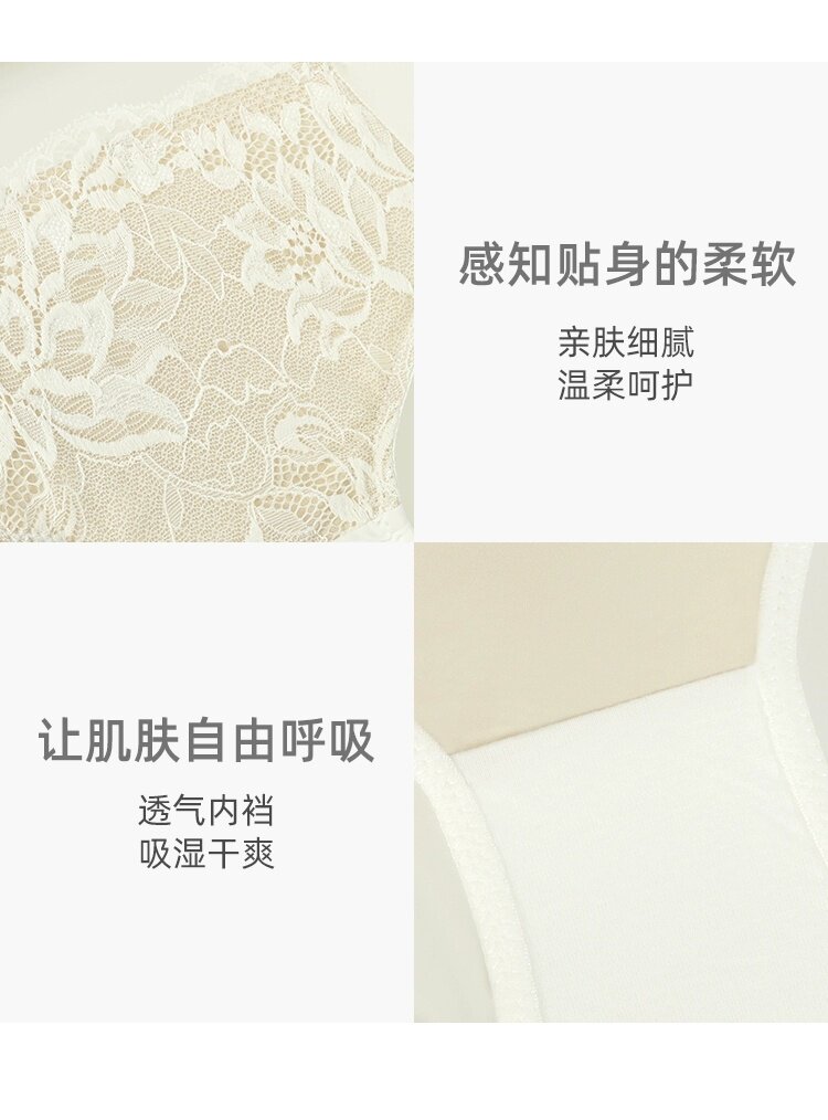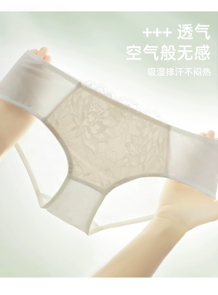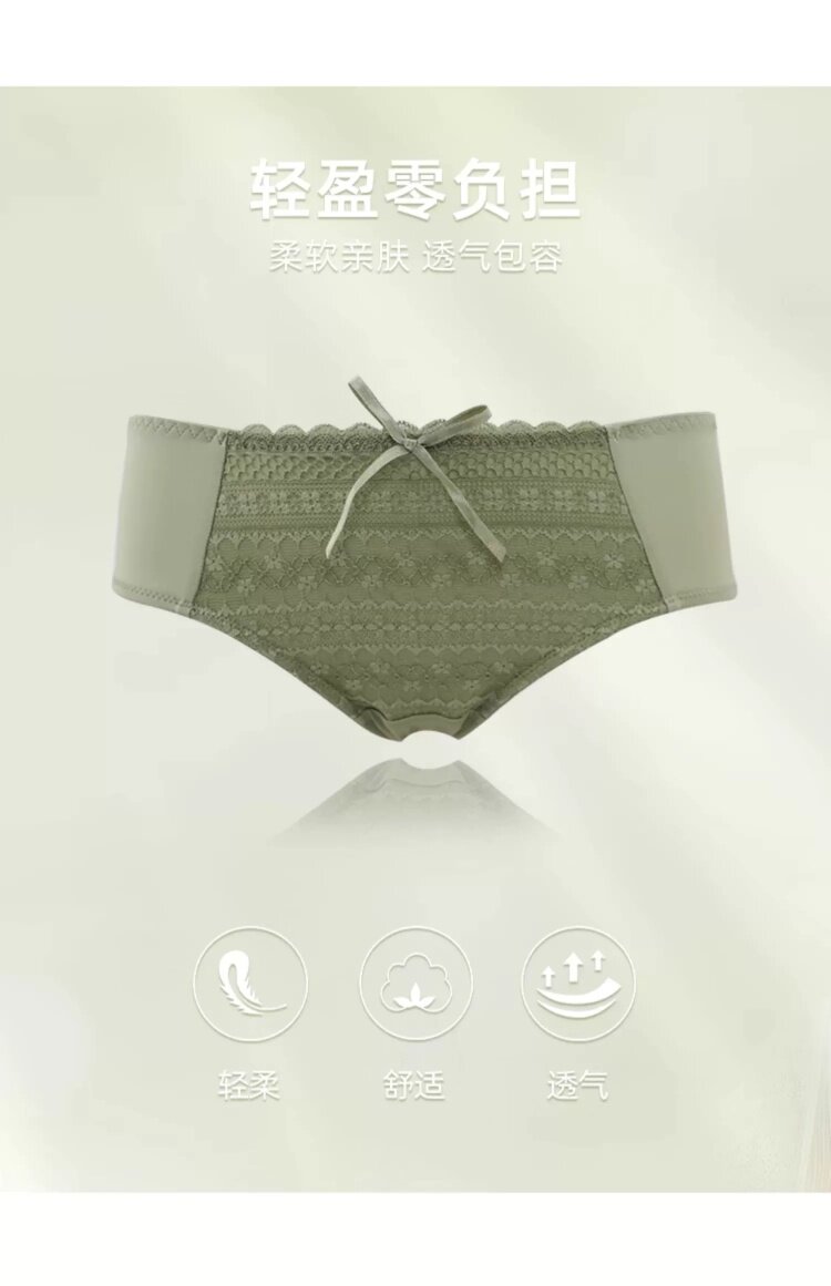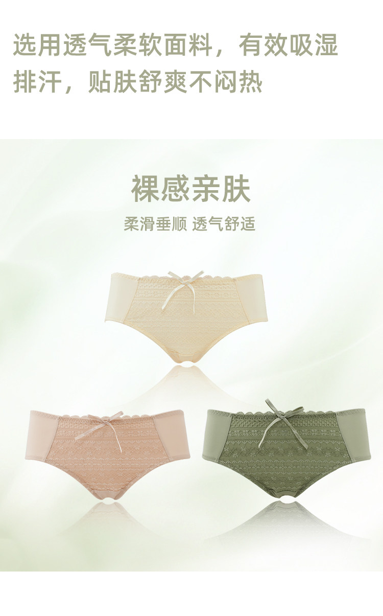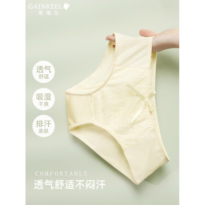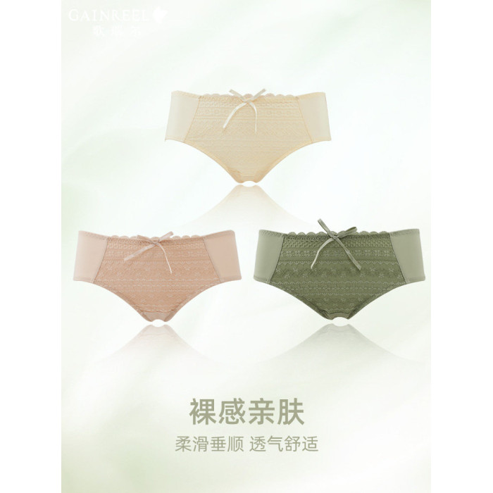 歌瑞爾裸感柔軟親膚新款蕾絲內褲女純棉襠舒適中低腰透氣三角褲衩