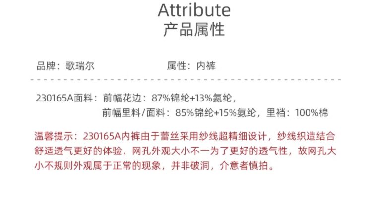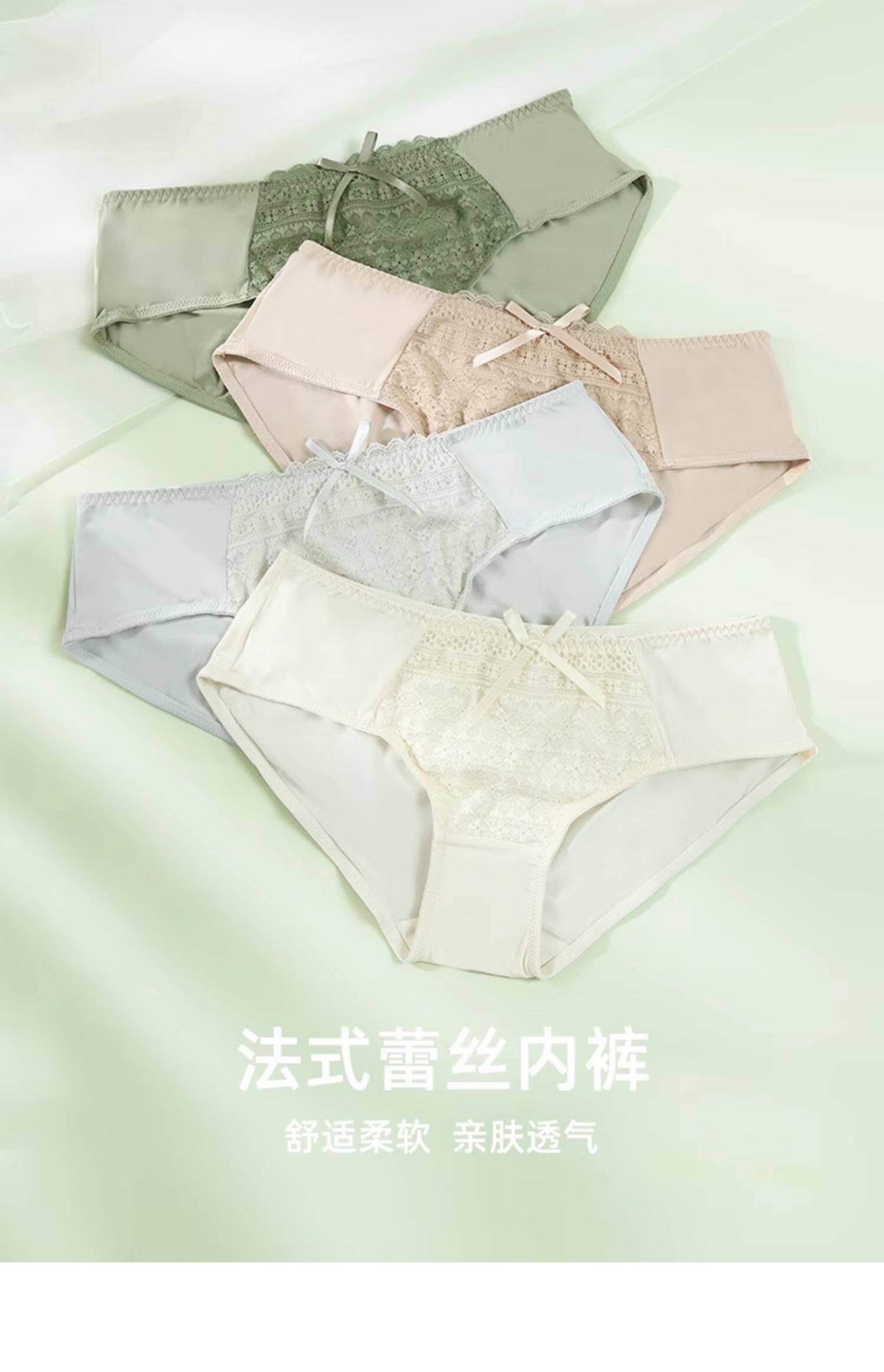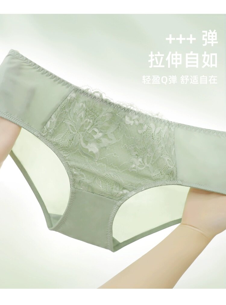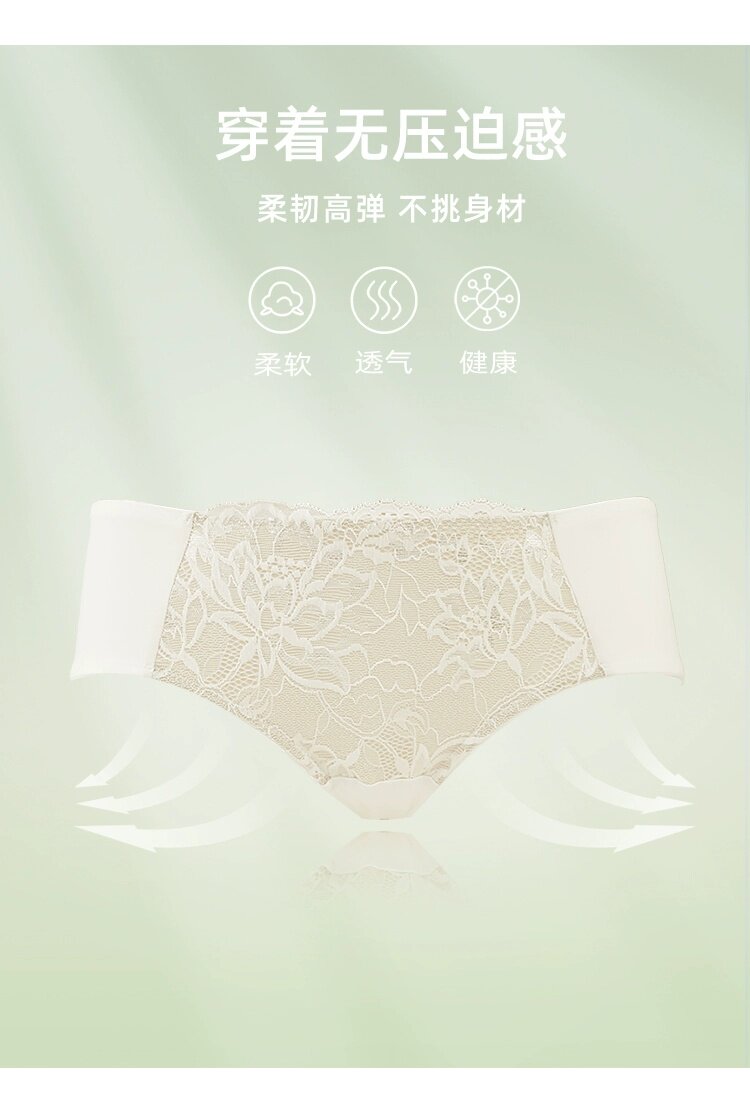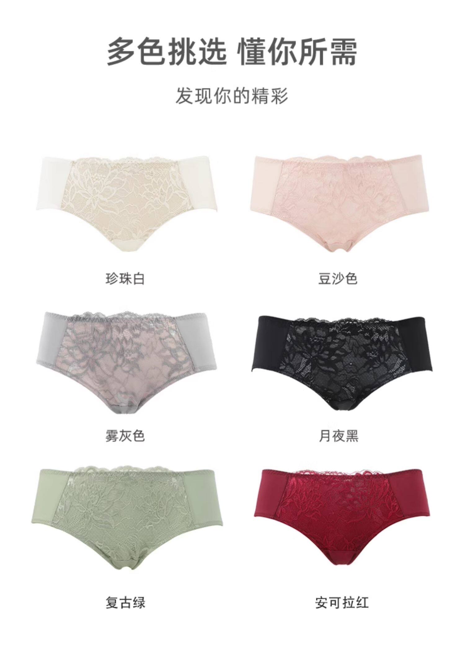 歌瑞爾裸感柔軟親膚新款蕾絲內褲女純棉襠舒適中低腰透氣三角褲衩
