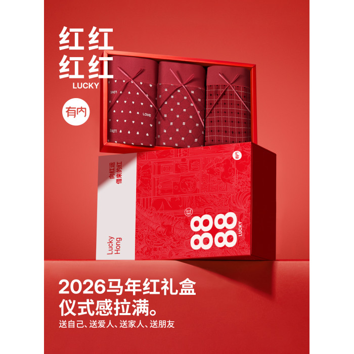 有內女士紅內褲女馬年桑蠶絲襠抗菌少女生本命年禮盒結婚新款紅色