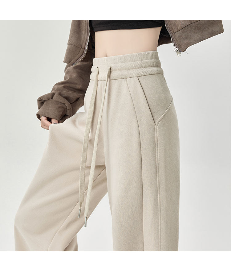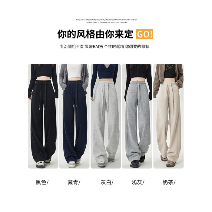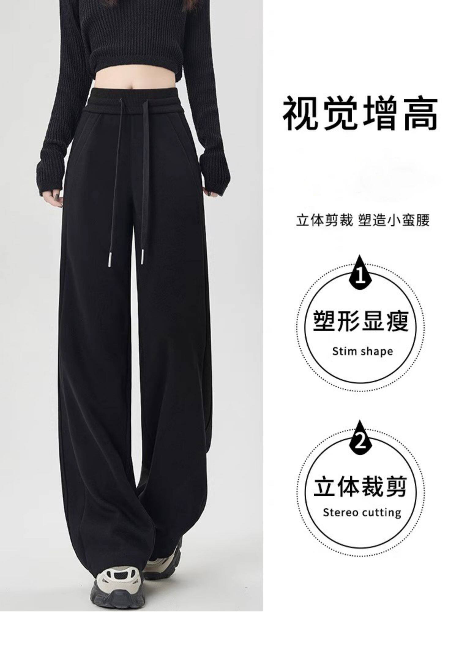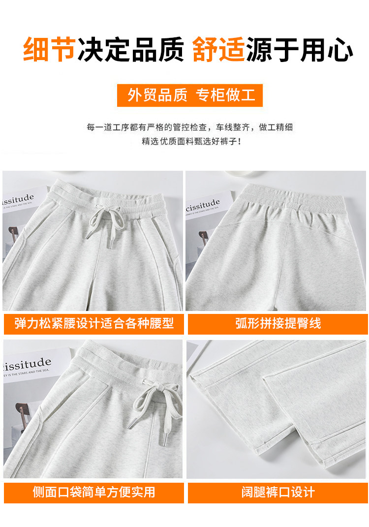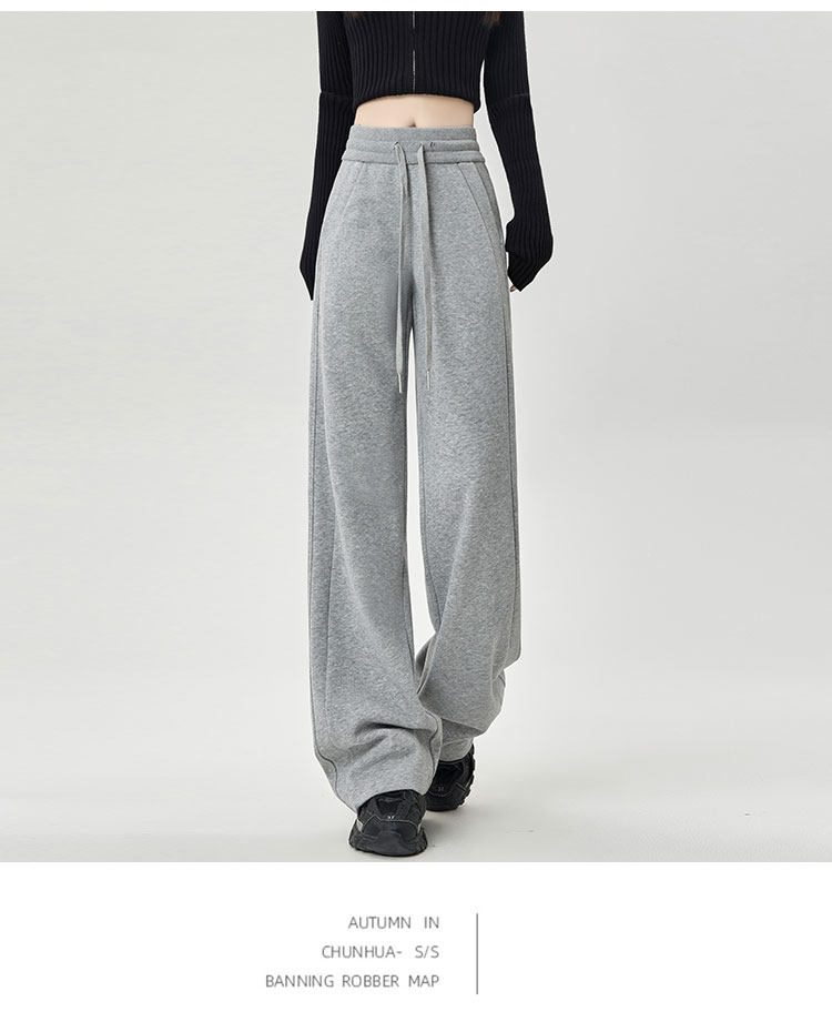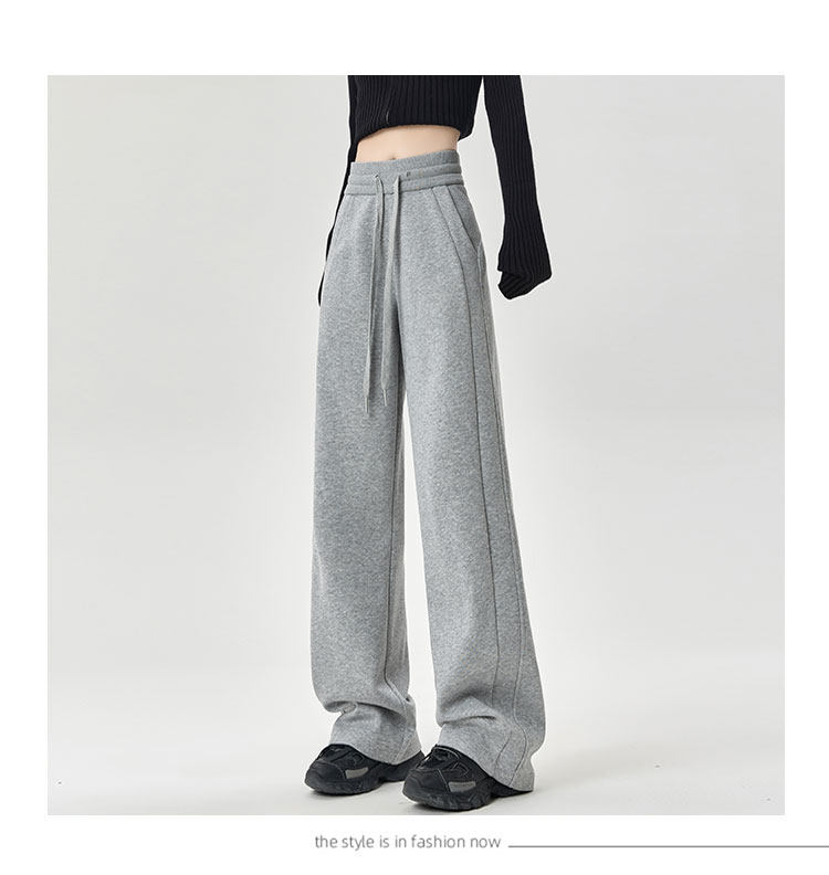 灰色運動褲女秋冬直筒小個子休閒衛褲窄版高腰加絨褲子香蕉濶腿褲