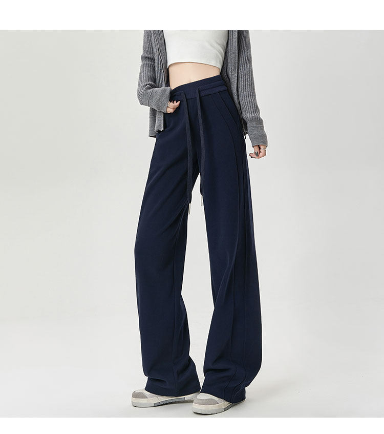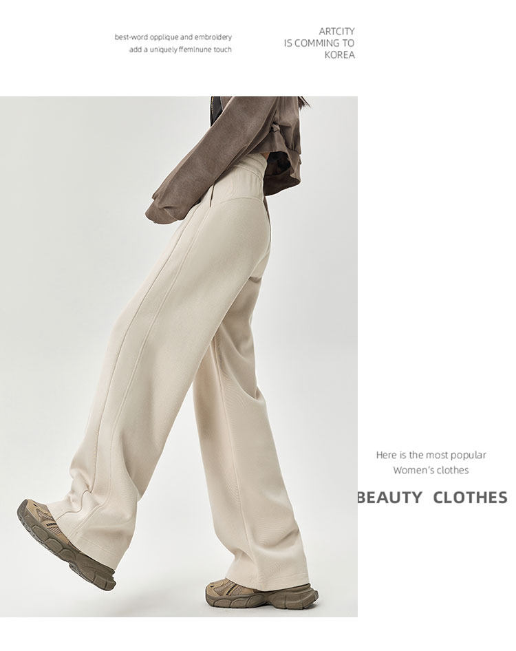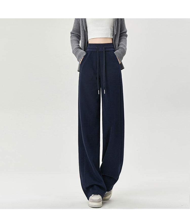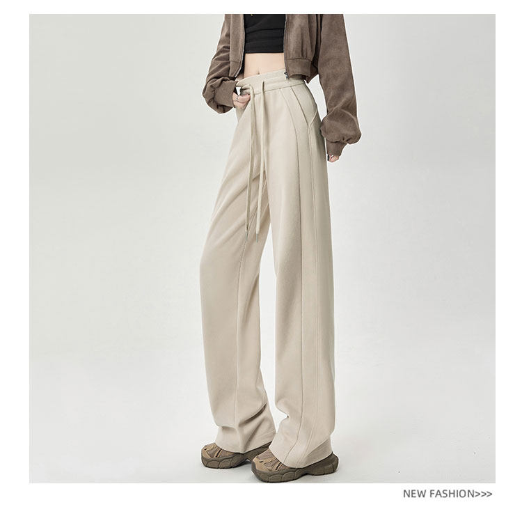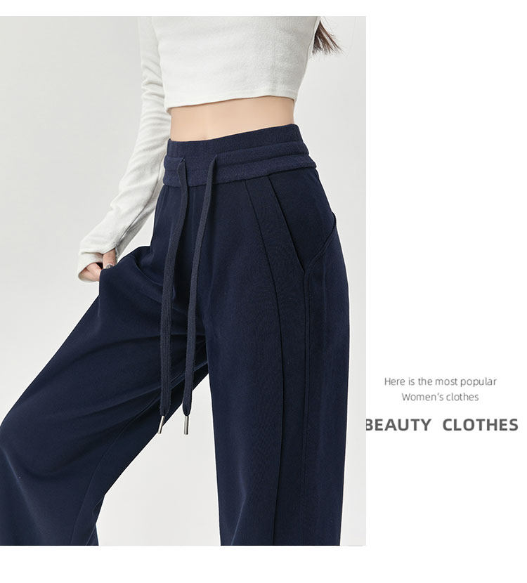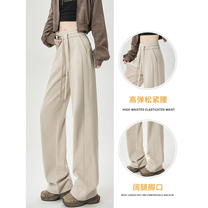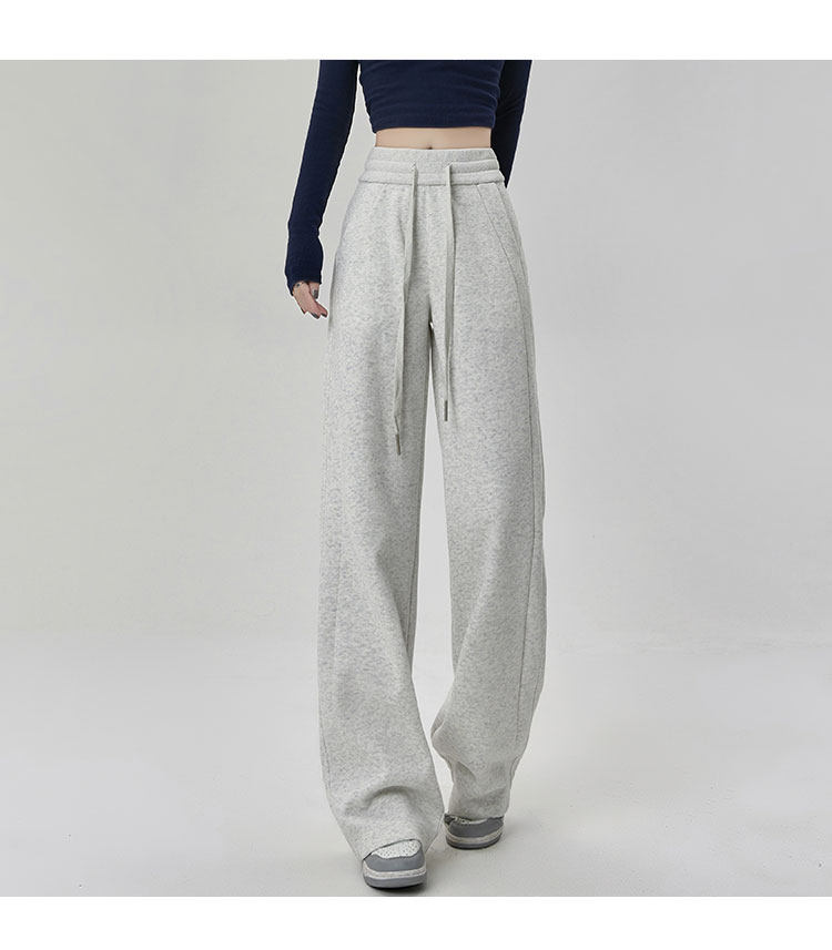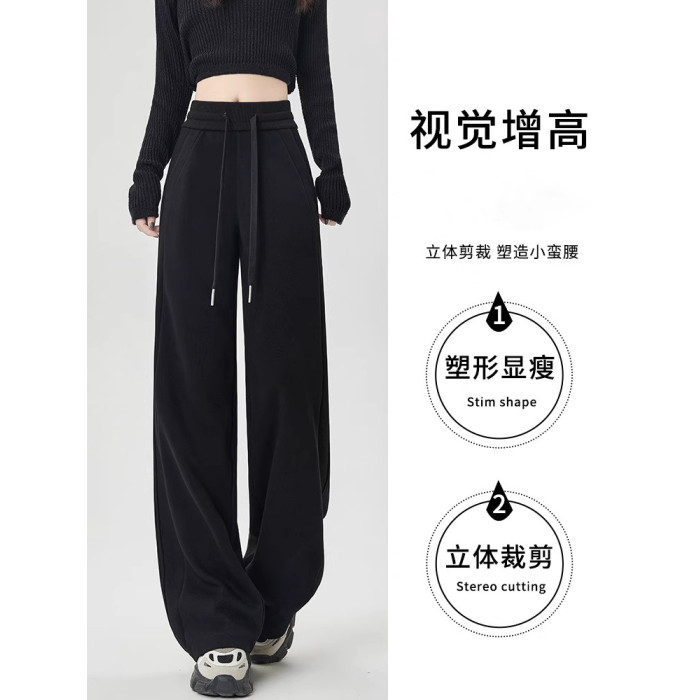 灰色運動褲女秋冬直筒小個子休閒衛褲窄版高腰加絨褲子香蕉濶腿褲