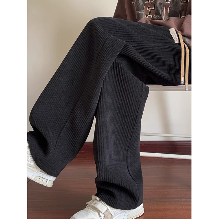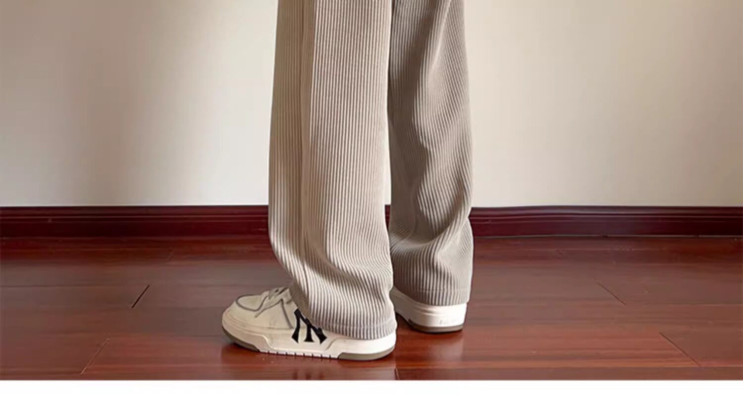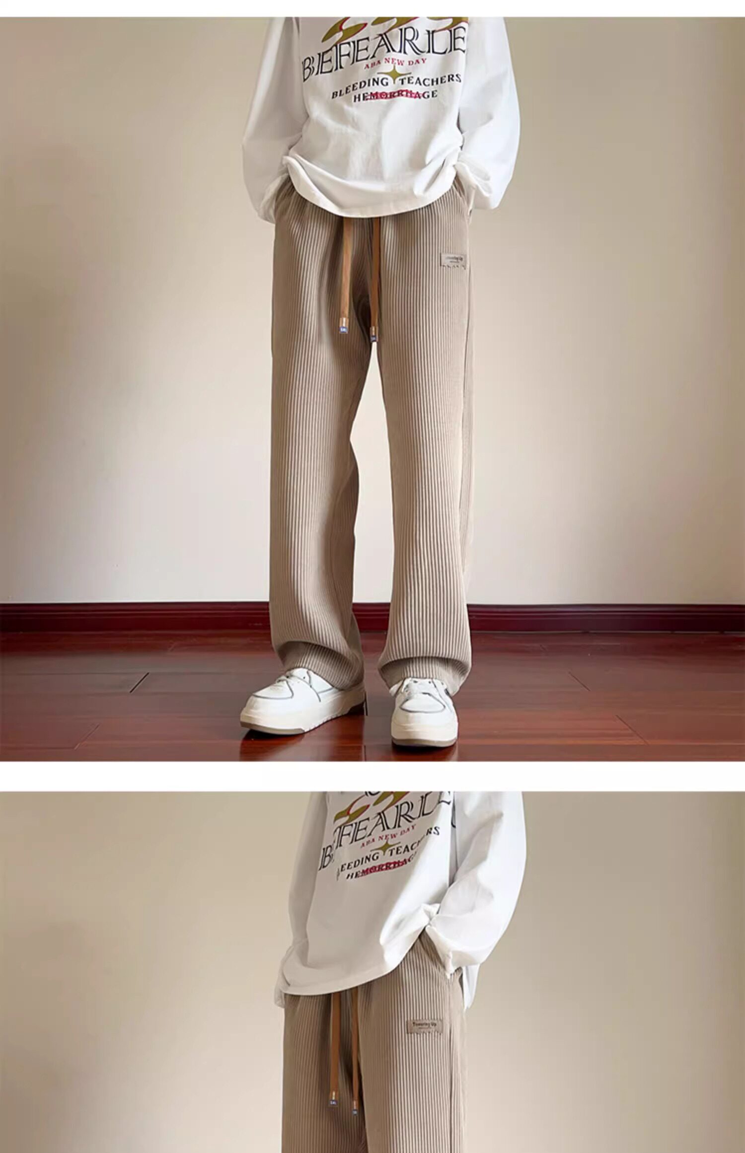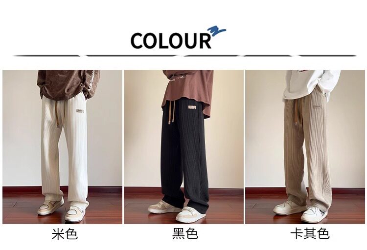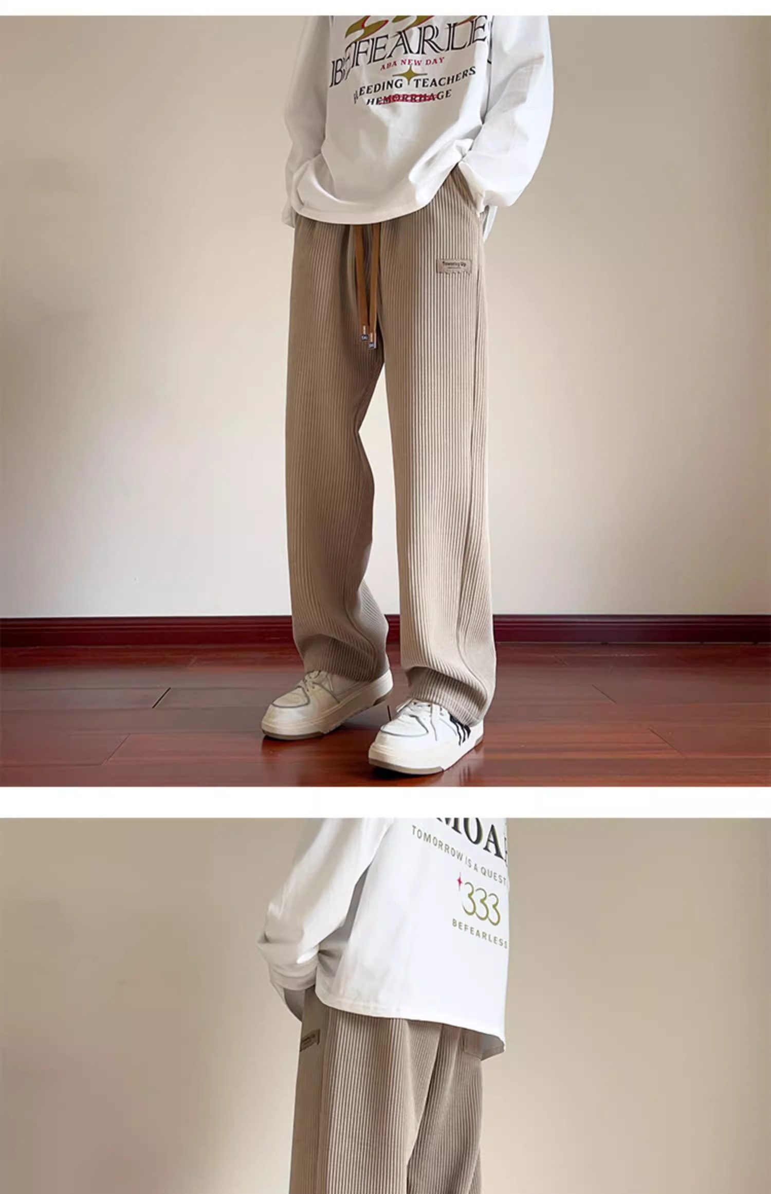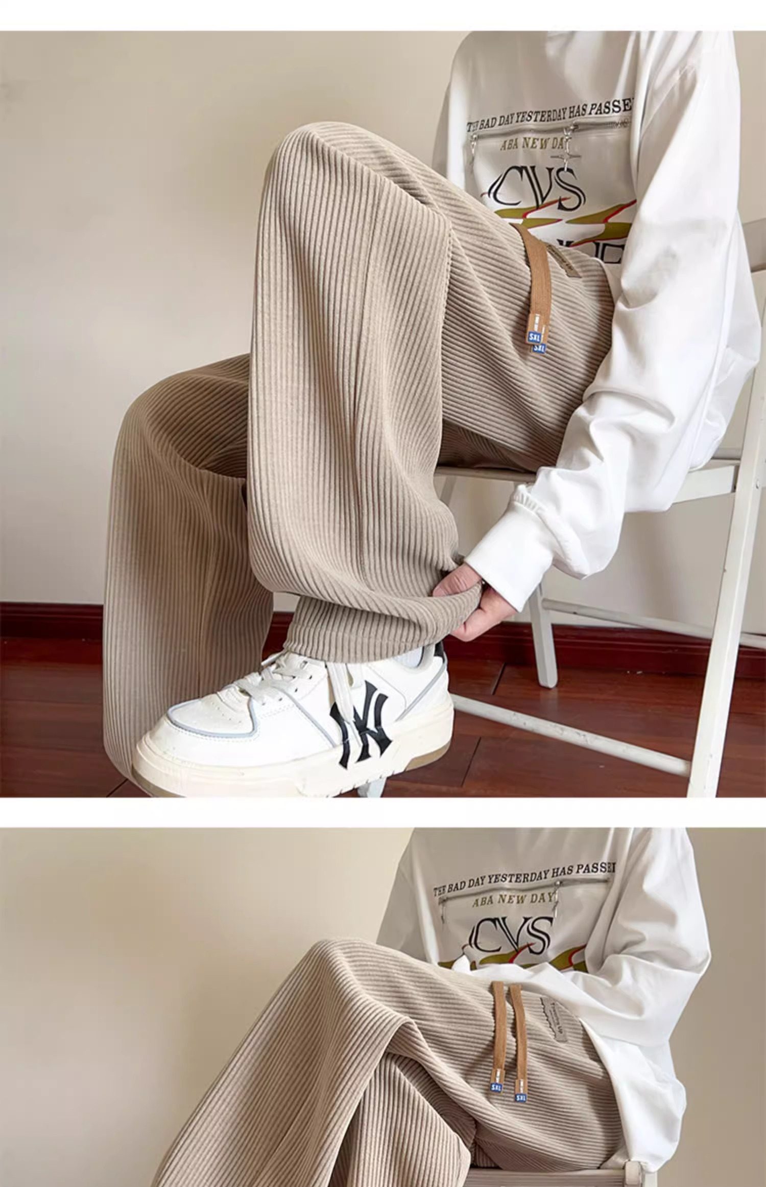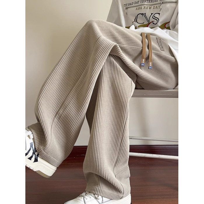 卡其色燈芯絨褲子女秋冬寬鬆慵懶風直筒大碼胖mm休閒百搭濶腿衛褲
