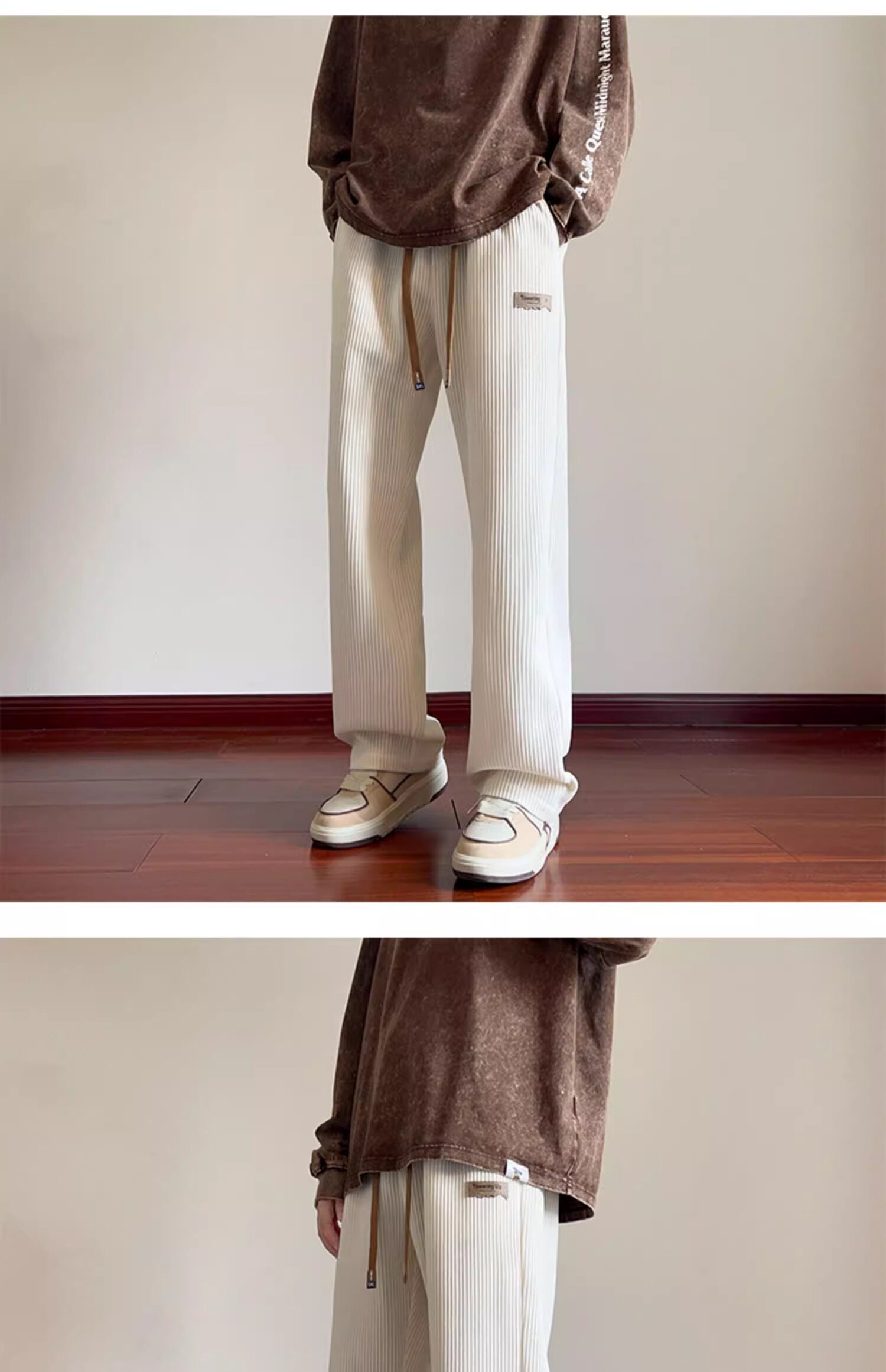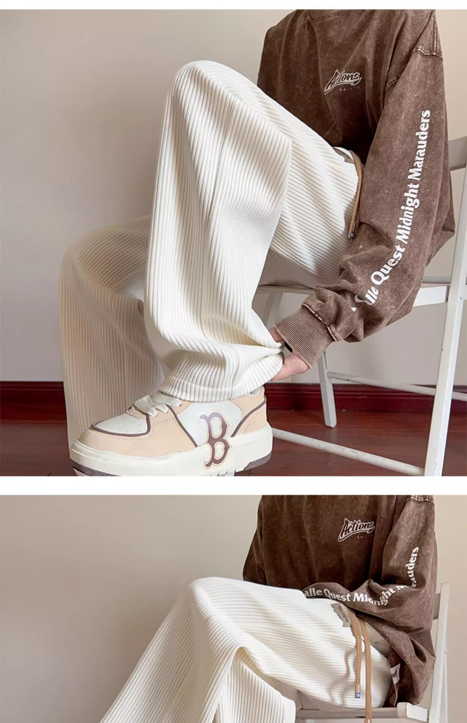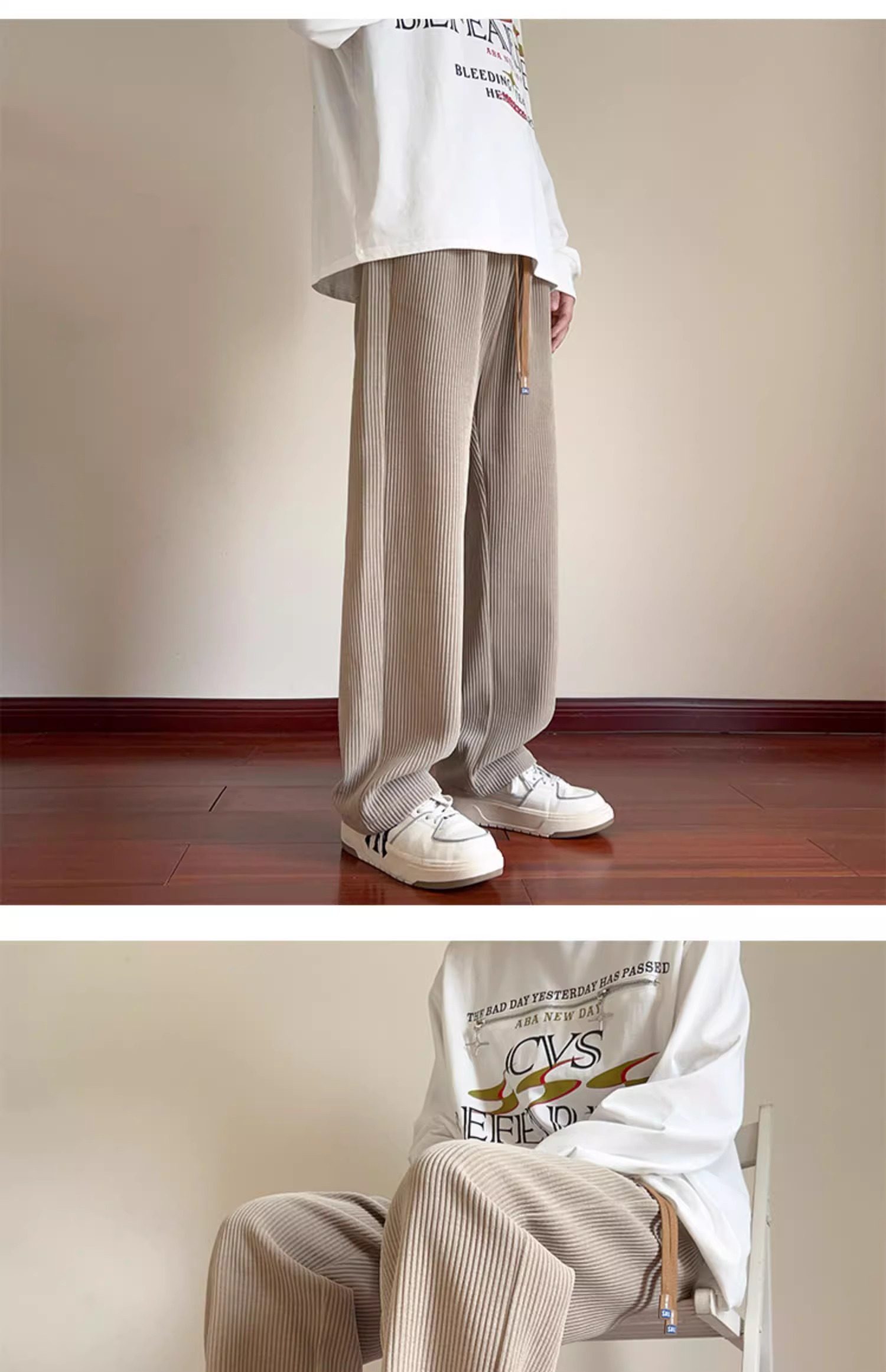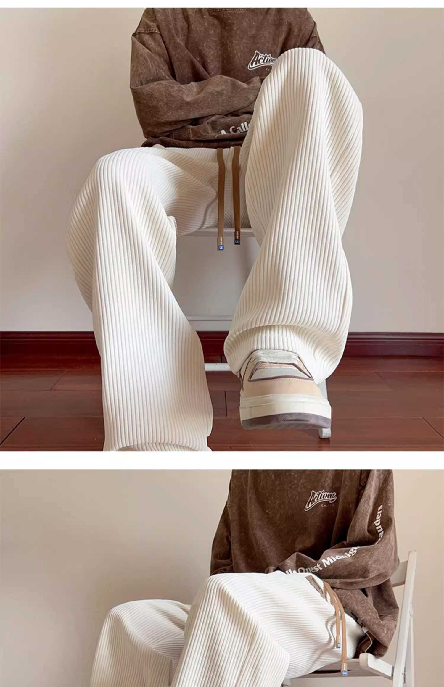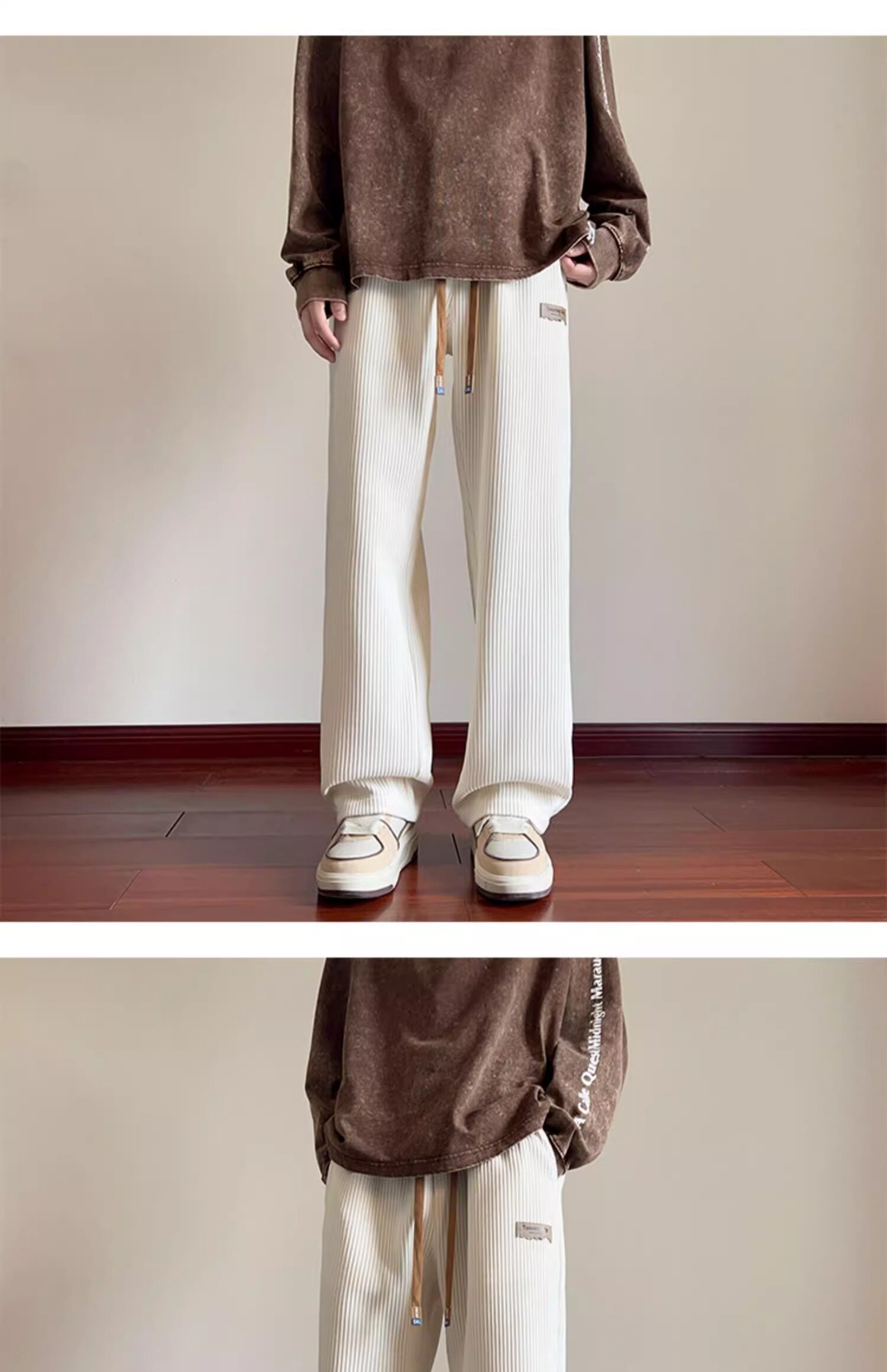 卡其色燈芯絨褲子女秋冬寬鬆慵懶風直筒大碼胖mm休閒百搭濶腿衛褲