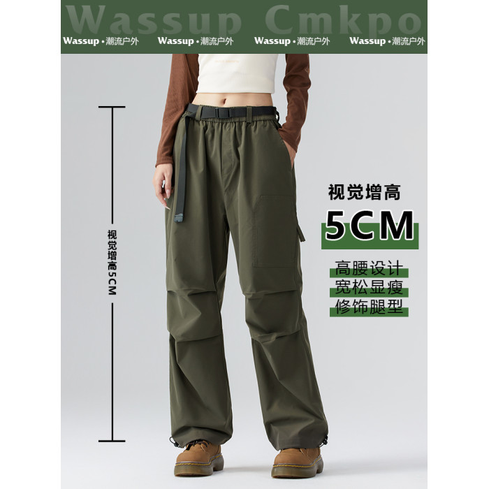 WASSUP CMKPO戶外沖鋒軟殼褲女加絨加厚登山褲子春秋冬工裝傘兵褲