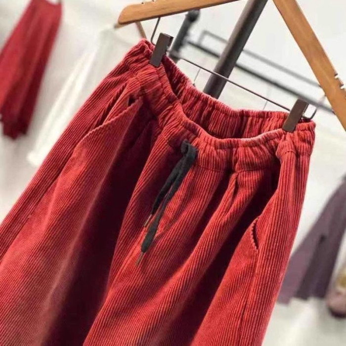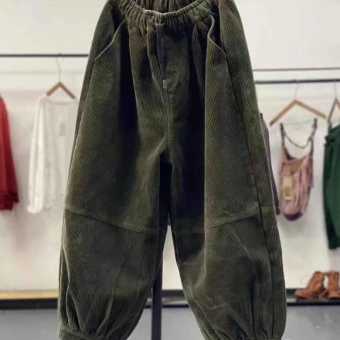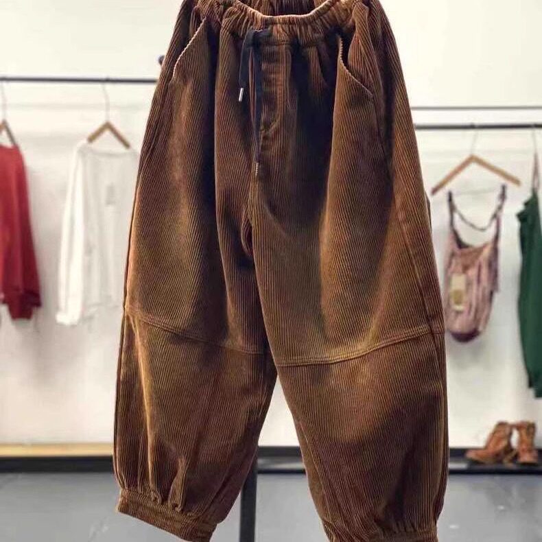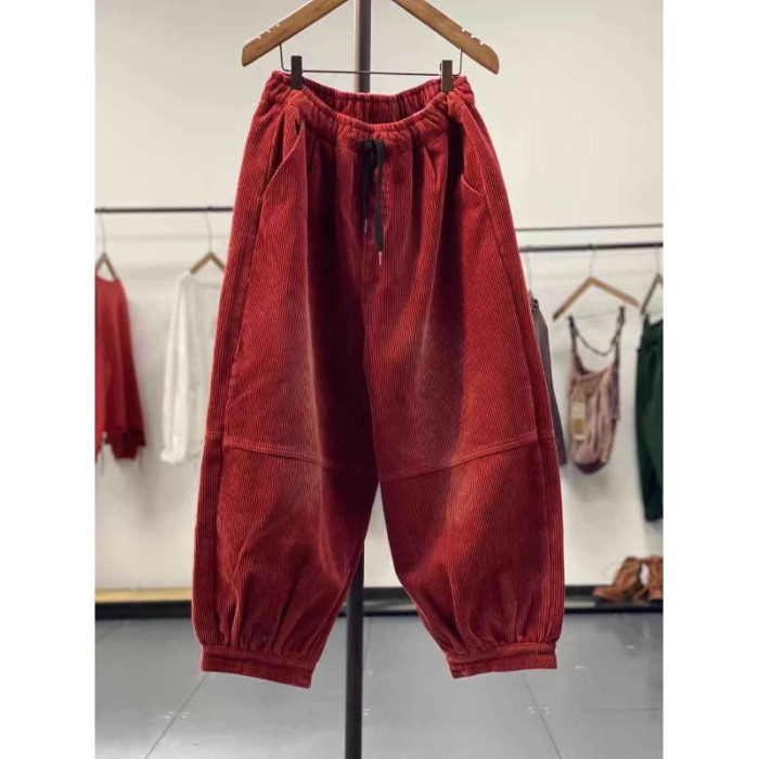 大牌出口女裝2024年冬款燈芯絨加絨休閒褲大碼燈籠褲女褲