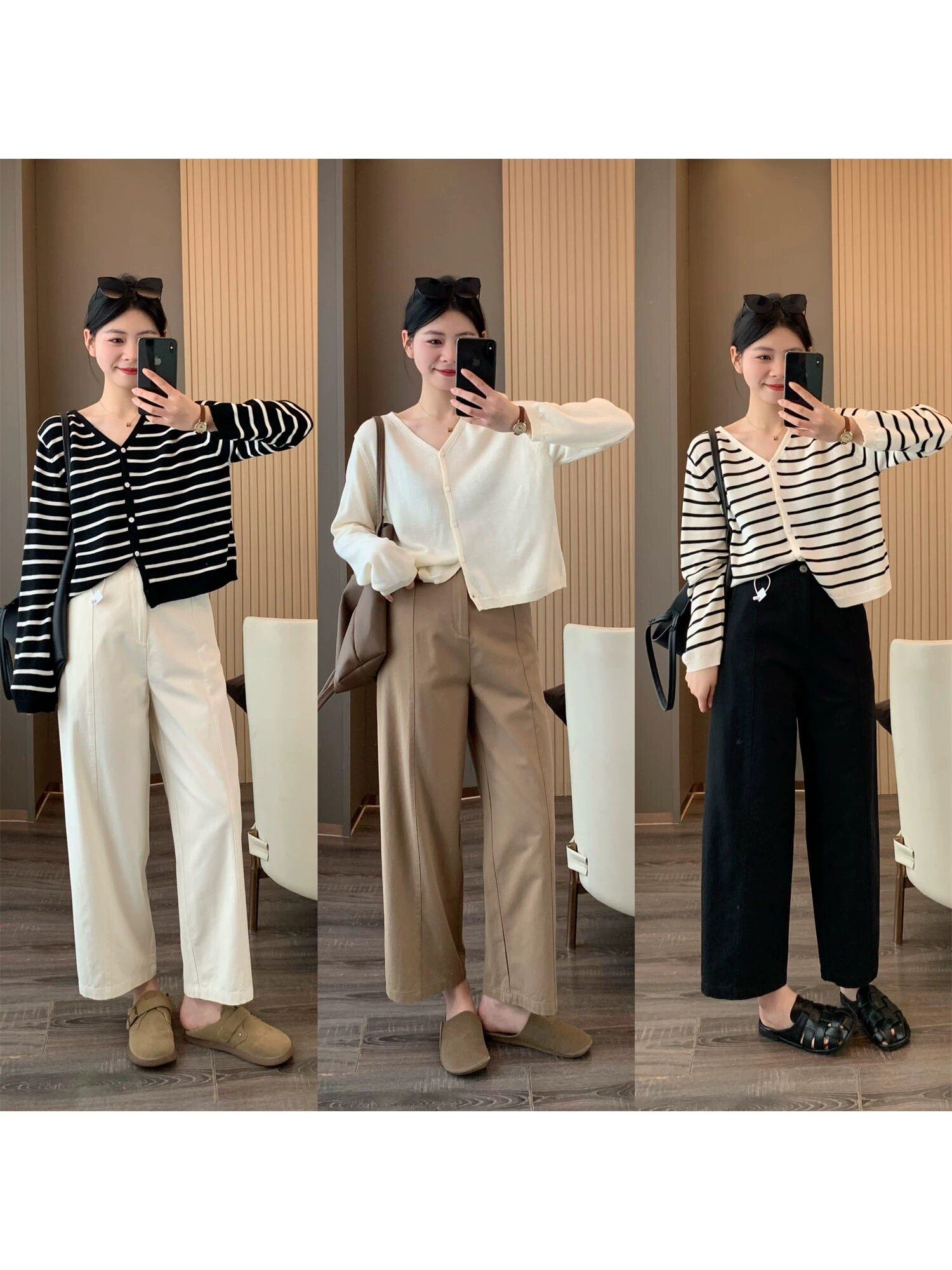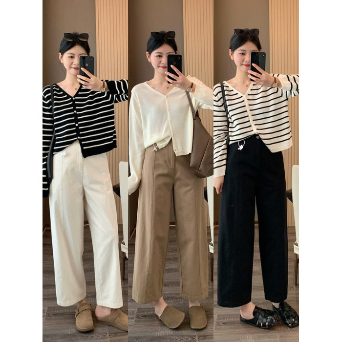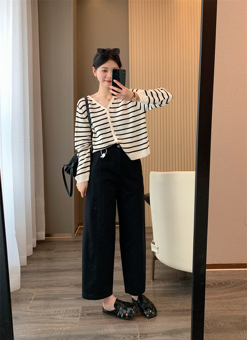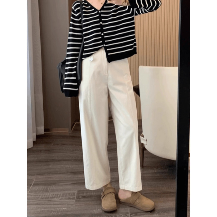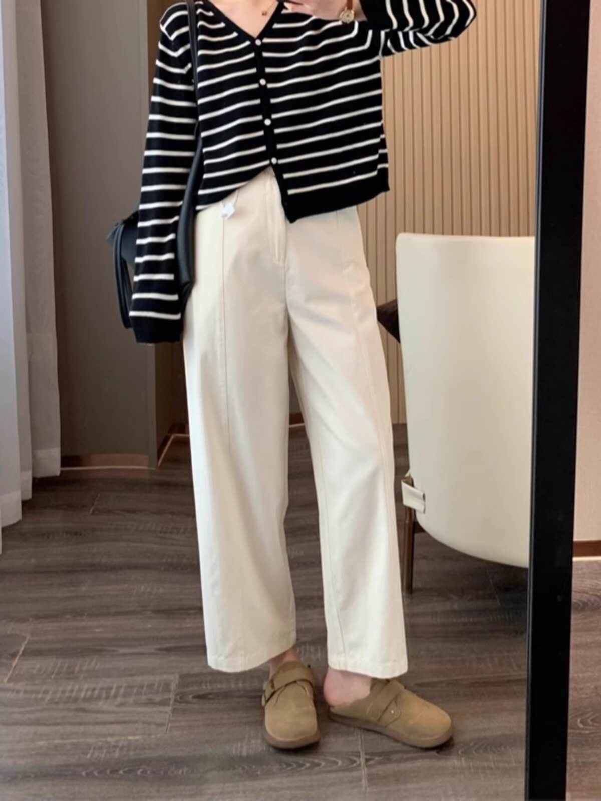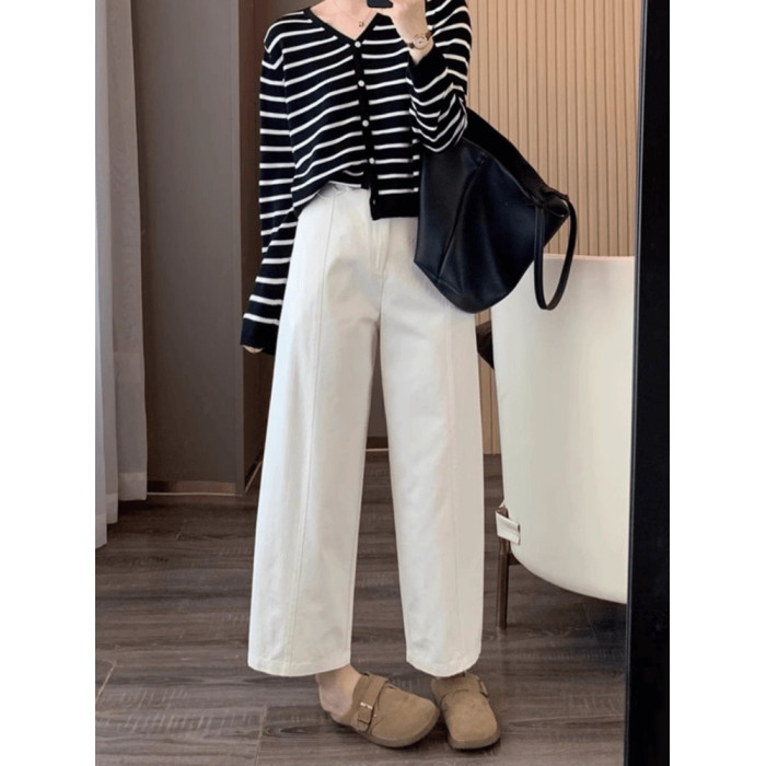 冬季新款高腰顯瘦直筒休閒褲女大碼胖妹妹九分濶腿褲梨形身材褲子