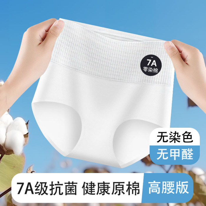 白色0染棉純棉高腰收腹內褲女大碼A類提花透氣中老年媽媽三角褲頭