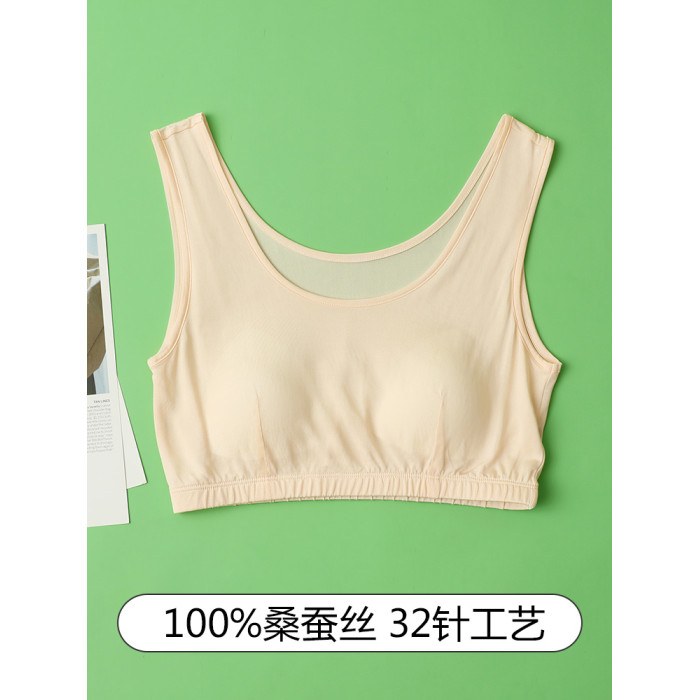 薄款100%桑蠶絲真絲針織瑜珈背心式無鋼圈無痕三角杯內衣文胸女