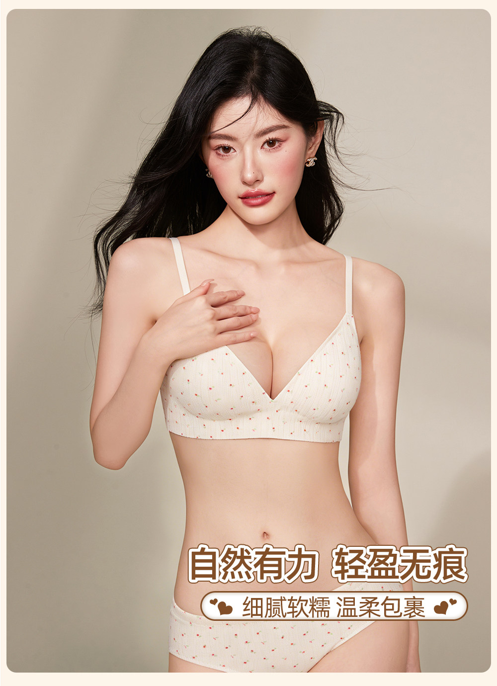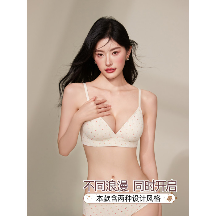 六隻兔子法式小V領內衣女小胸聚攏收副乳防下垂無鋼圈文胸罩套裝