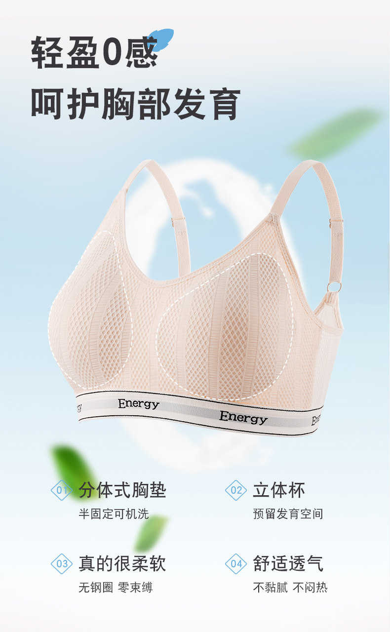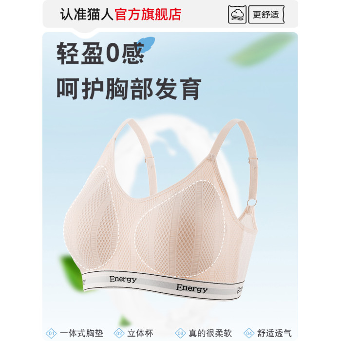 貓人少女內衣初高中生發育期運動防震固定杯透氣女孩夏季薄款文胸