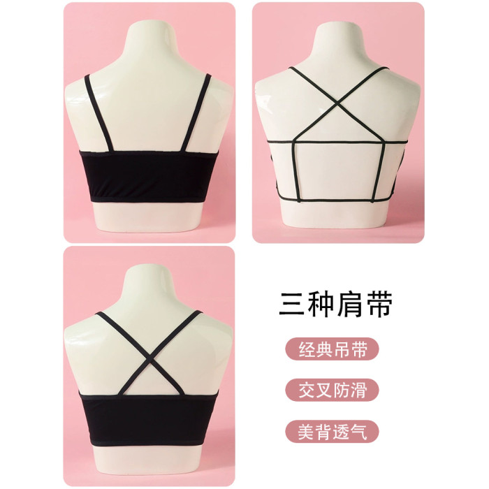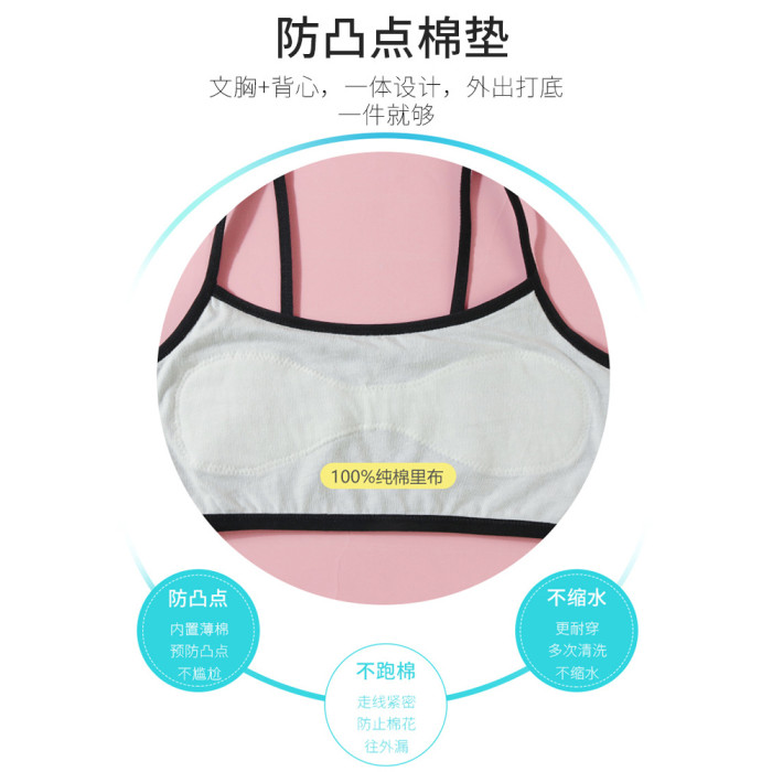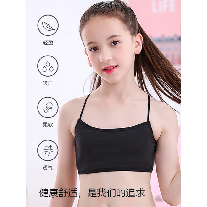 兒童舞蹈吊帶背心發育期防凸點女童純棉內衣美背跳舞內搭打底黑色
