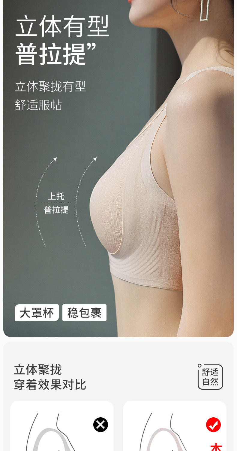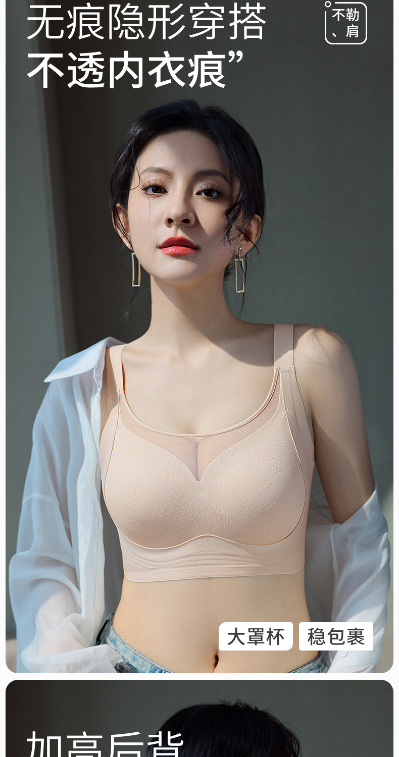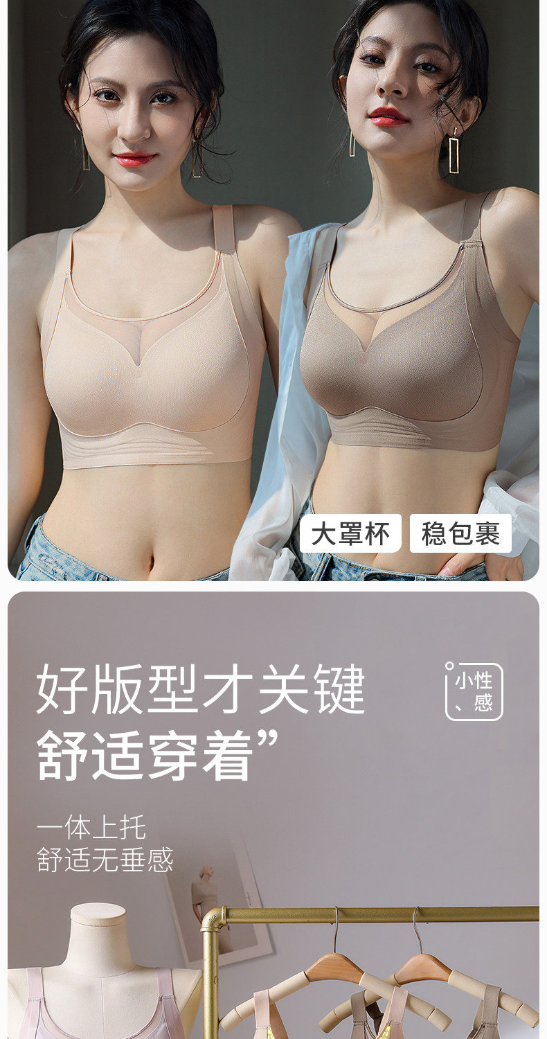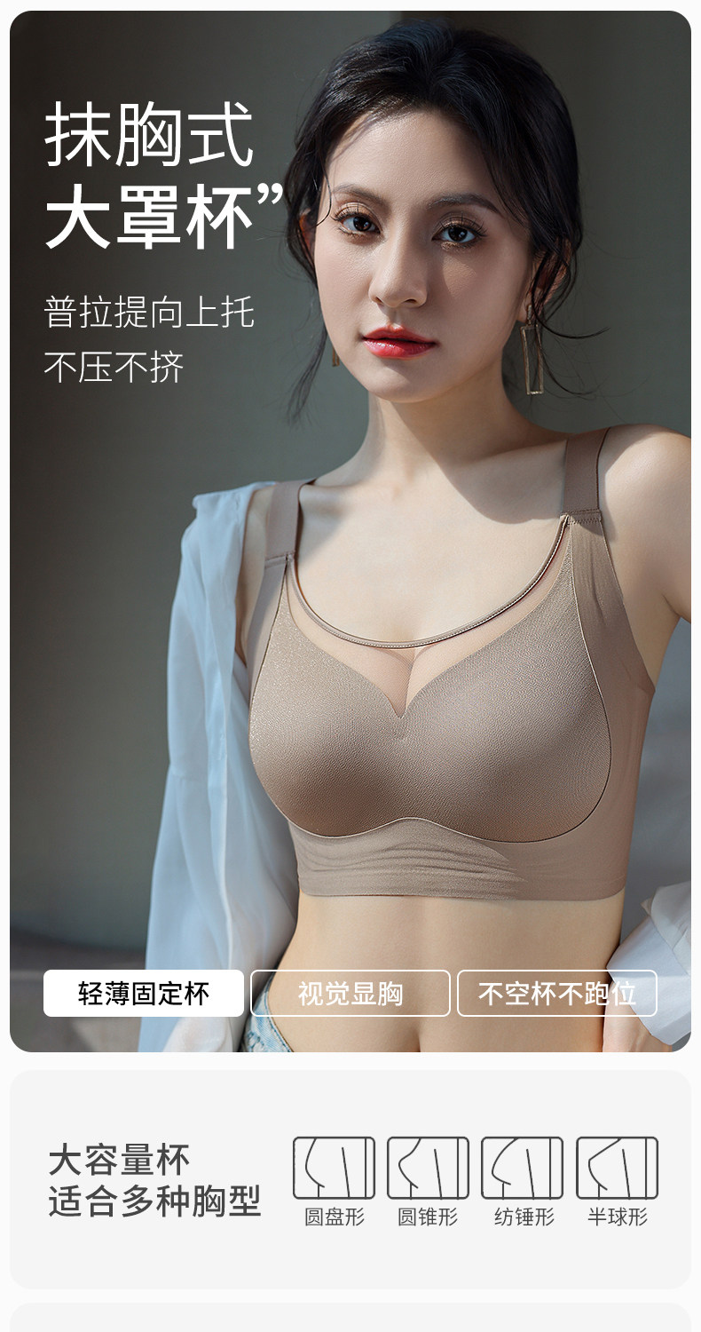 大碼全罩杯提拉內衣女大胸顯小聚攏收副乳調整型抹胸防走光文胸夏