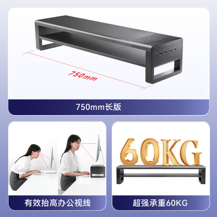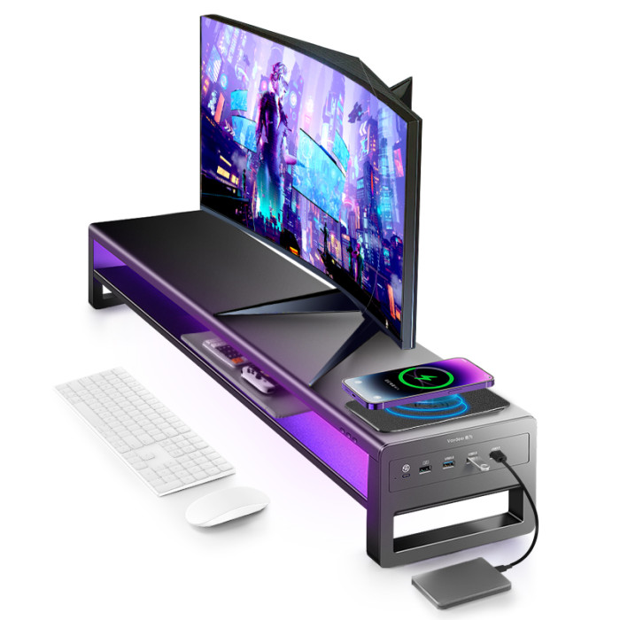 炫彩職業級電競顯示器增高架桌上型電腦支架多功能無線快充USB擴展