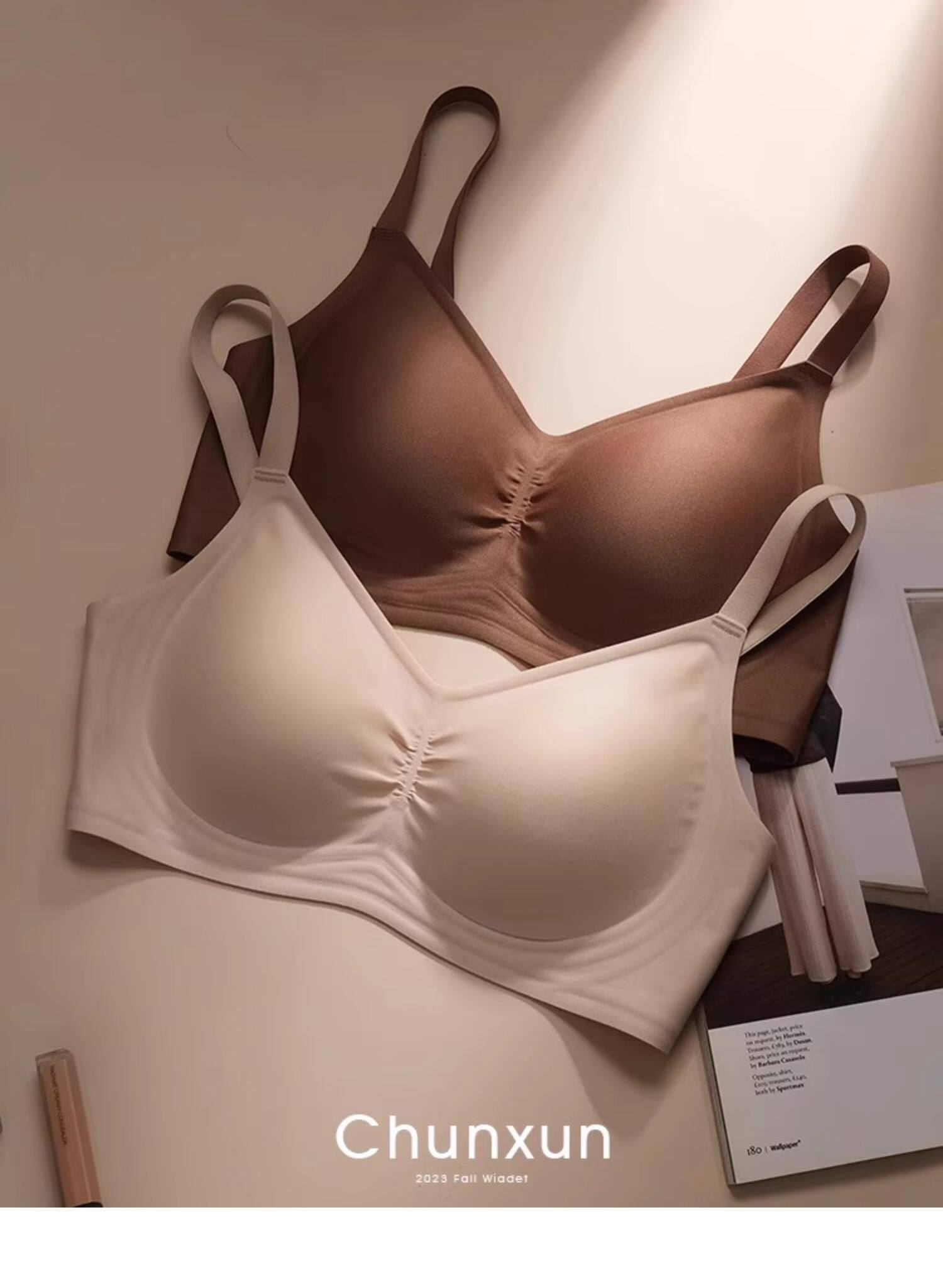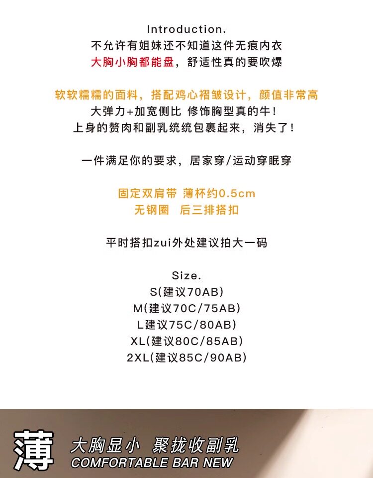 無痕裸感內衣女軟支撐大胸顯小薄款無鋼圈收副乳防下垂運動文胸罩