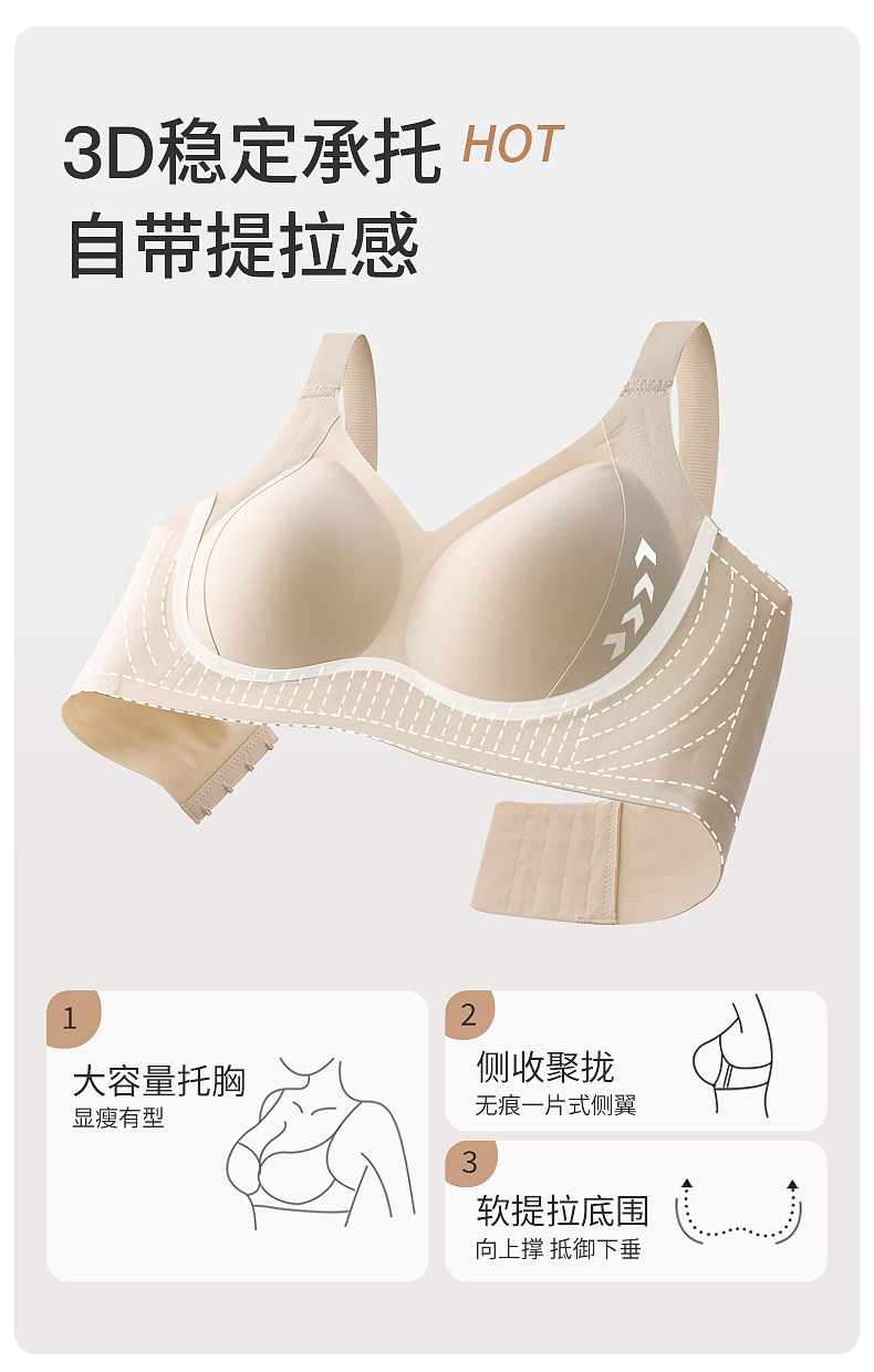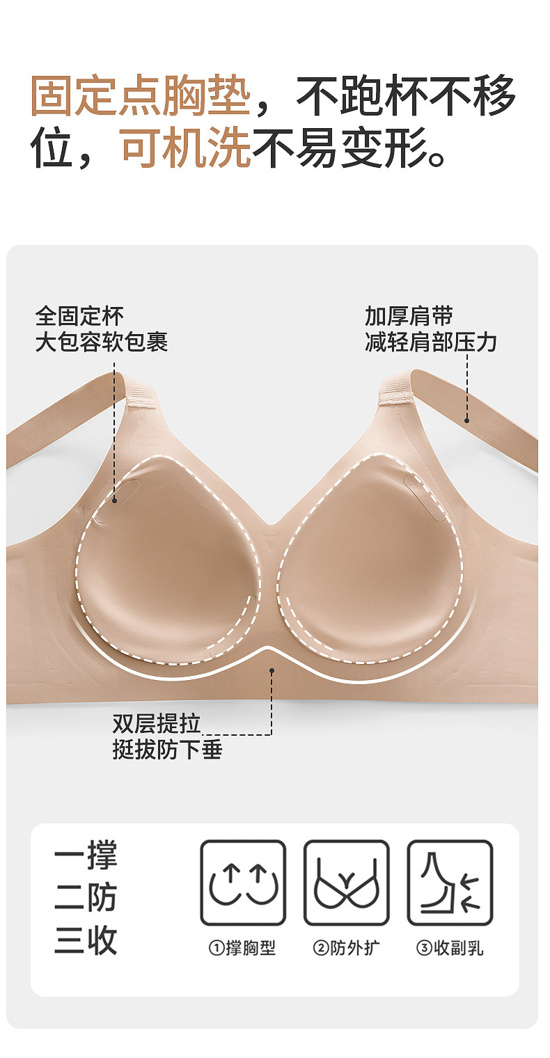 古今@無痕內衣女大胸顯小薄款提拉反重力聚攏無鋼圈運動舒適文胸