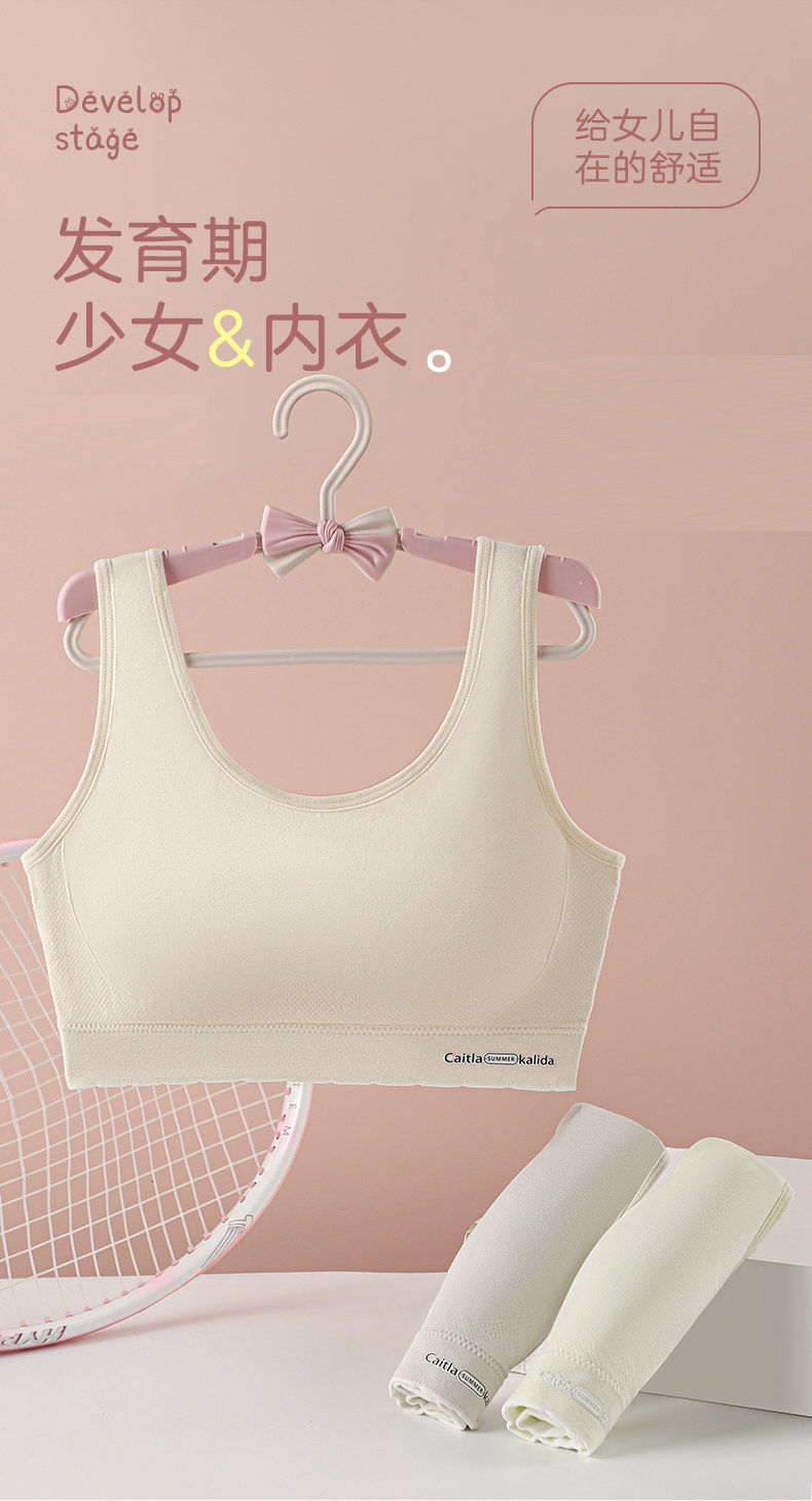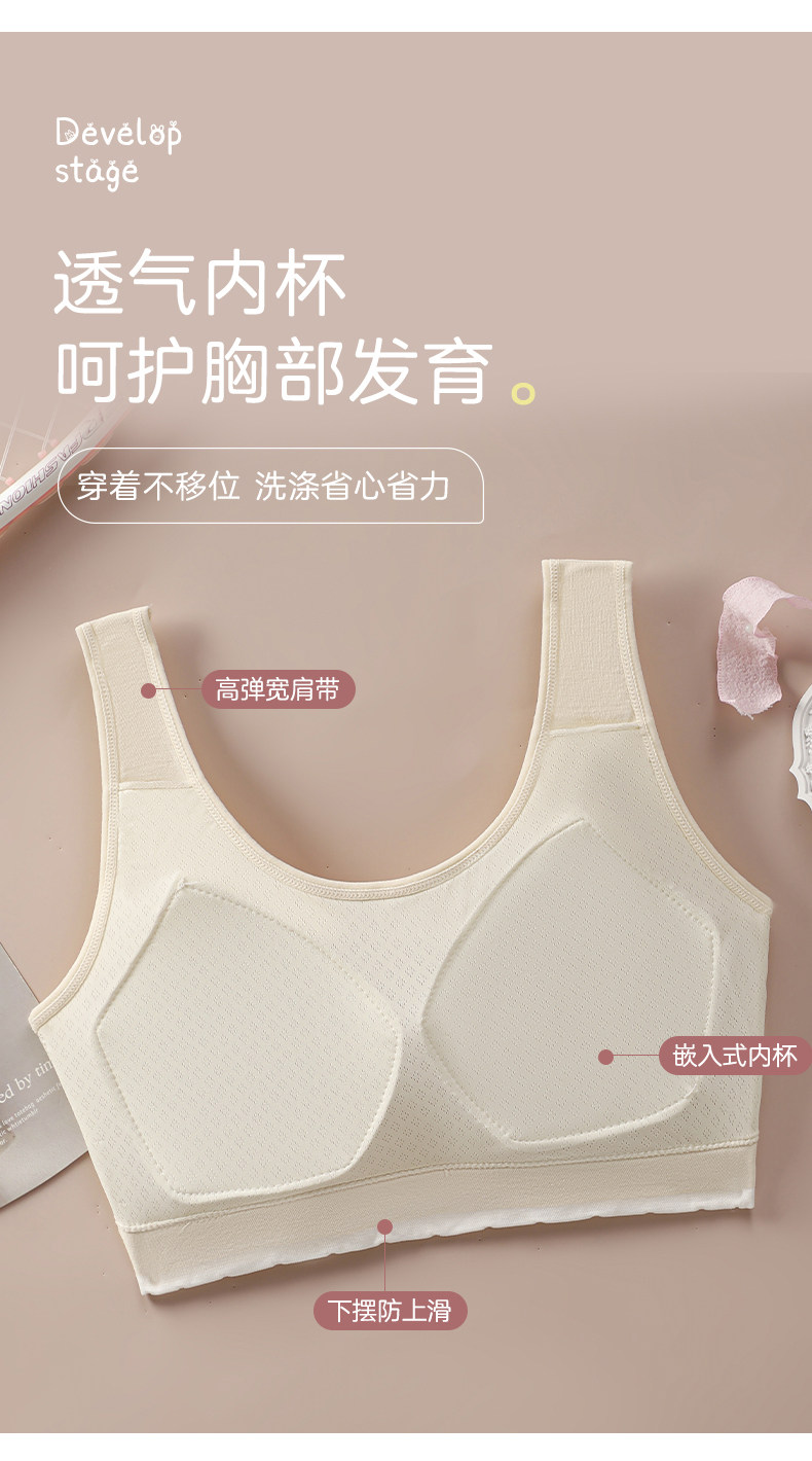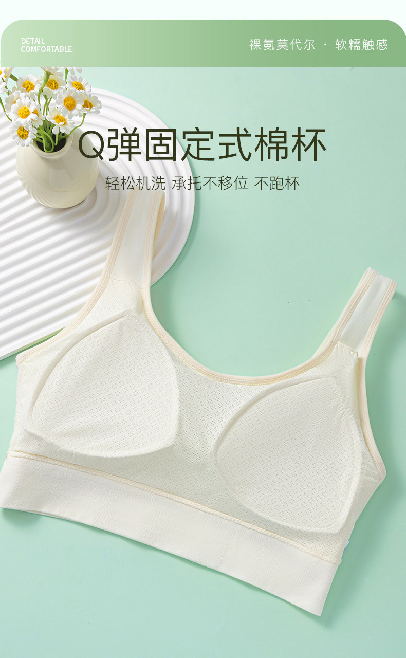 【14-21嵗軟糯棉莫四季款定型蜂巢杯】少女內衣無痕初高中生文胸