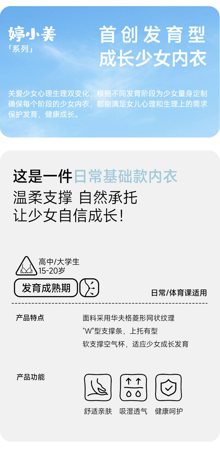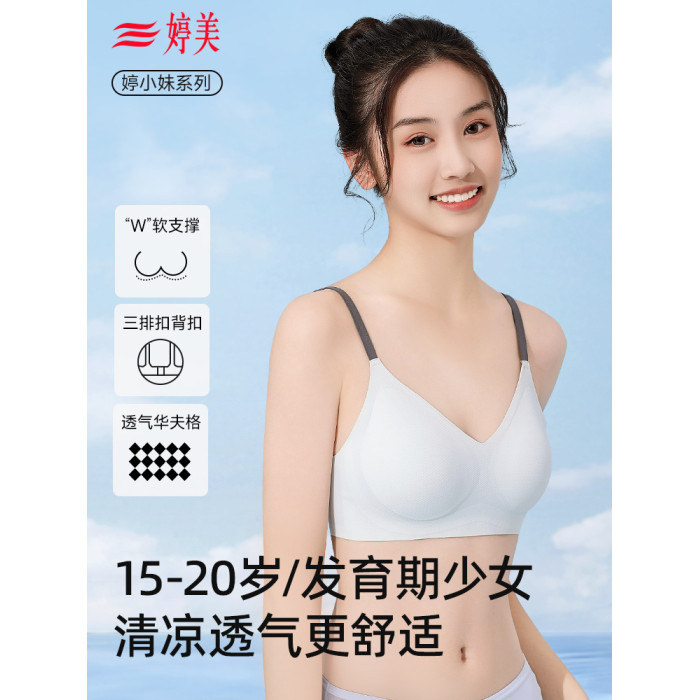 婷美小清新背釦式少女內衣高中大學生無痕文胸青春期三階段胸罩
