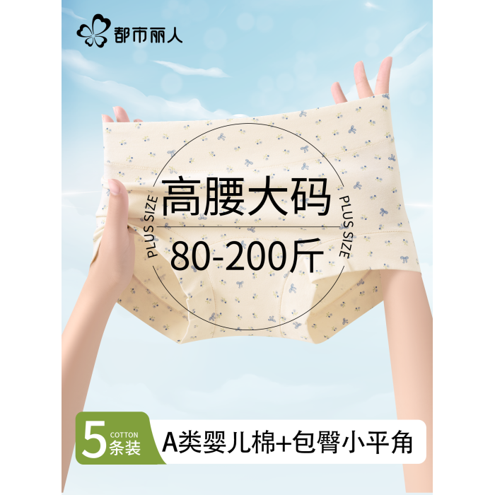 都市麗人大碼內褲女士純棉抗菌平角褲2025新款高腰胖mm女生四角褲
