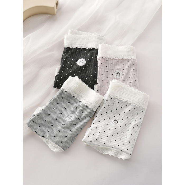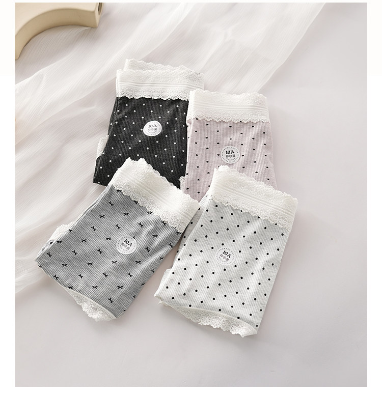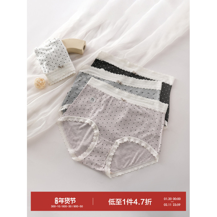 法式蕾絲大碼內褲胖mm女透氣抑菌蠶絲襠復古波點200斤包臀三角褲