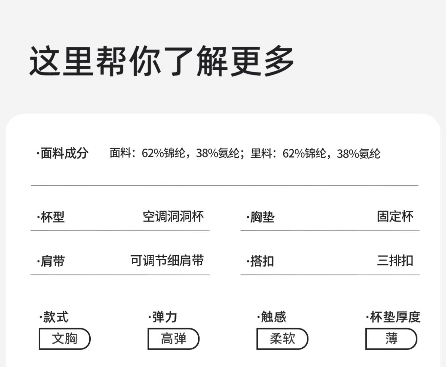 | 罩杯厚度 | 薄模杯 |