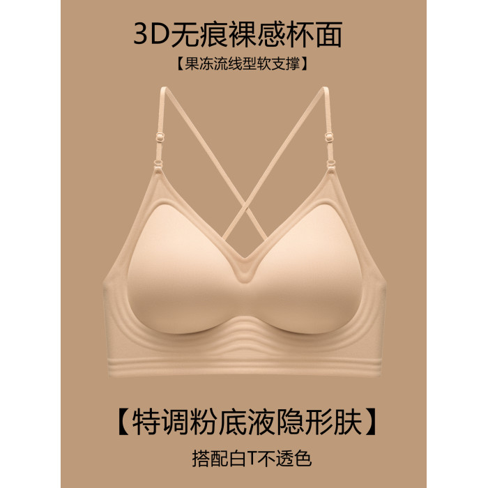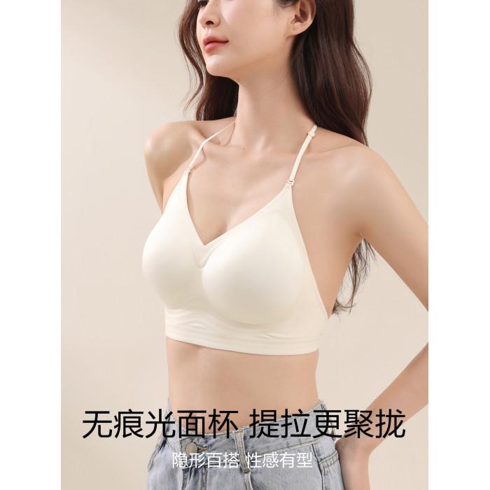 掛脖美背內衣女小胸聚攏細肩帶無痕粉底液隱形u型露背吊帶文胸罩