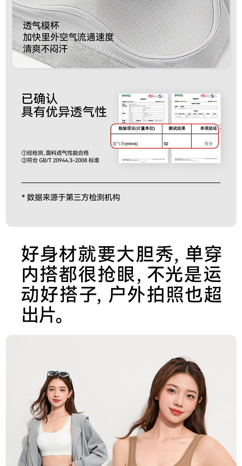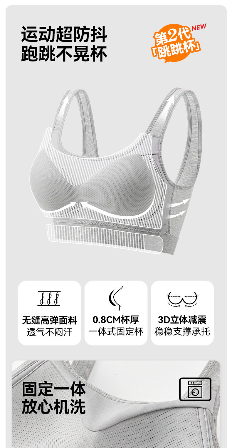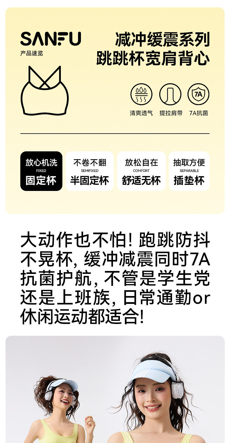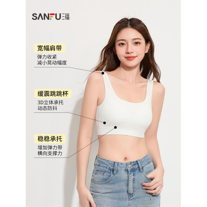 三福跳跳杯二代運動風固定杯文胸女寬肩背心裹胸修身內衣女504806