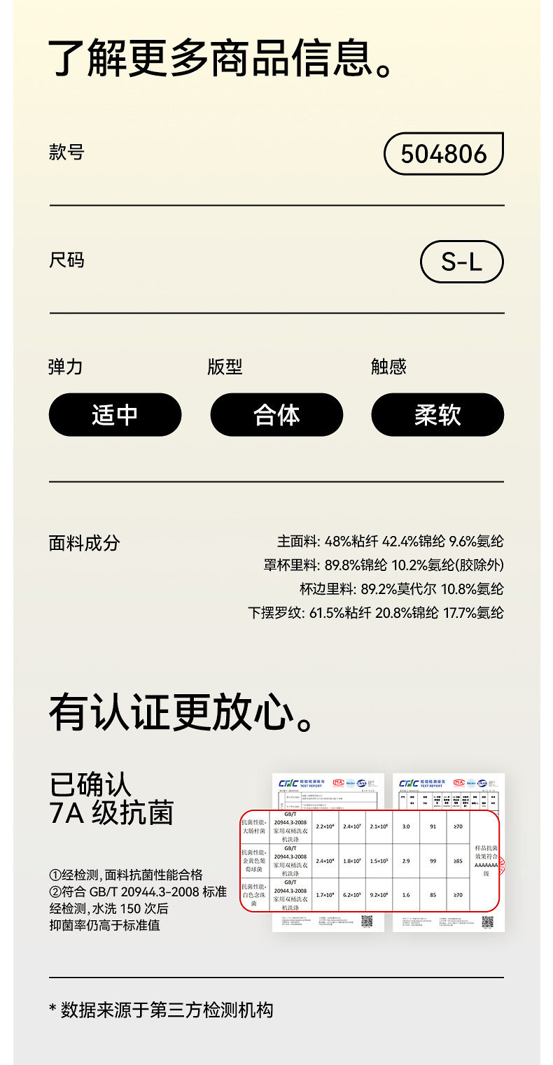 | 罩杯外層材質 | 粘纖 |