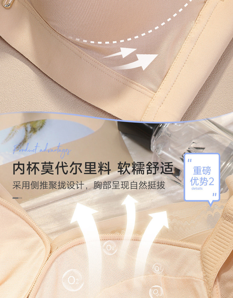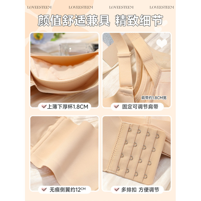 愛黛光面無痕無鋼圈內衣女小胸聚攏收副乳防下垂顯大文胸罩70402A