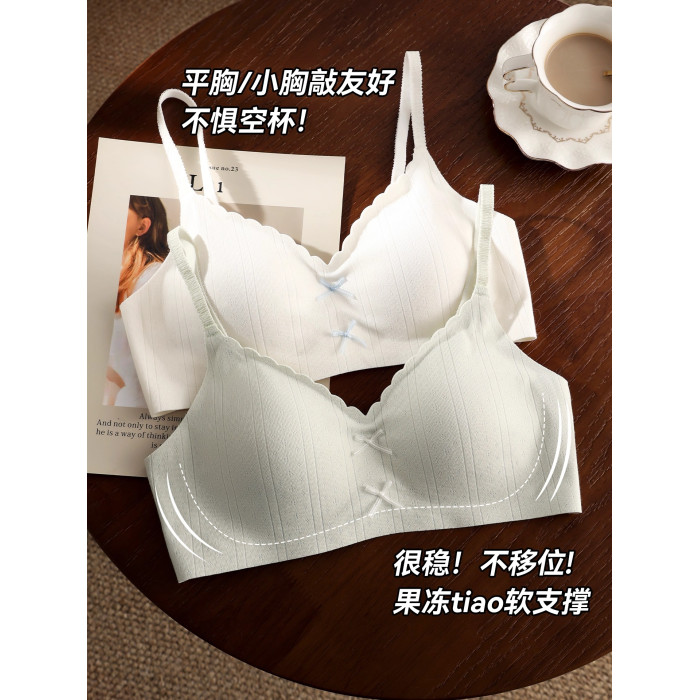 日系甜美裸感無痕舒適內衣女小胸聚攏顯大無鋼圈薄款夏少女文胸罩