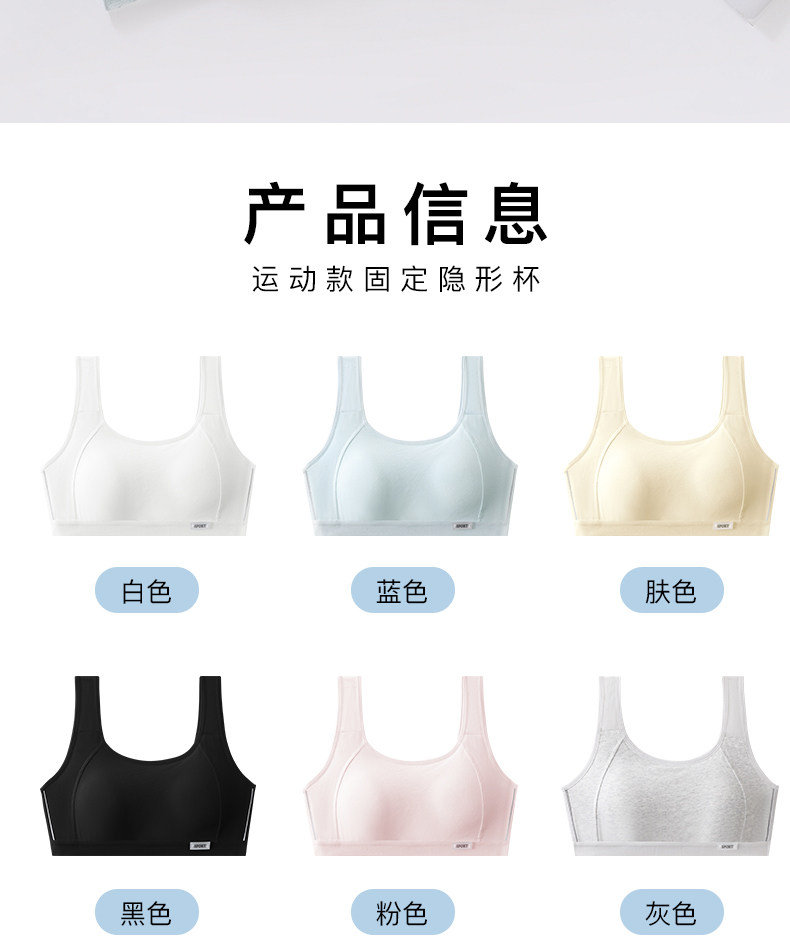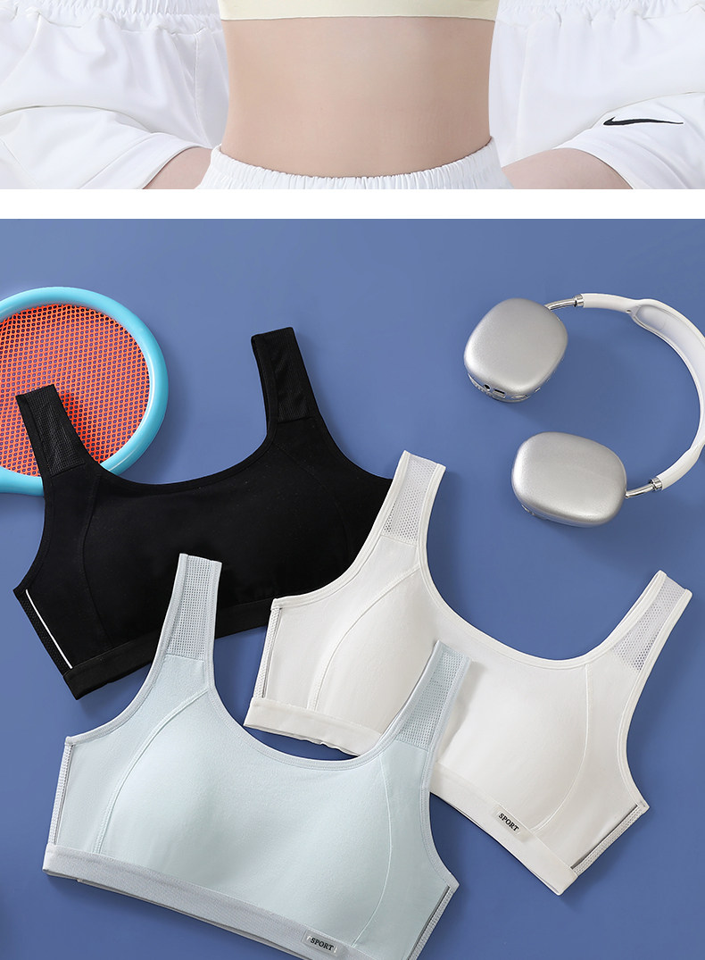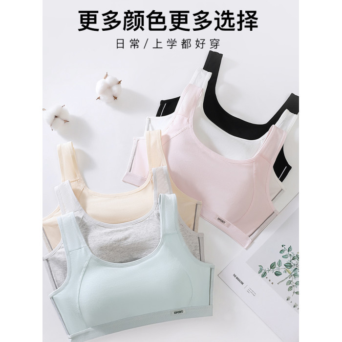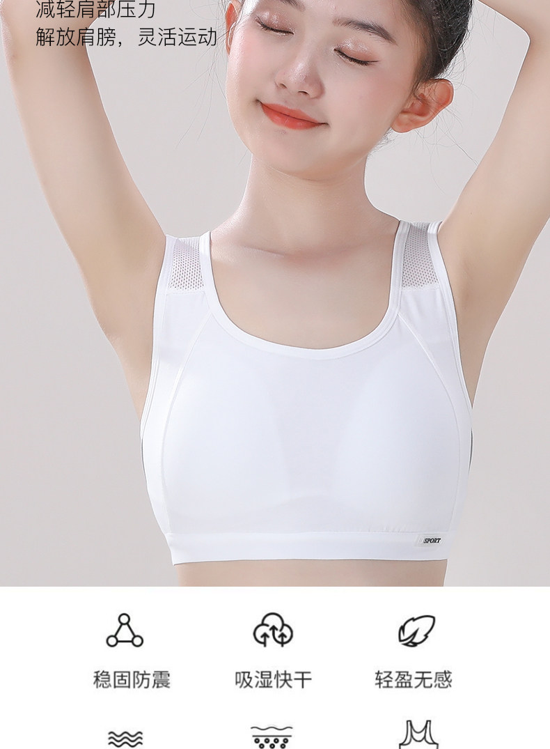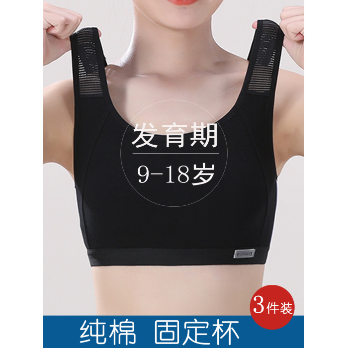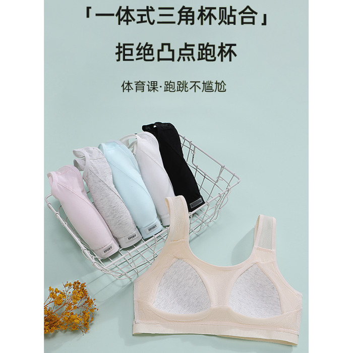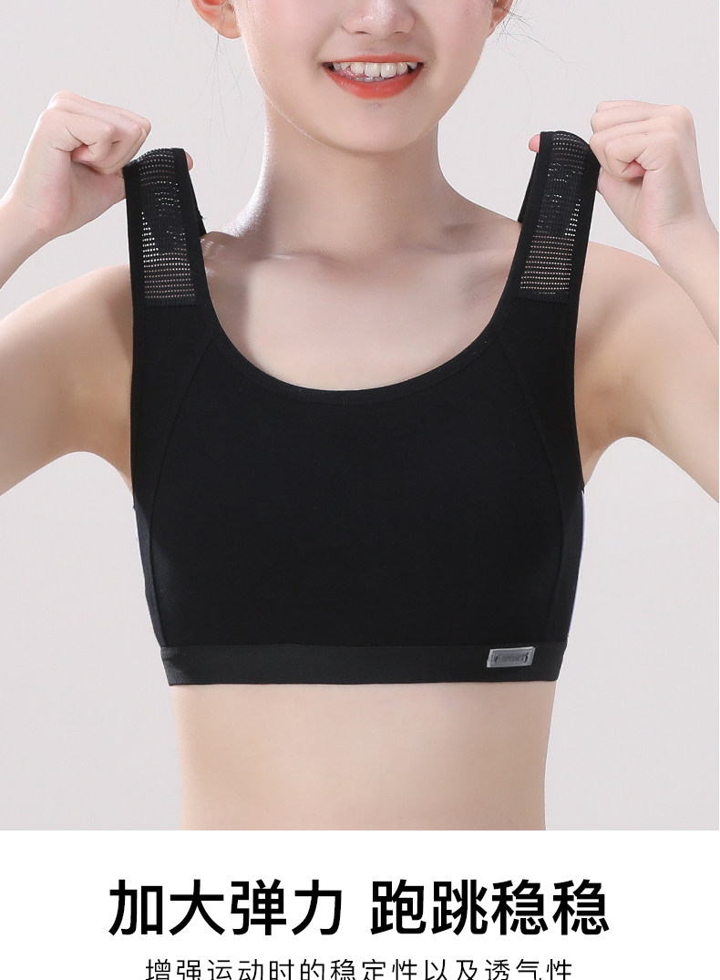 女童內衣發育期小學生純棉黑色運動防震小背心初高中少女文胸一體