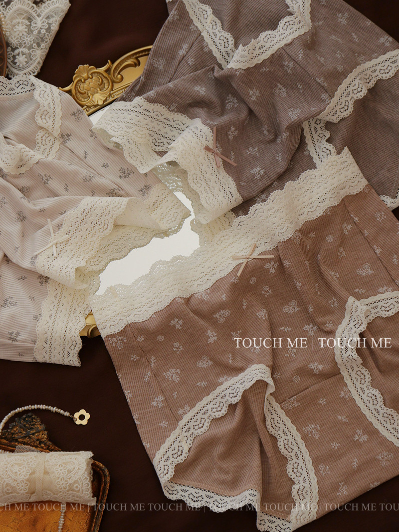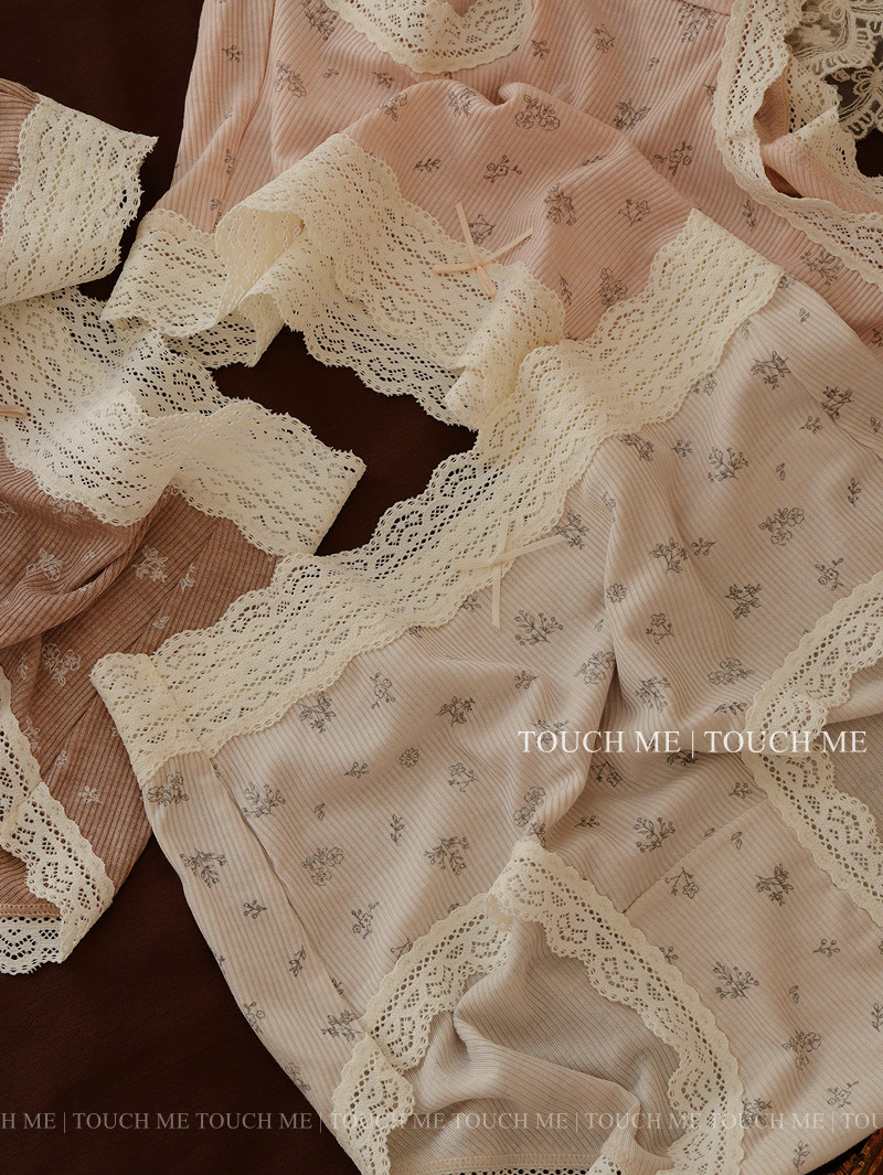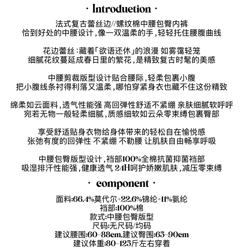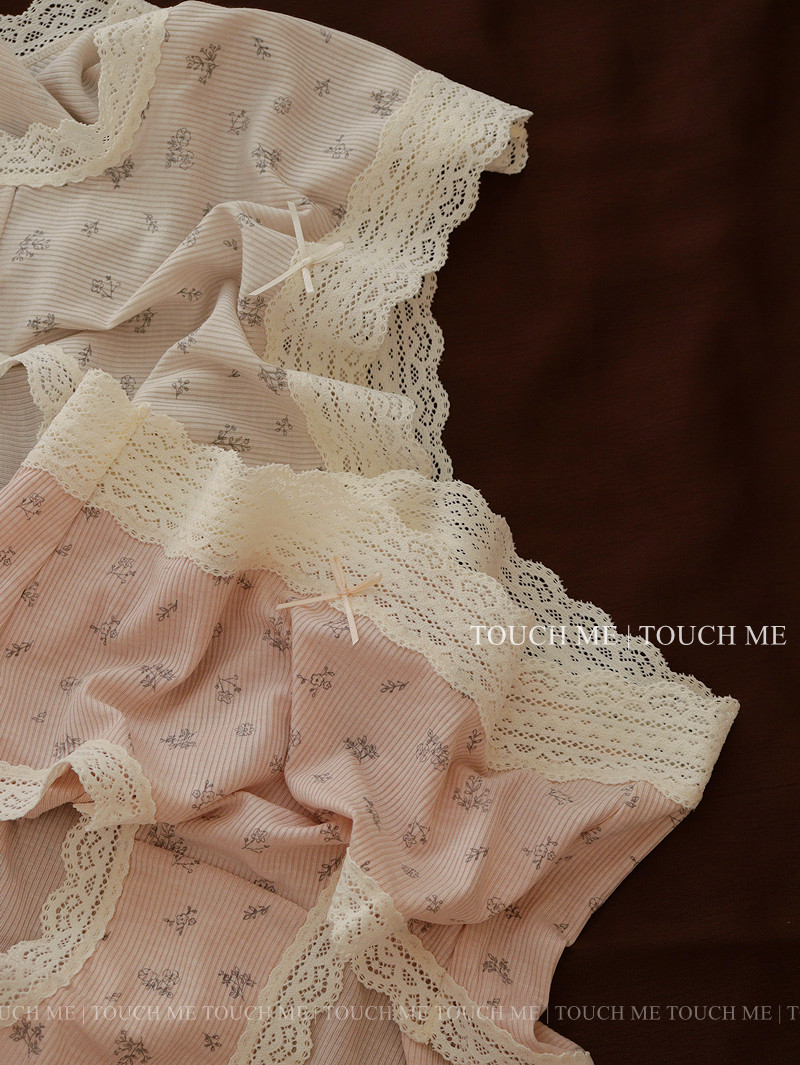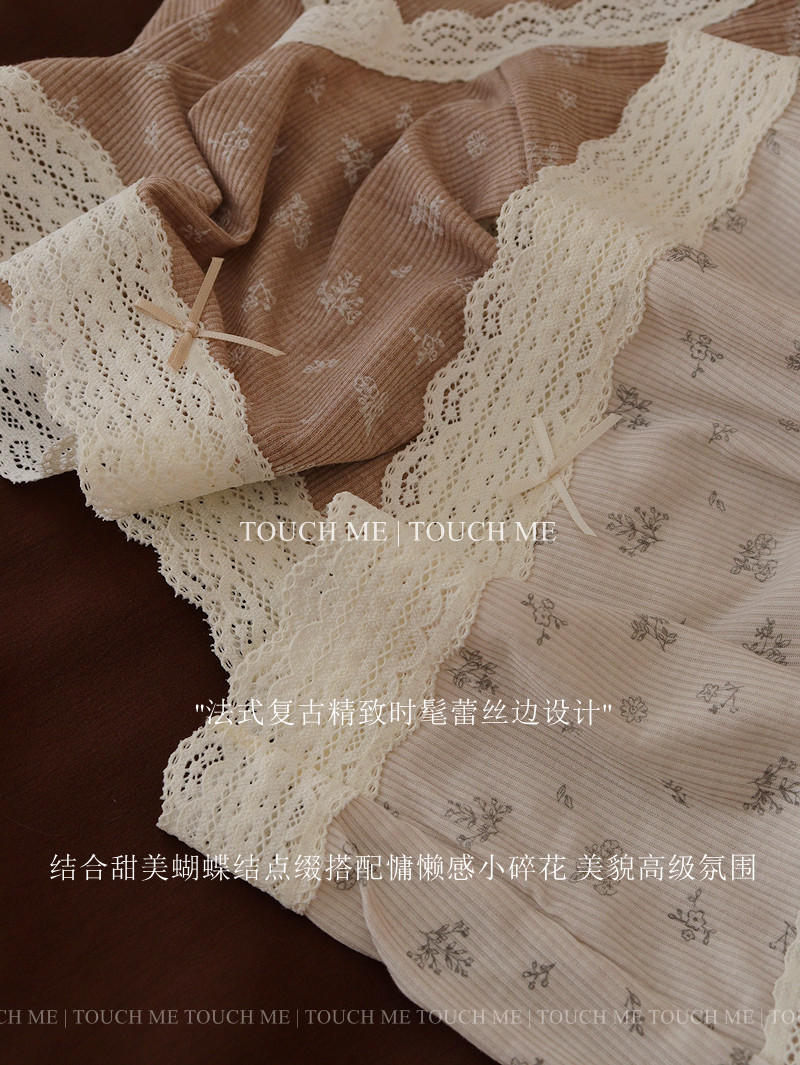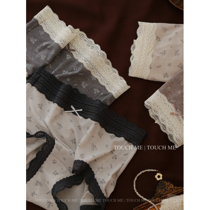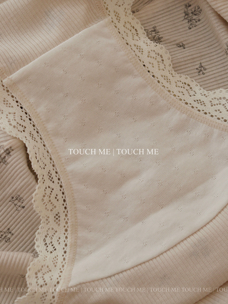 touchme法式復古螺紋碎花蕾絲邊裸感內褲女透氣抑菌純棉襠中腰3條