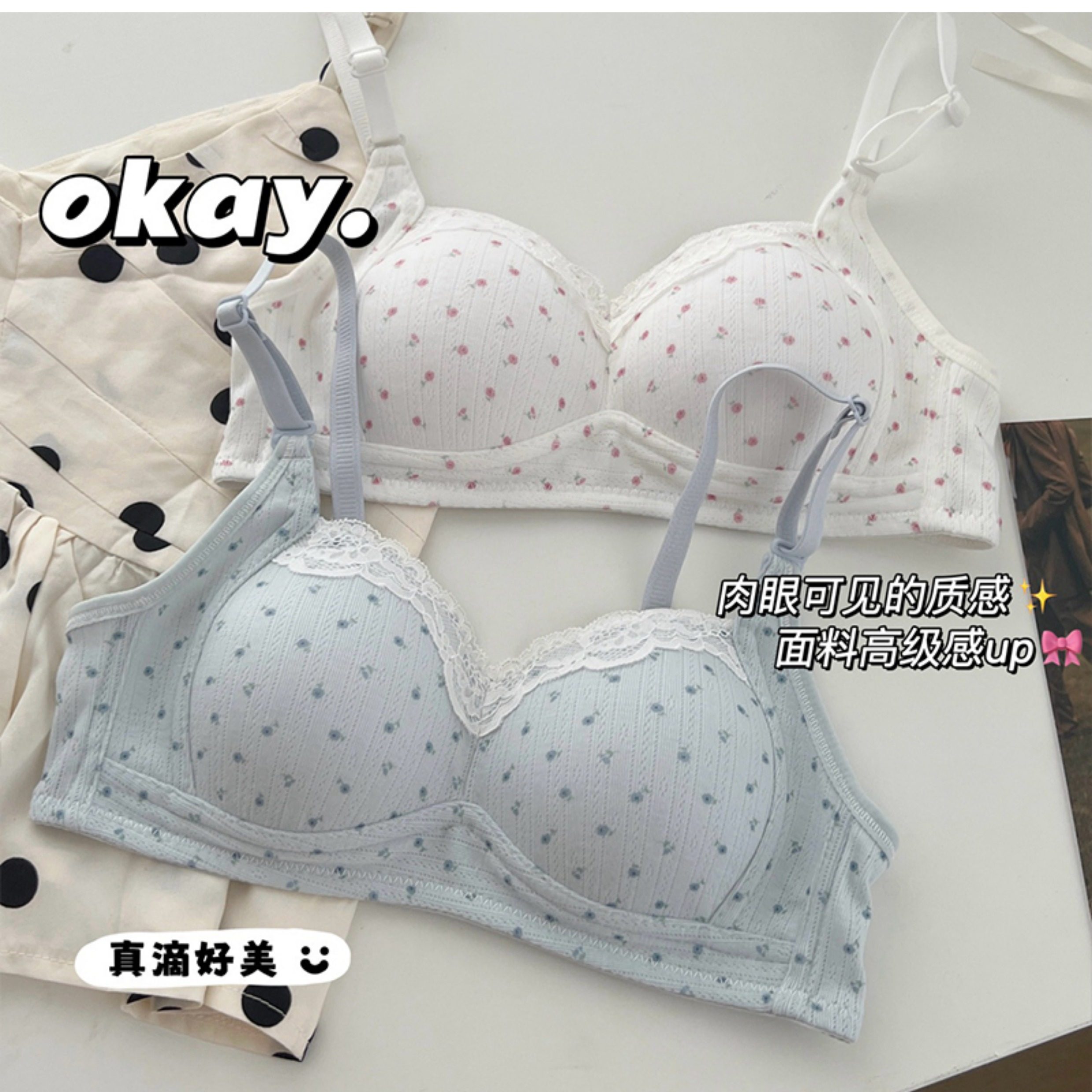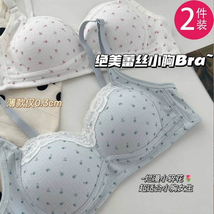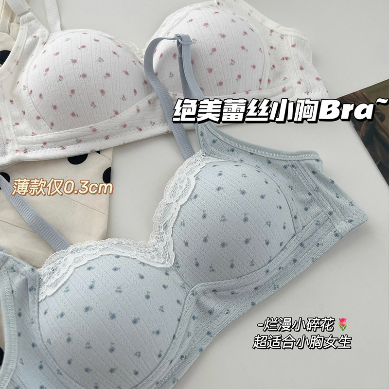 甜美碎花少女內衣女小胸聚攏秋冬收副乳防走光防震學生高中生文胸