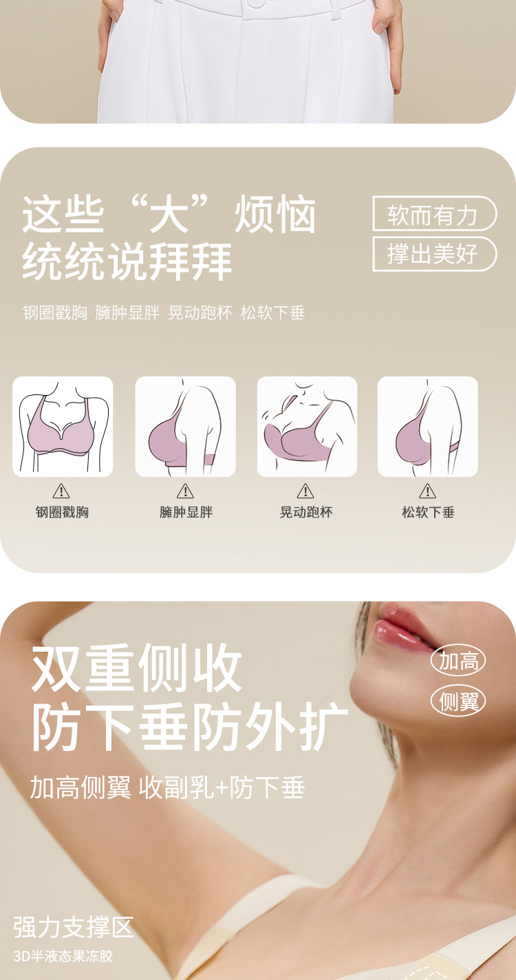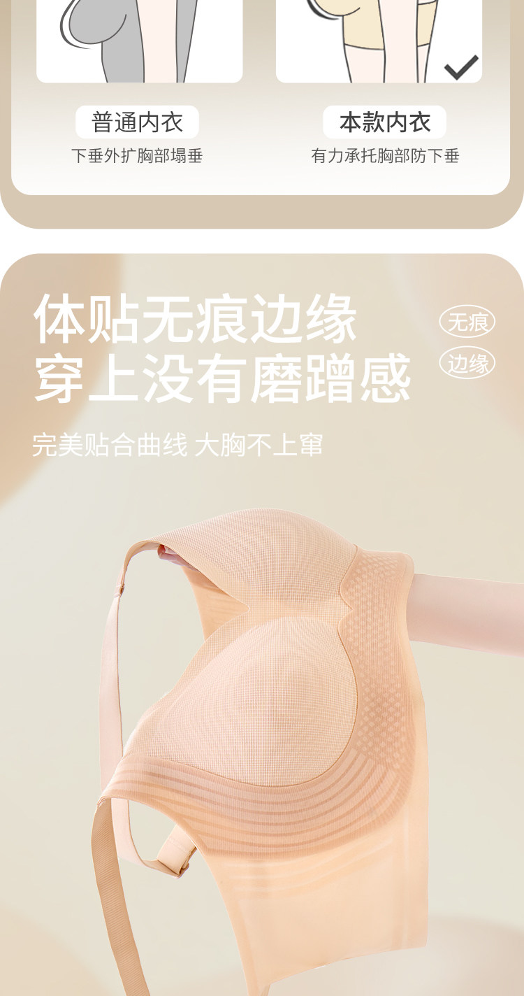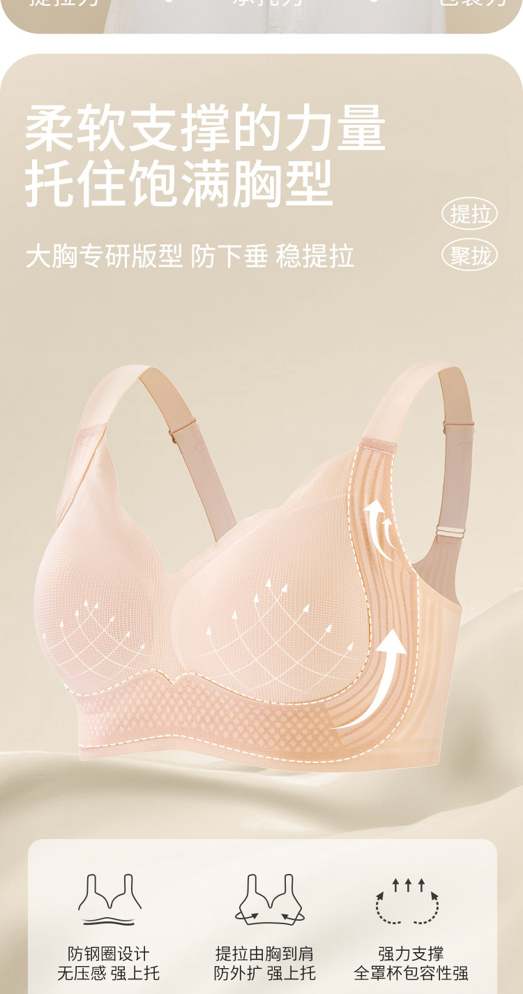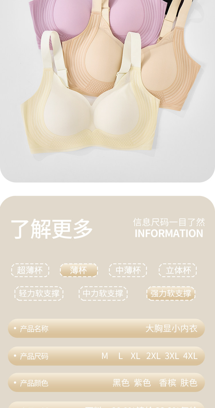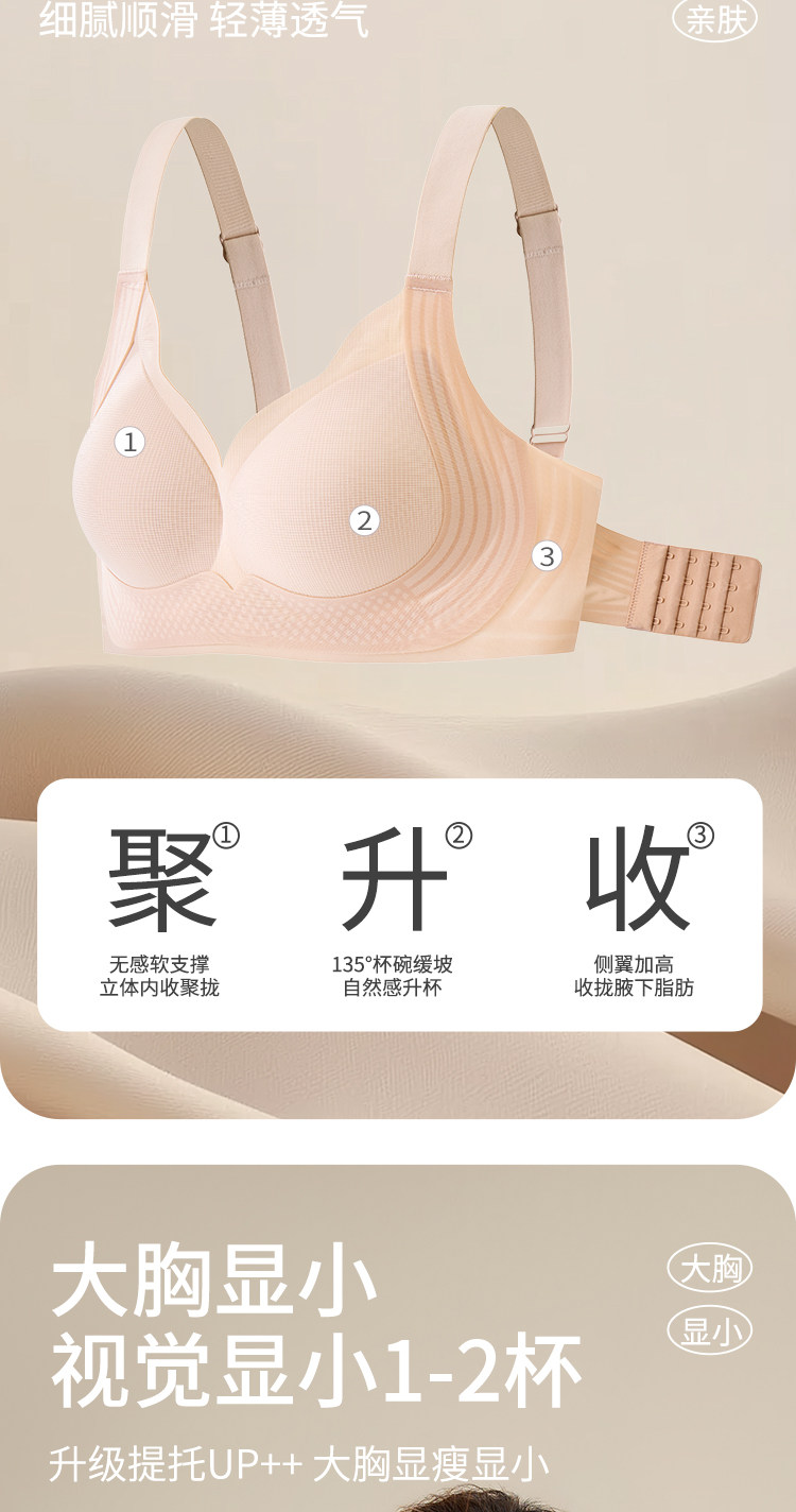 唯一俏薄款透氣聚攏收副乳文胸無鋼圈女生胸大顯小大碼內衣女胸罩