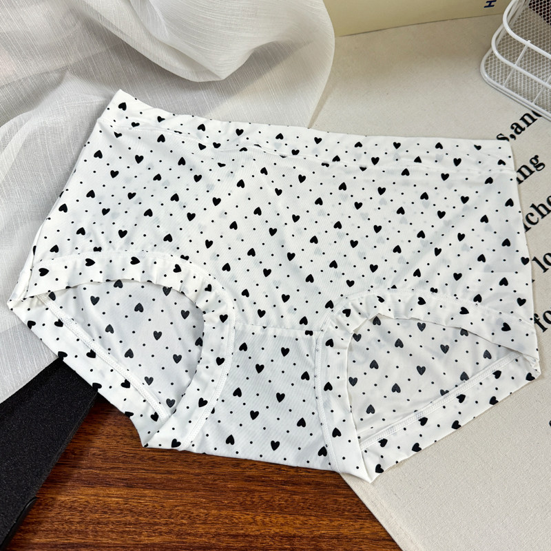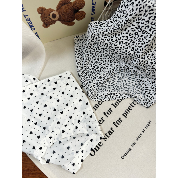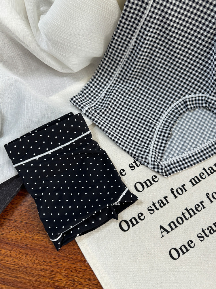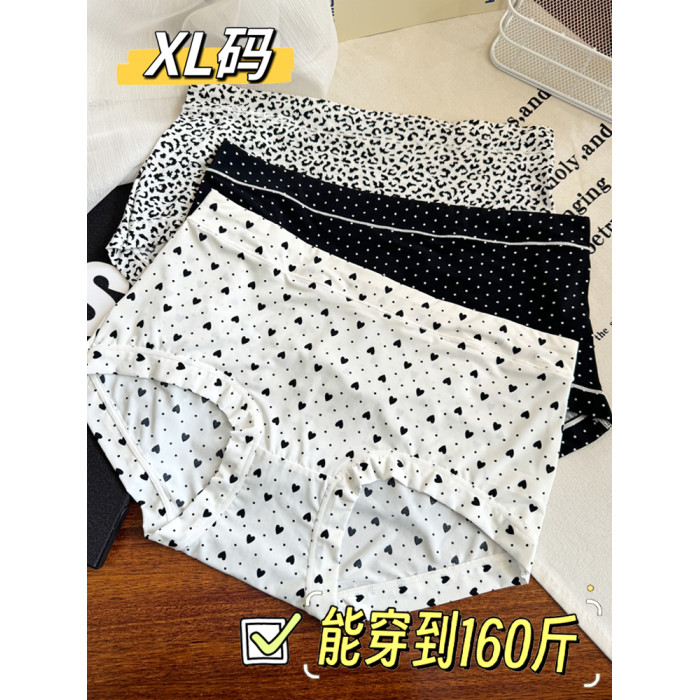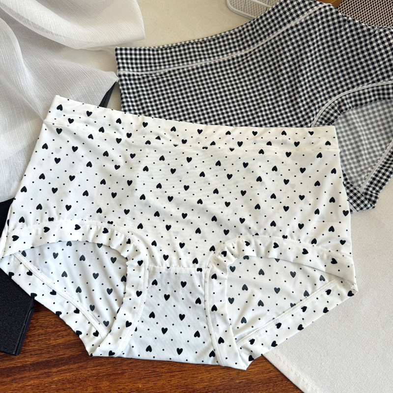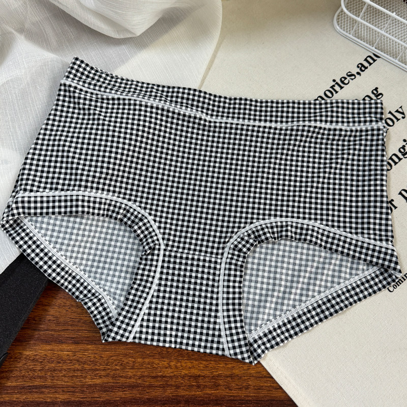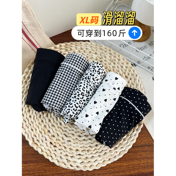冰絲內褲女大碼胖mm中腰牛奶絲滑霤霤黑色格子豹紋學生透氣三角褲